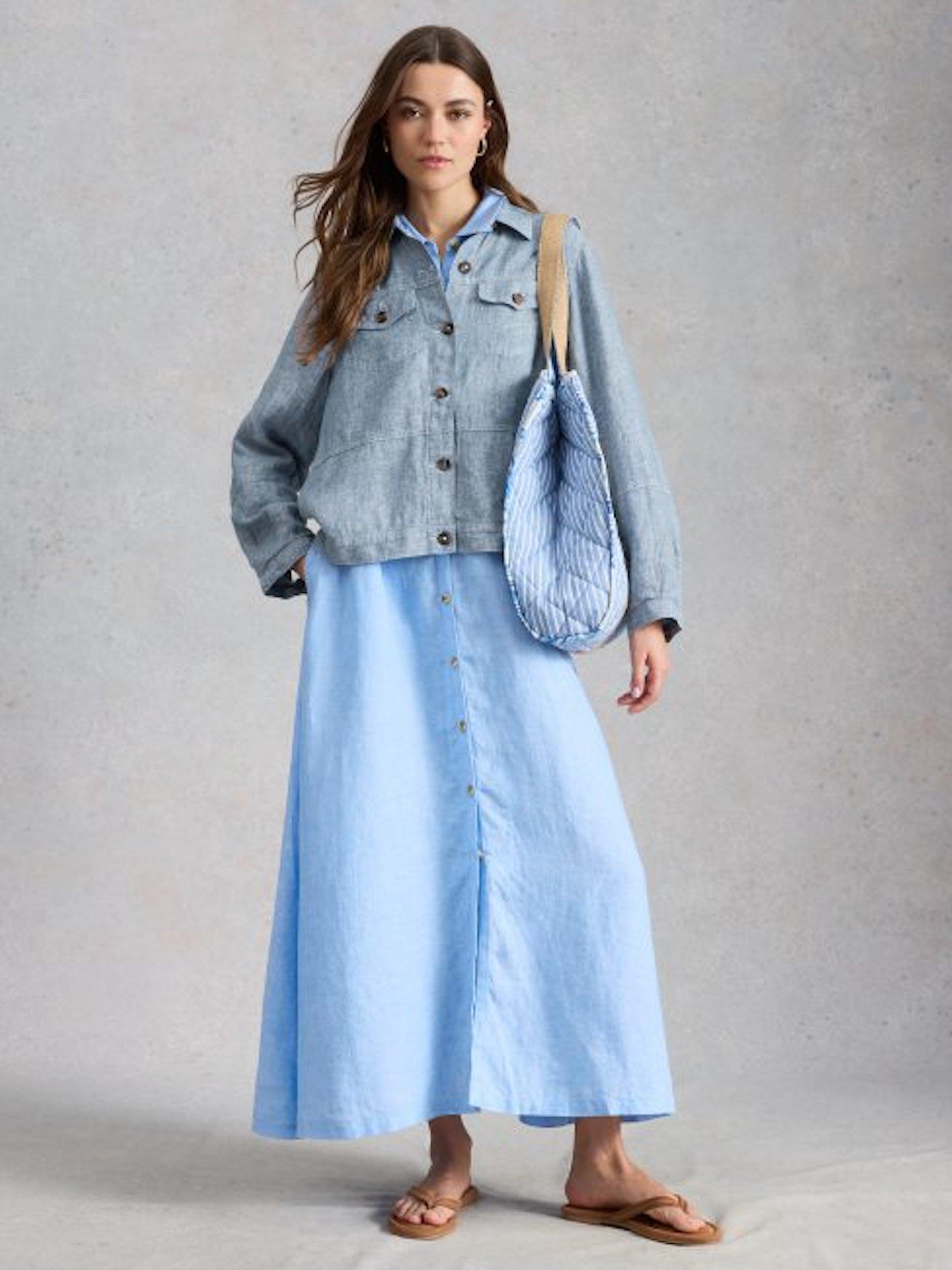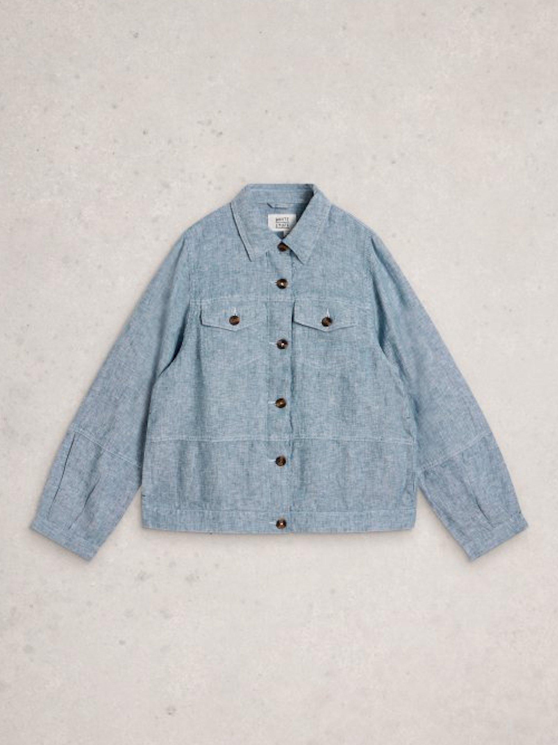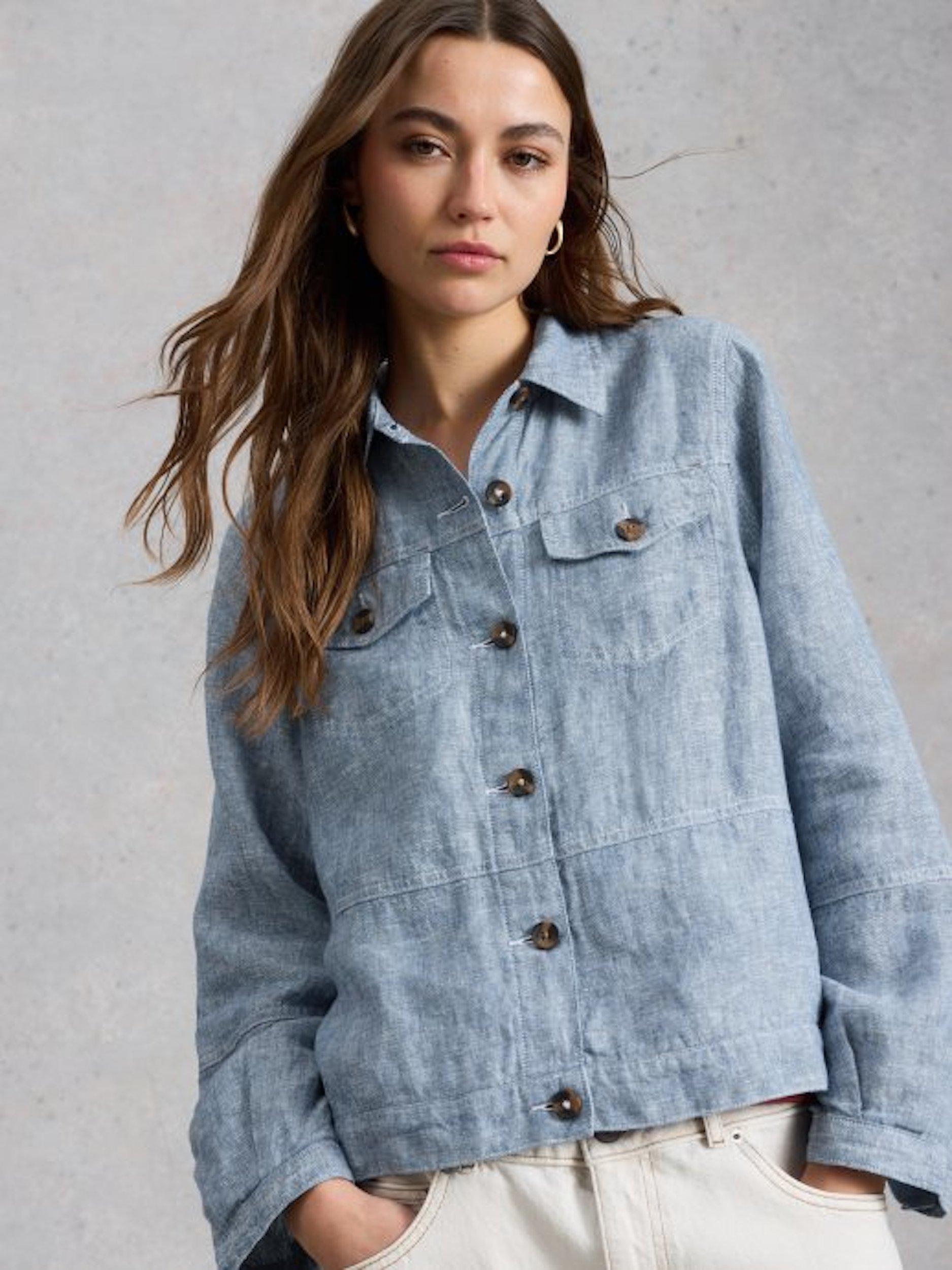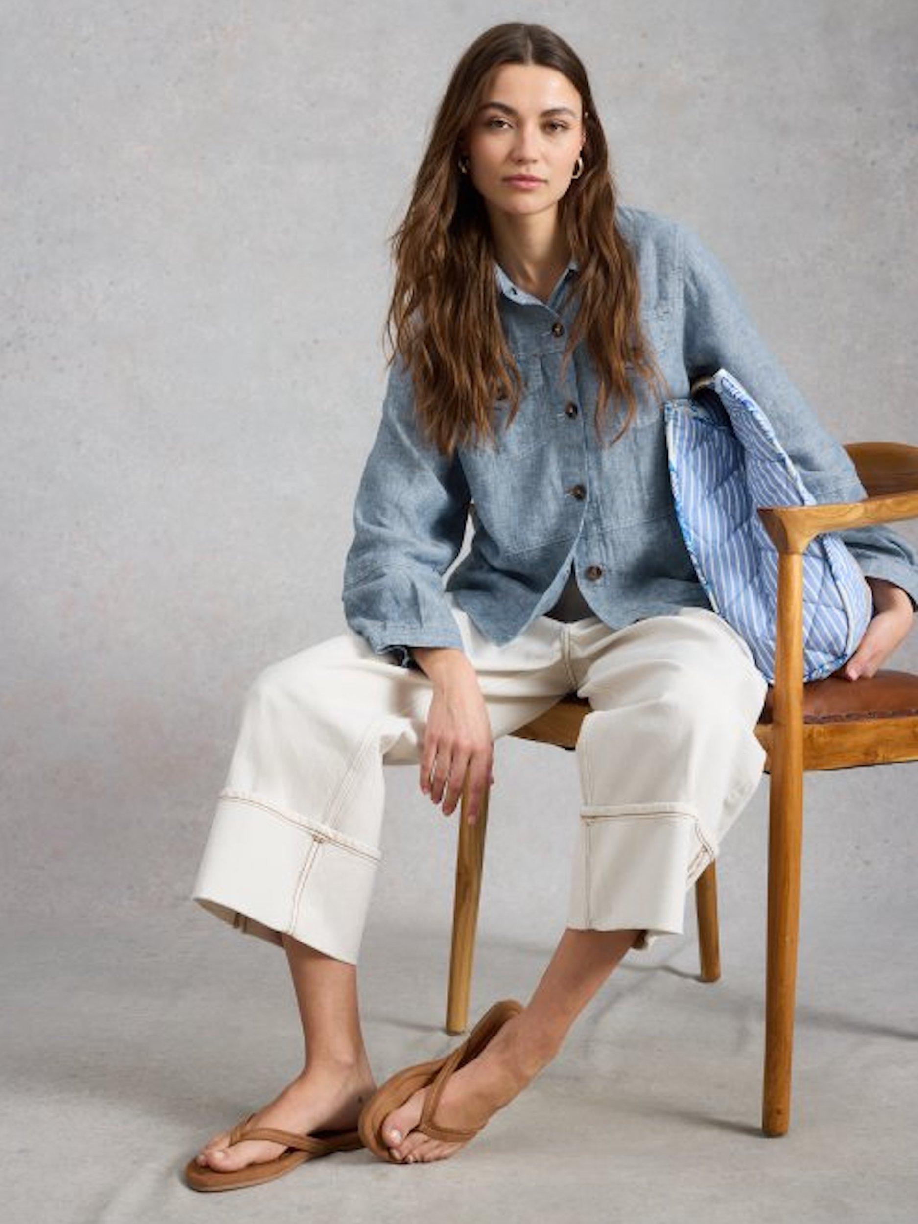 Framed with a collar neckline, it feels light and breathable in pure linen.