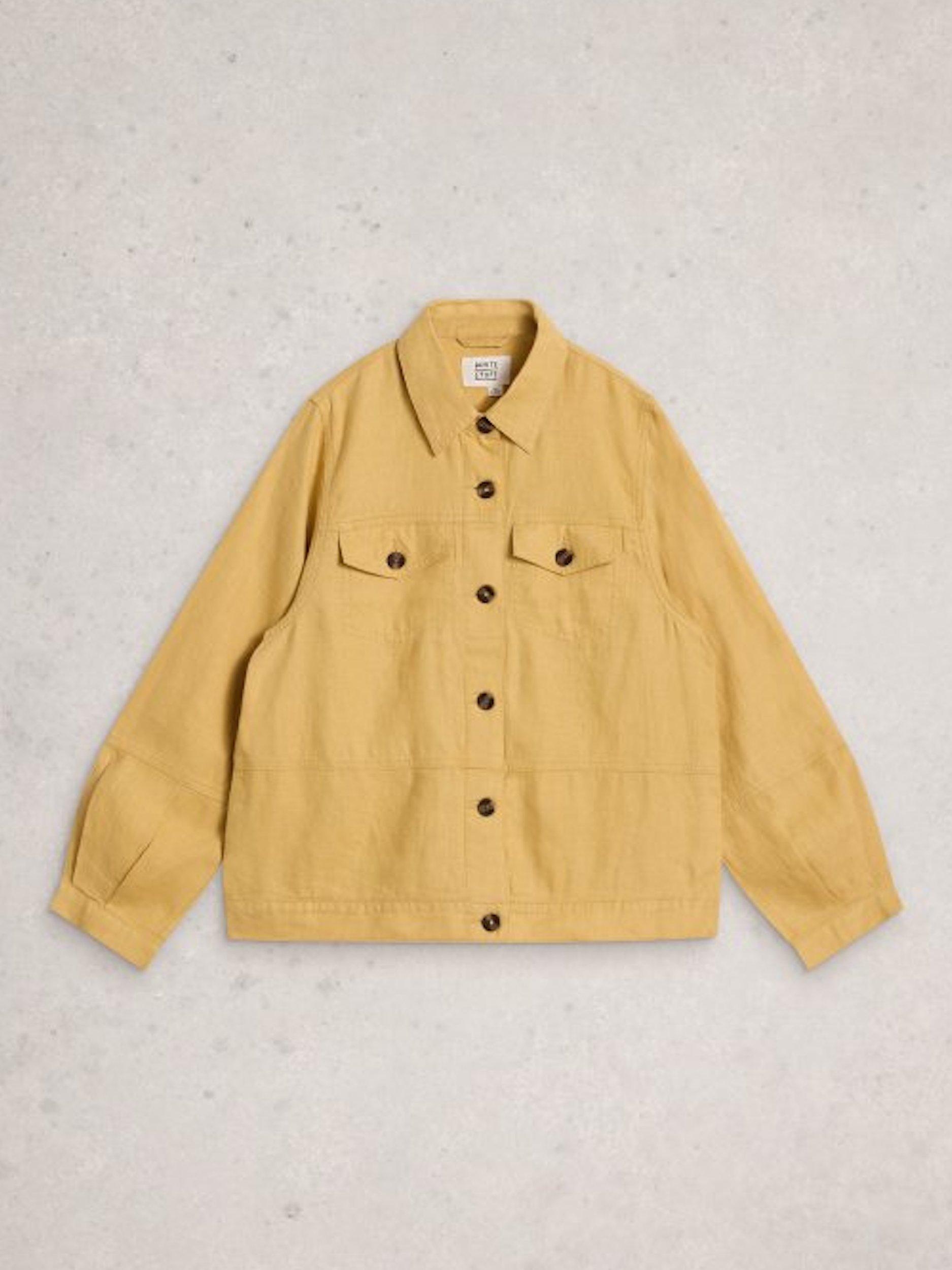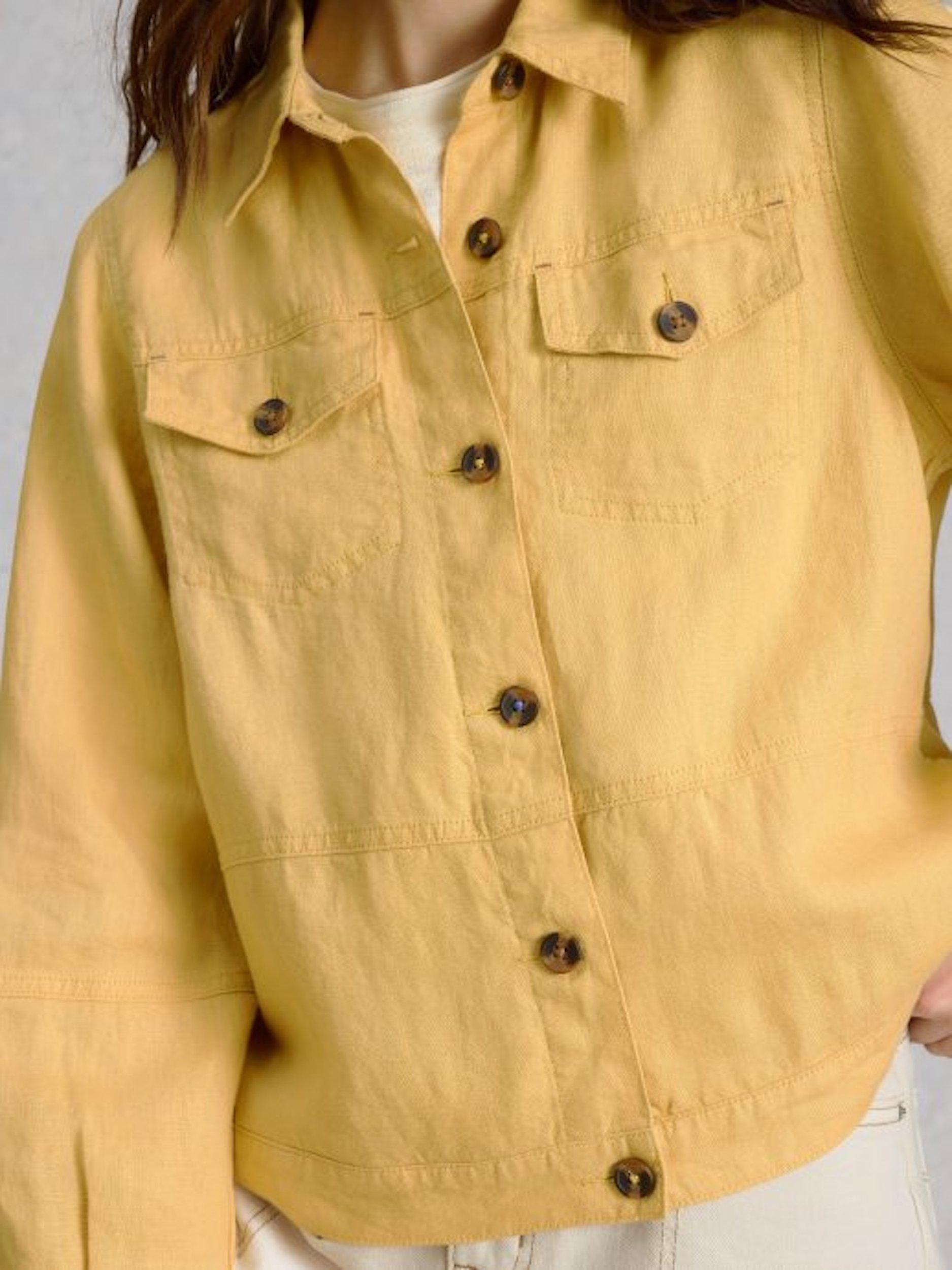 Framed with a collar neckline, it feels light and breathable in pure linen.