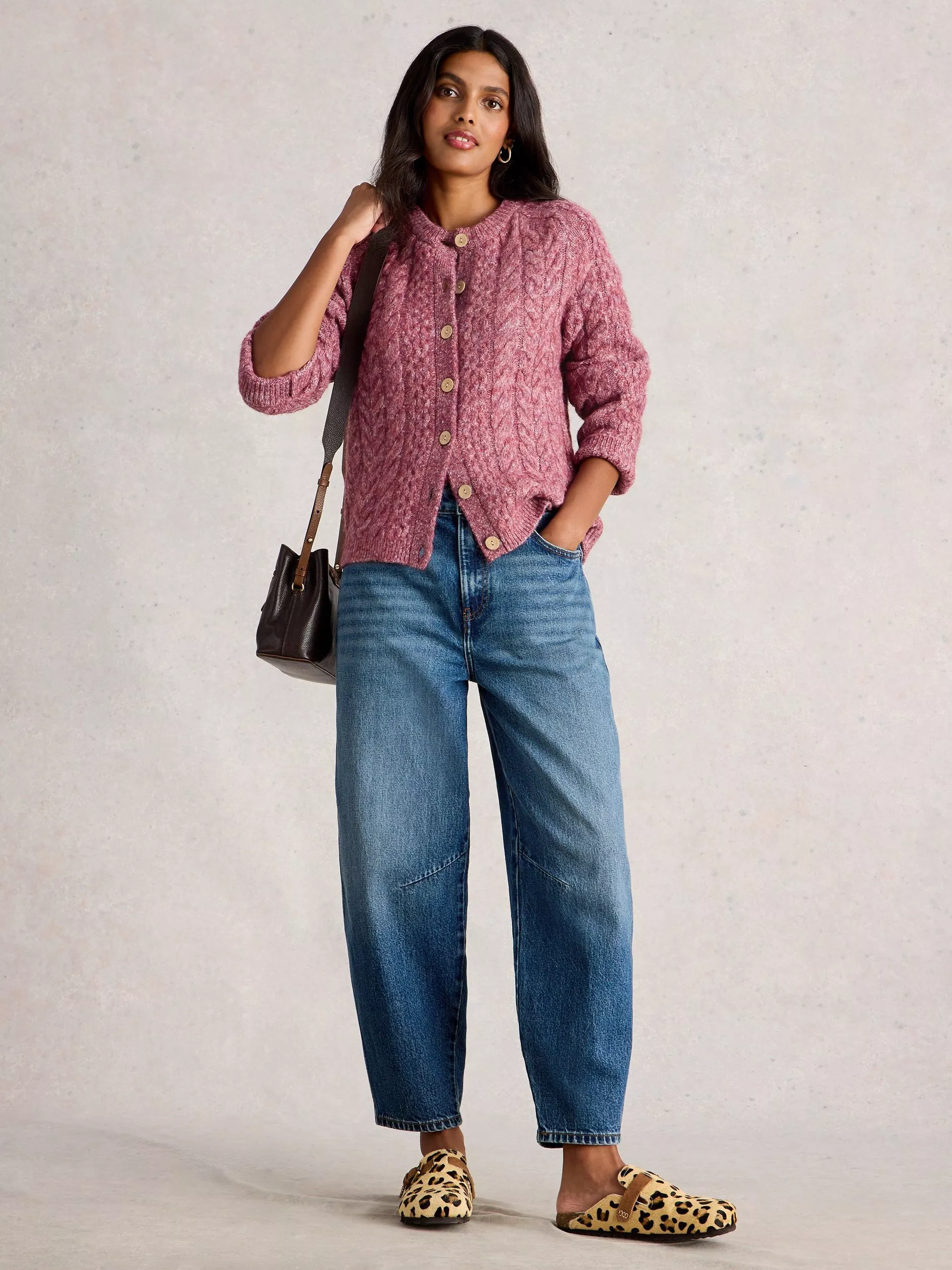 This chunky cable knit cardigan offers comfort without fuss, perfect for layering and everyday ease. Its clever crew neck design and long sleeves make it a useful choice when you want warmth that works with your plans.