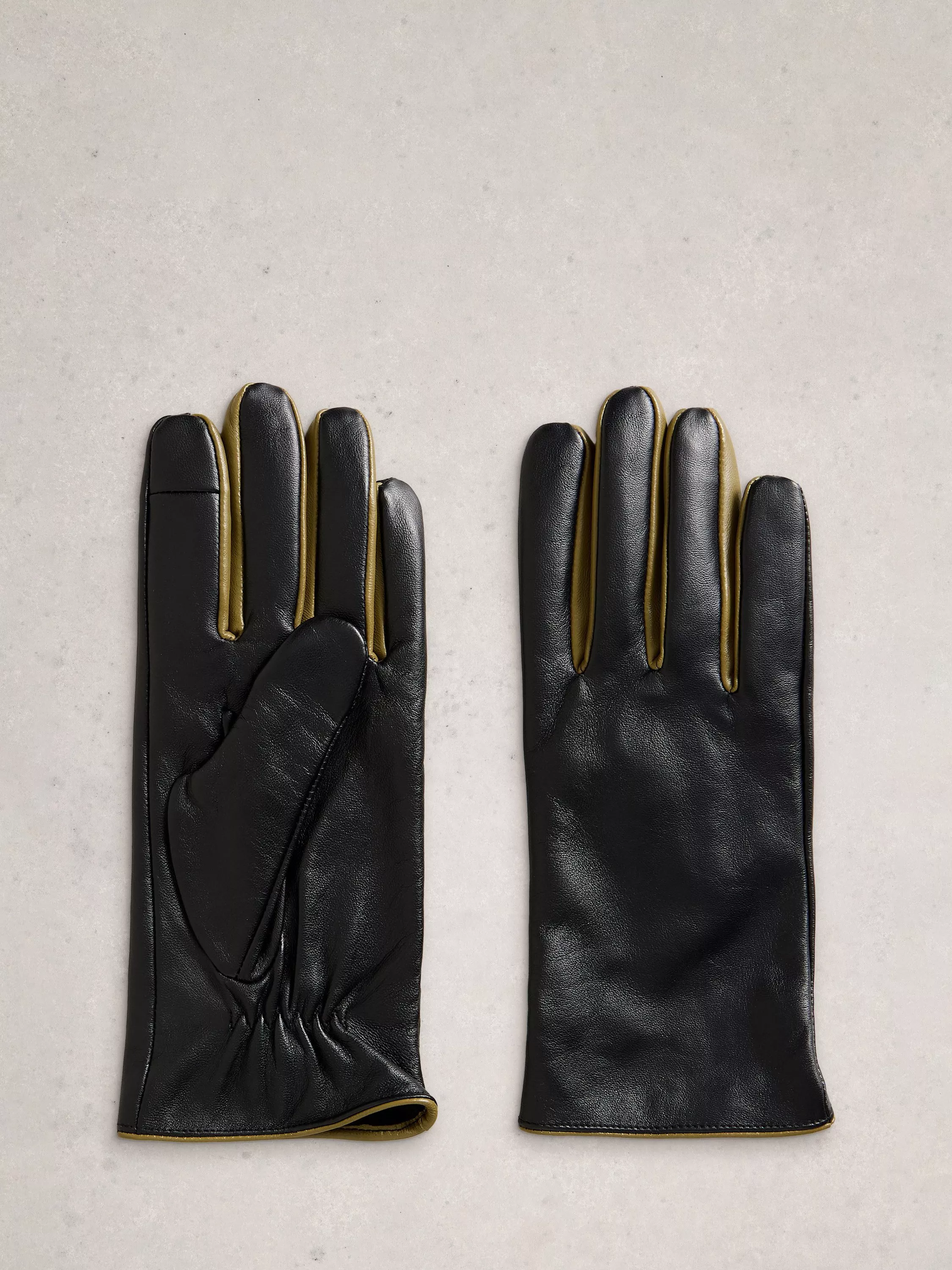 A pair of White Stuff leather gloves, keeping hands warm and comfortable and cleverly designed for an easy fit.