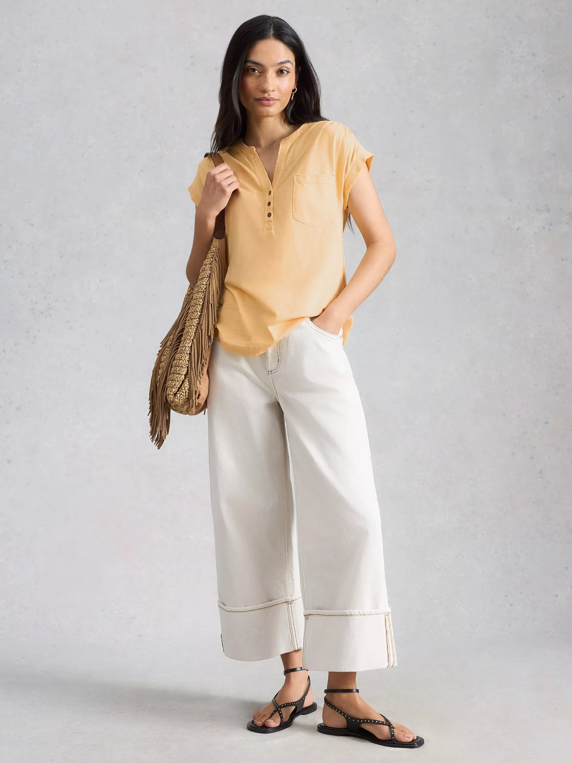 White StuffCecily Cotton Short Sleeve Shirt, Yellow