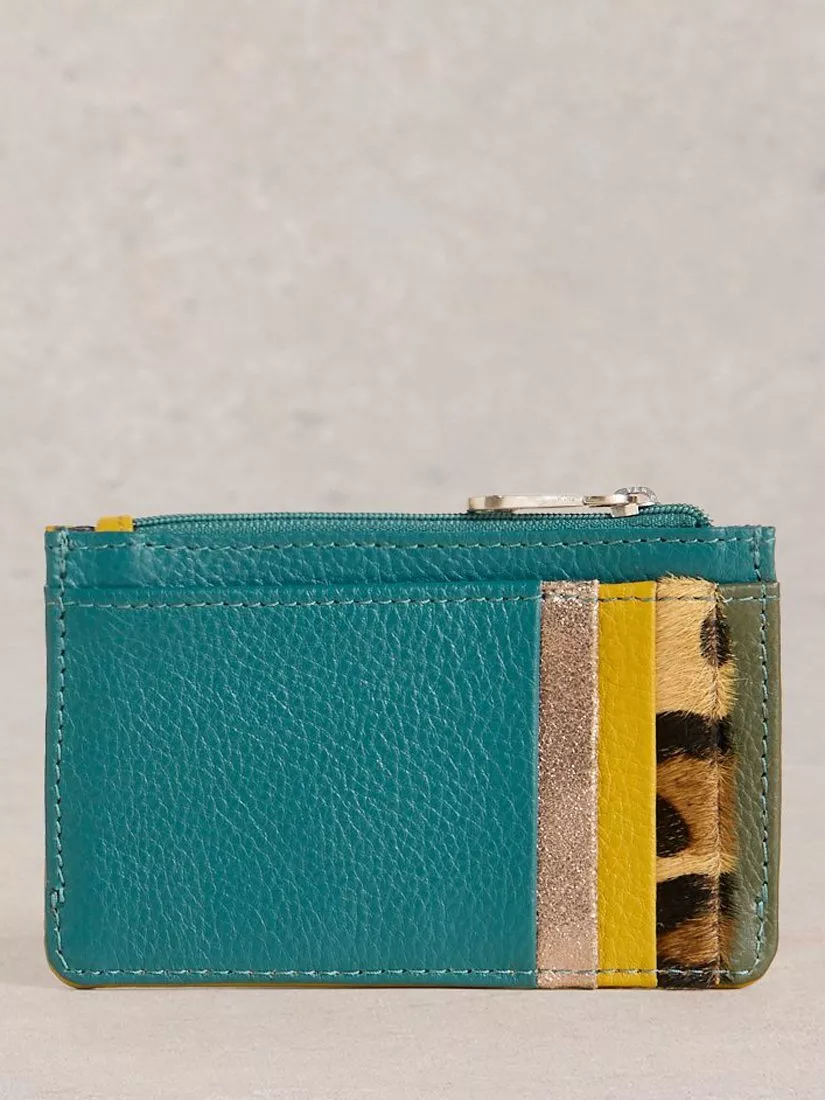 A purse with a main zip compartment and slip-in card holding compartments.