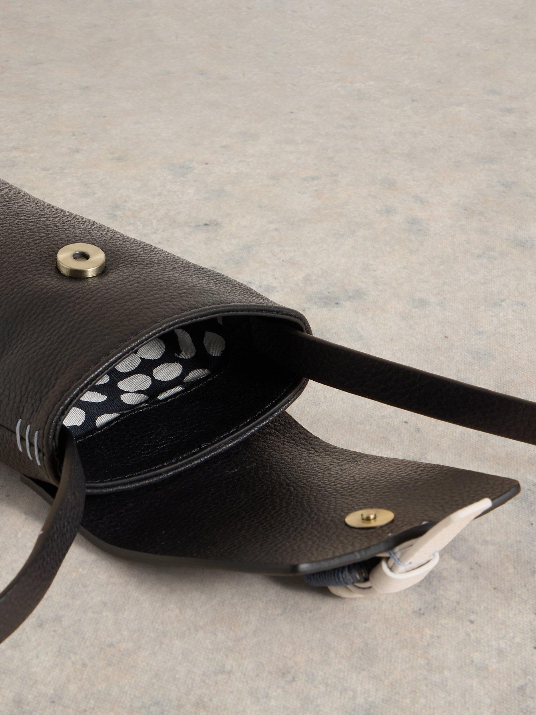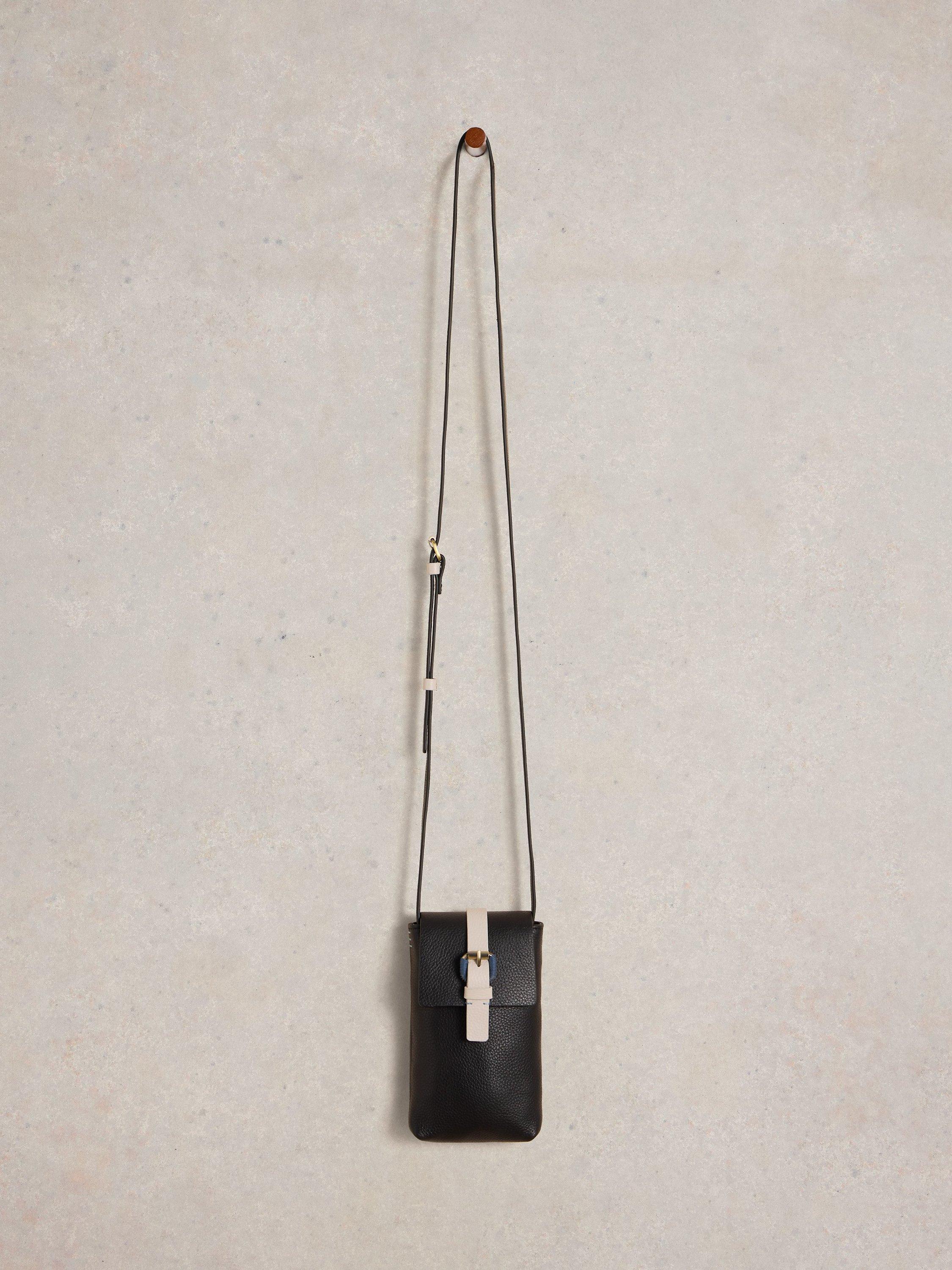 A mini leather crossbody bag that is the perfect size for phones.