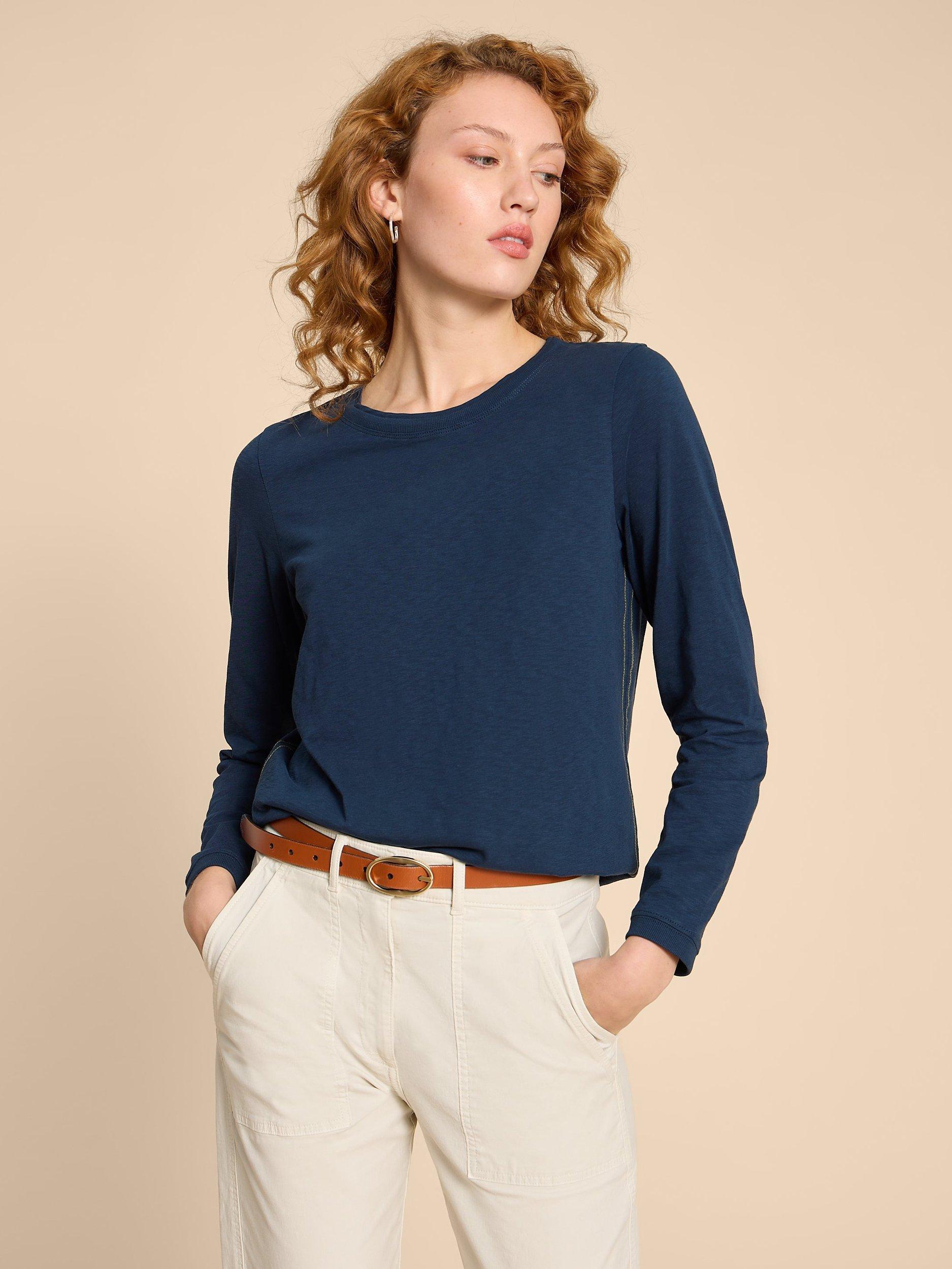 Simply cut with a round neck and long sleeves, it offers a soft feel thanks to its cotton blend and is an everyday wardrobe essential.