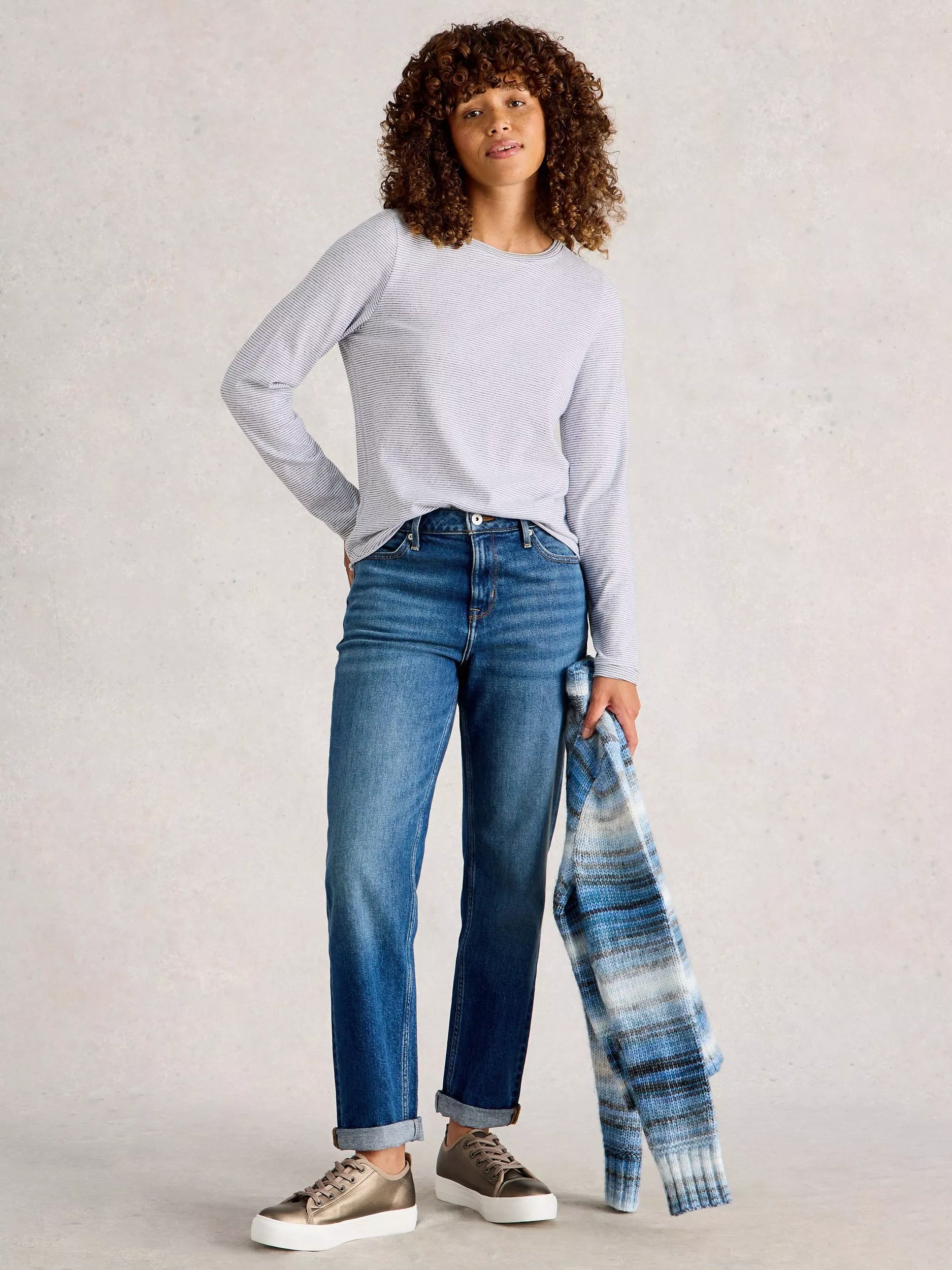 An everyday T-shirt by White Stuff, offered in a cotton blend for a soft feel. With a round neck and long sleeves, its twinkly embellished detail gives an eye-catching look. Everyday ease with a stylish twist.