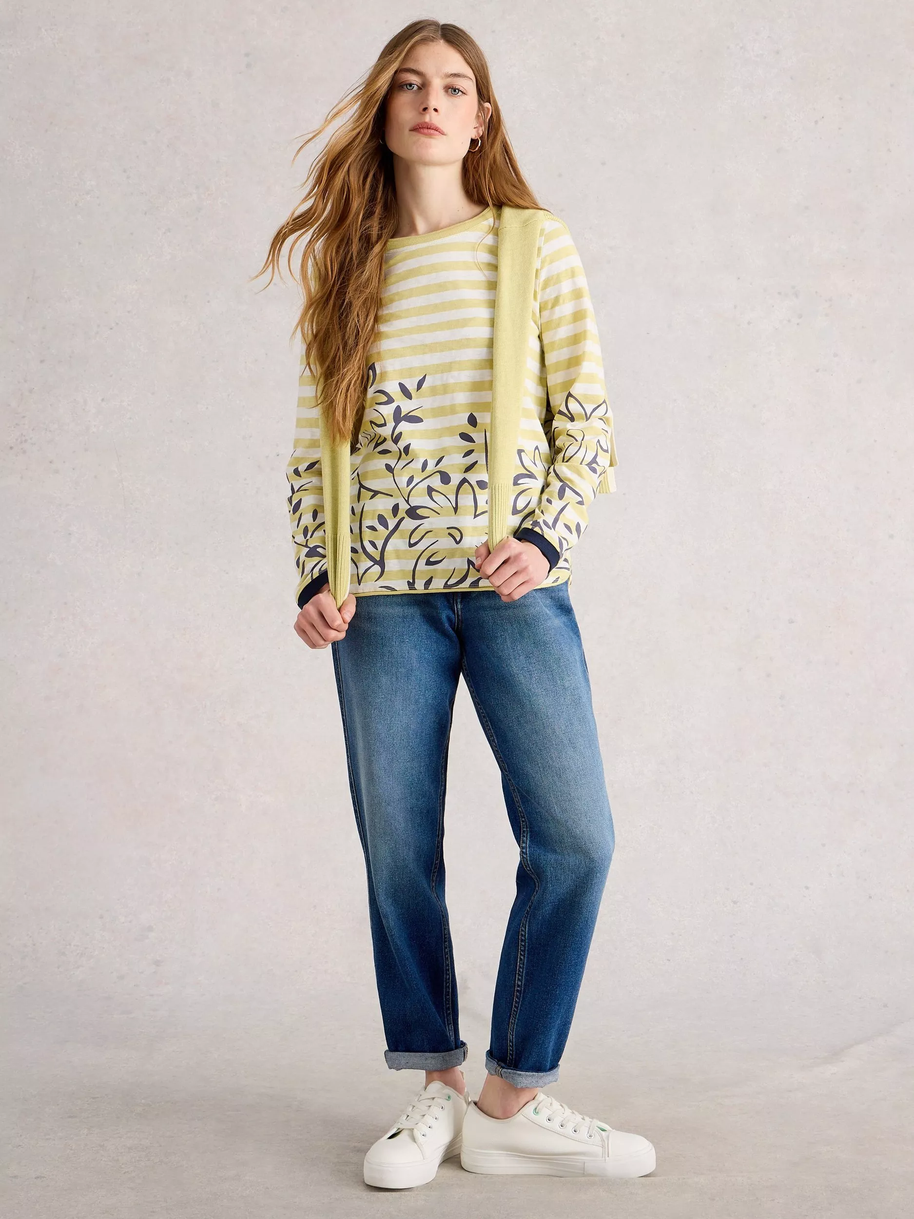White StuffClara Stripe Floral Top, Yellow/Multi