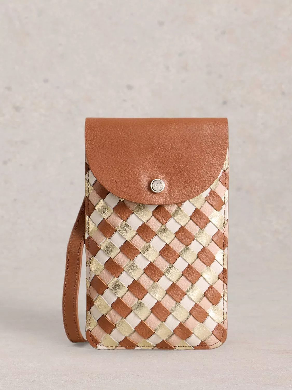 Crafted from smooth leather with a soft cotton lining, this phone bag from White Stuff features a weaved design, flap top with magnet closure and adjustable strap. Finished with card slots to the reverse.