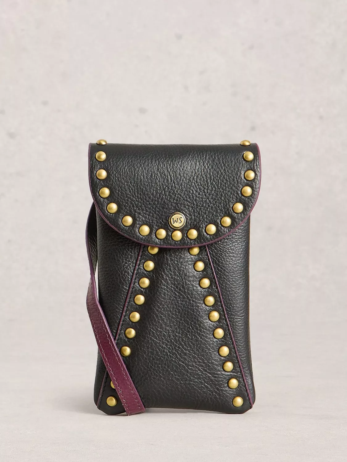 White StuffCoco Studded Leather Phone Bag, Pure Black