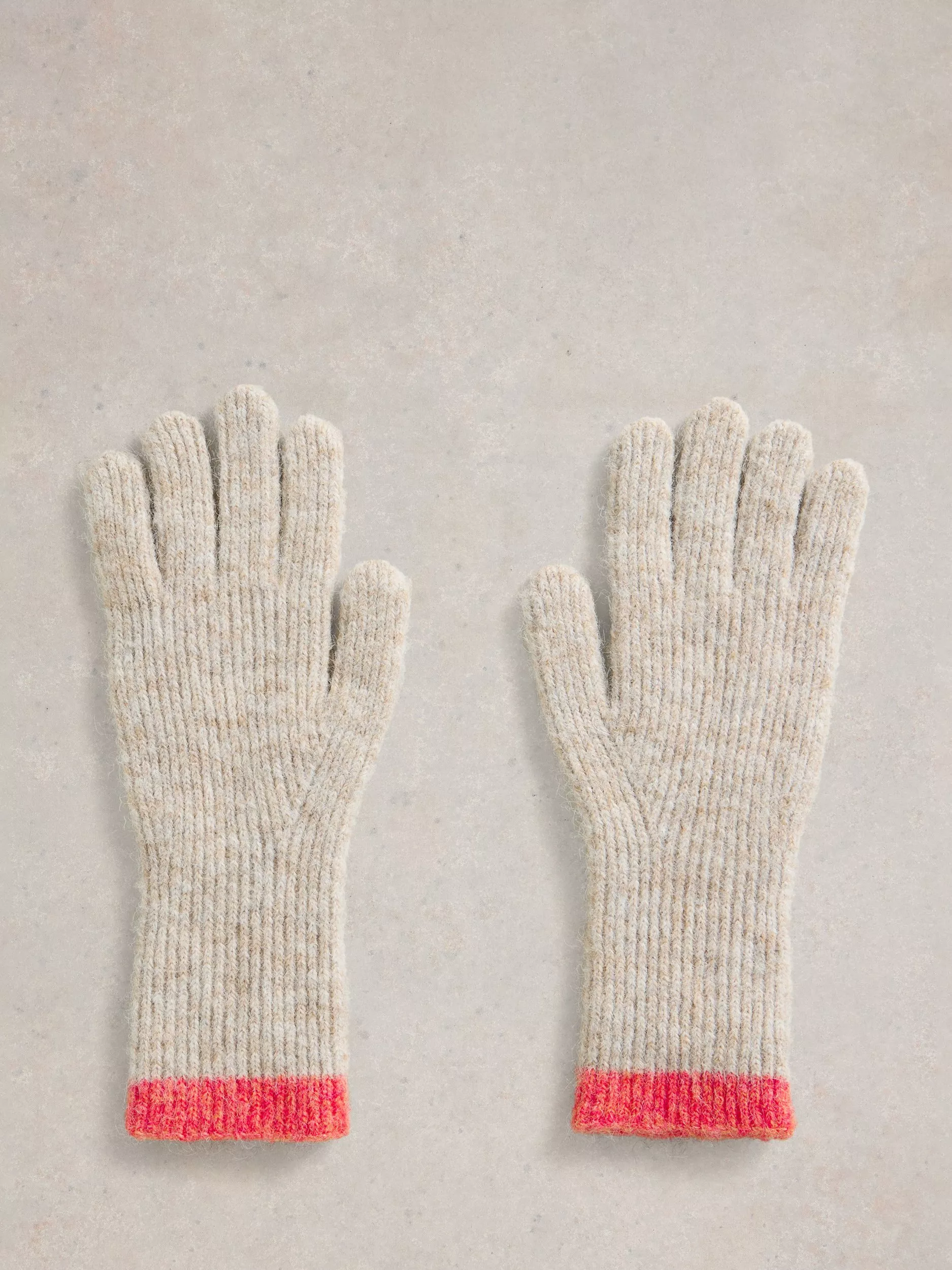 White StuffColour Block Knit Gloves, Natural/Multi