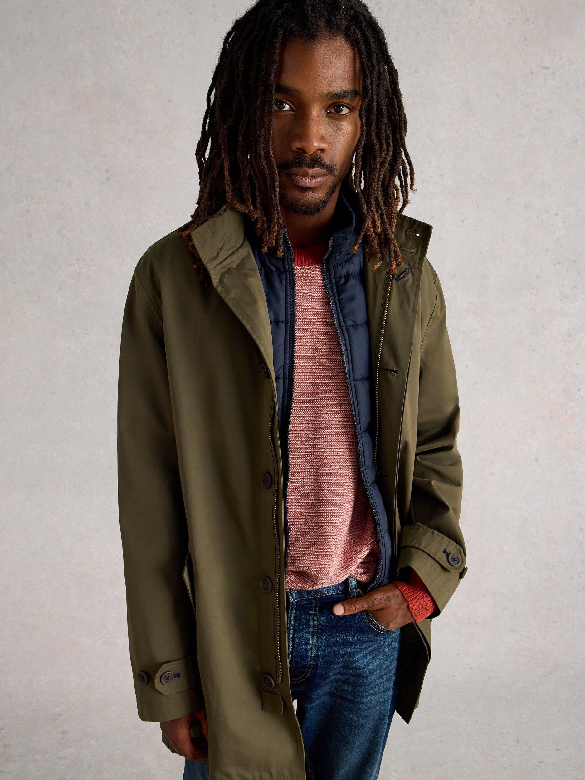 This raincoat keeps you comfortably dry while moving with ease through busy days. Its regular fit lets you layer as needed, while clever details protect against the drizzle without ever compromising your sense of style or adventure.