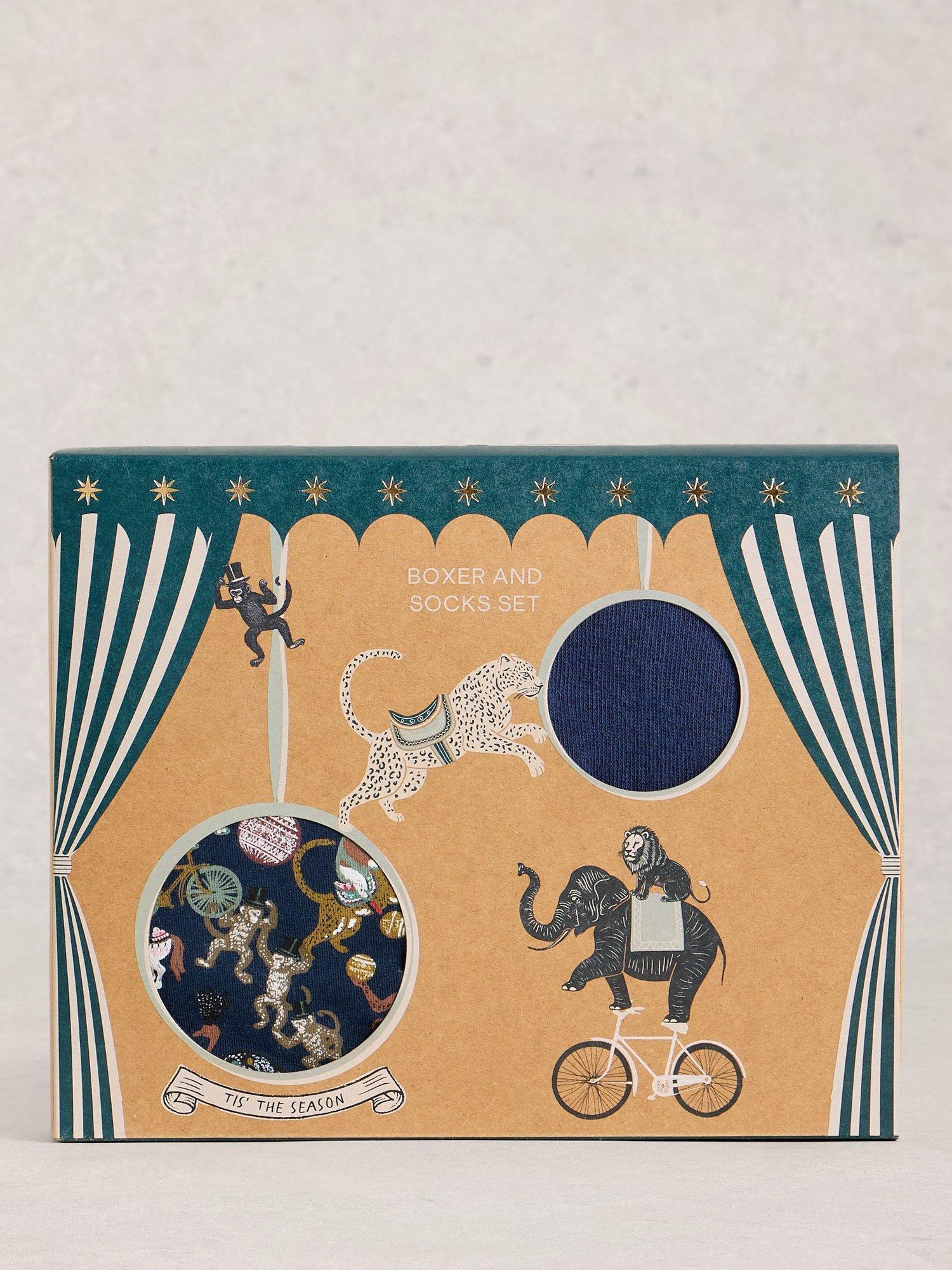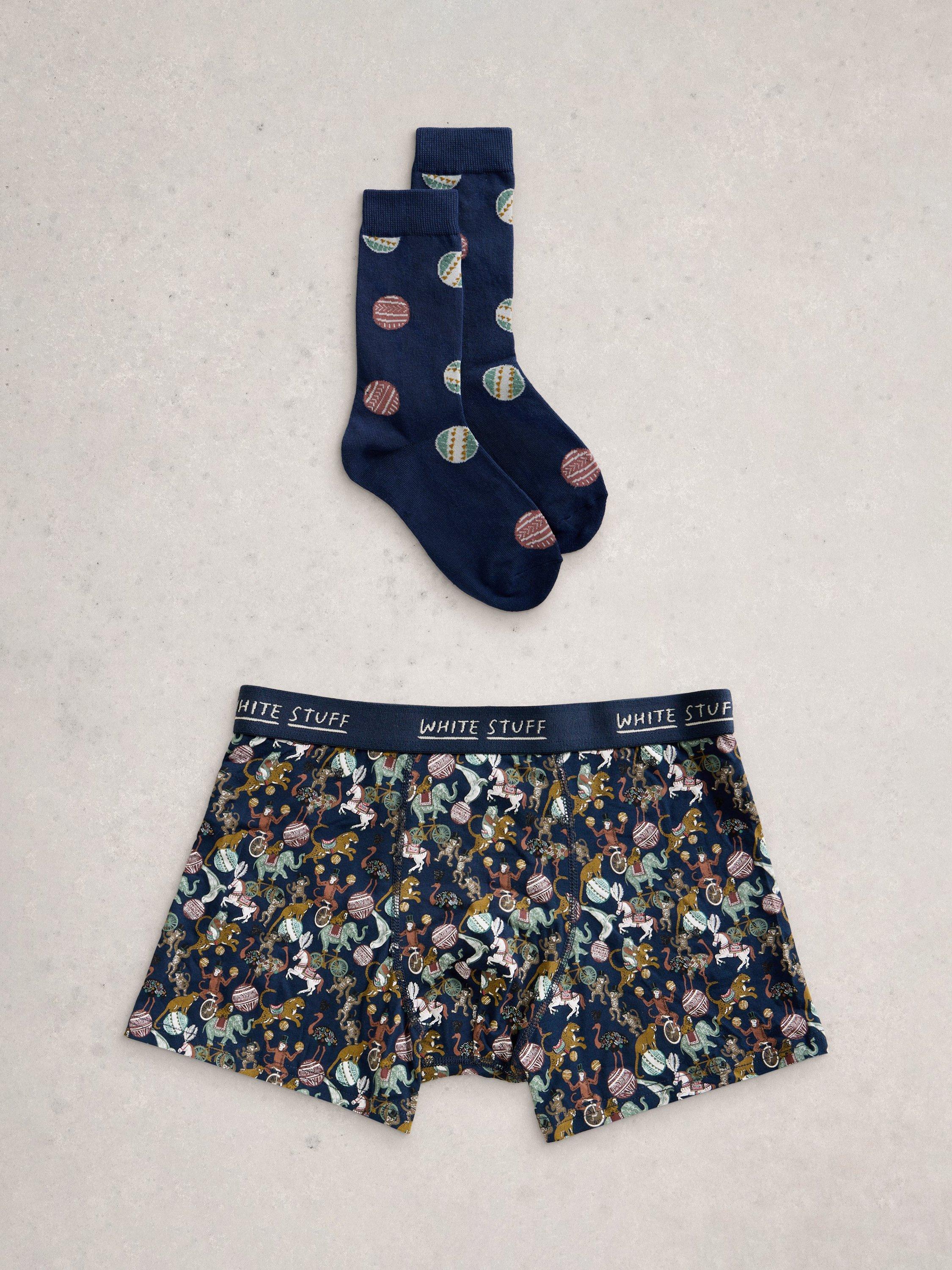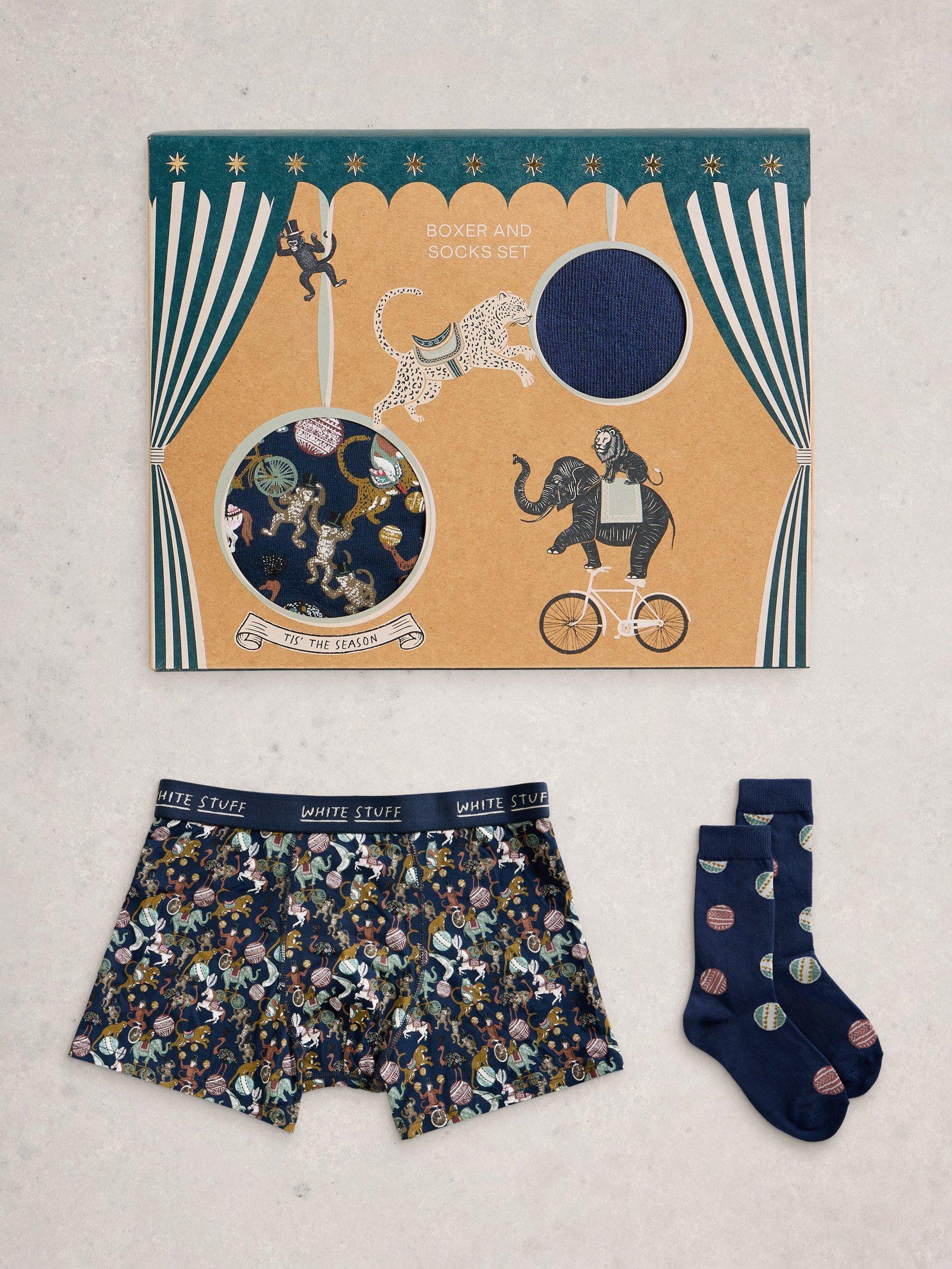 In fun prints, this boxers and socks set from White Stuff is blended with cotton for comfortable wear.