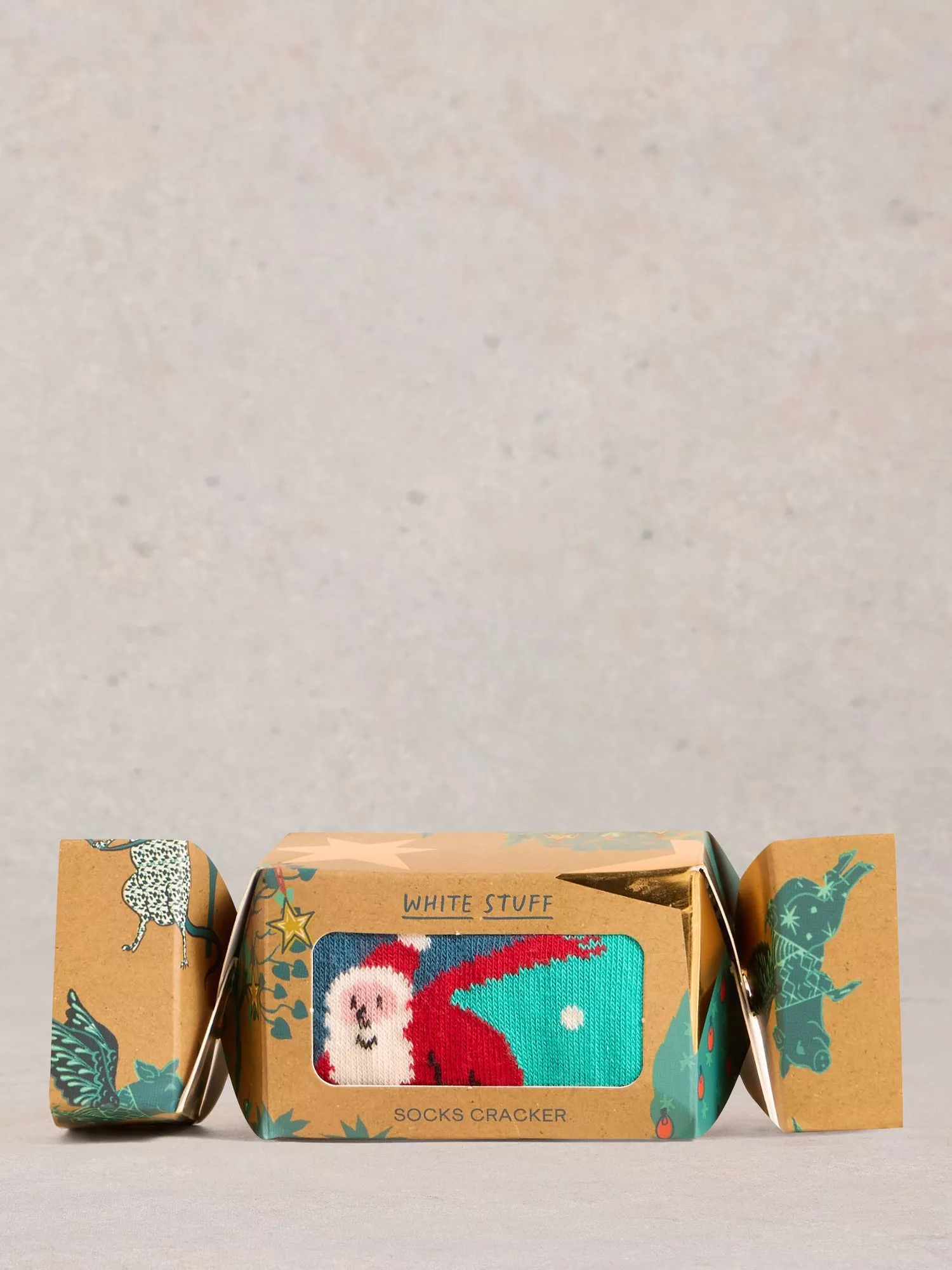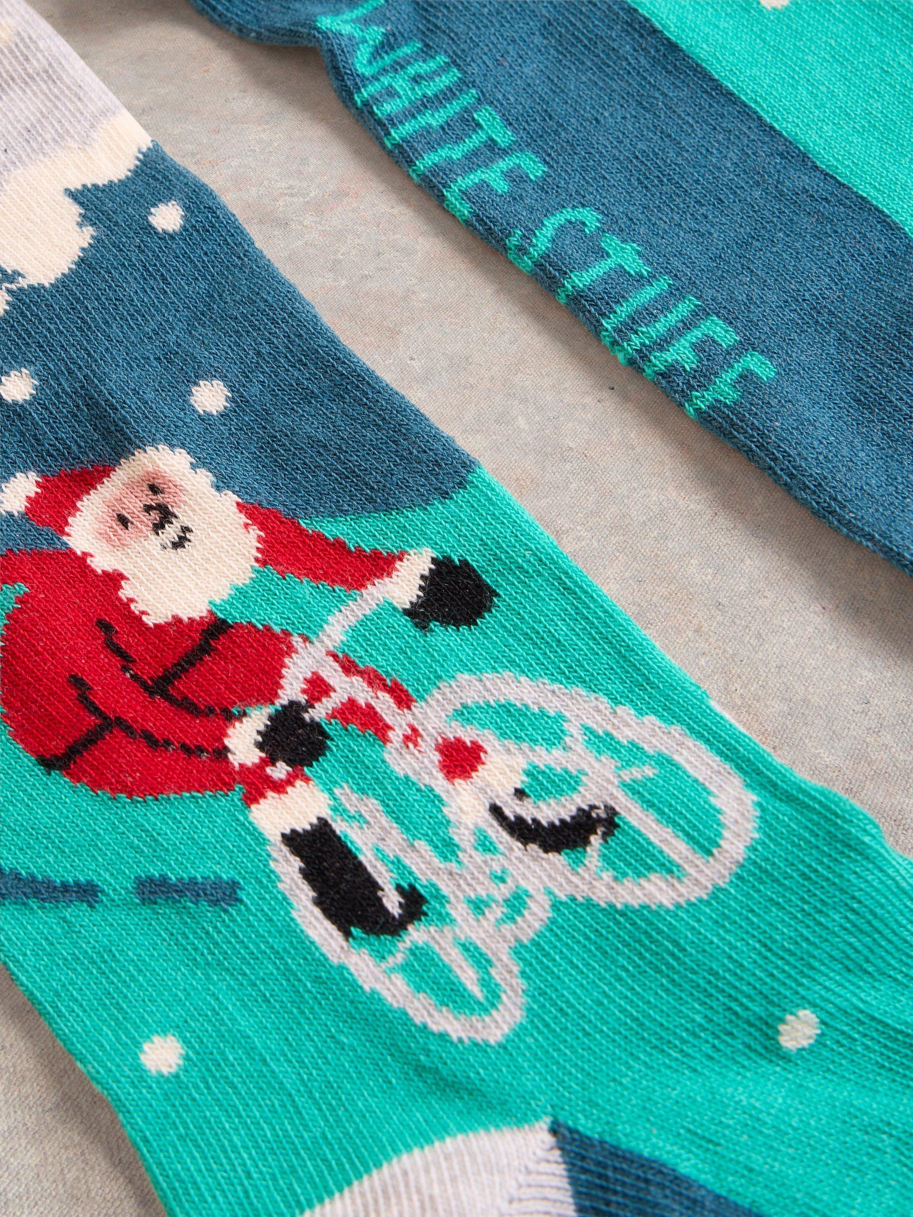 White StuffCracker Boxed Cycling Santa Socks, Multi