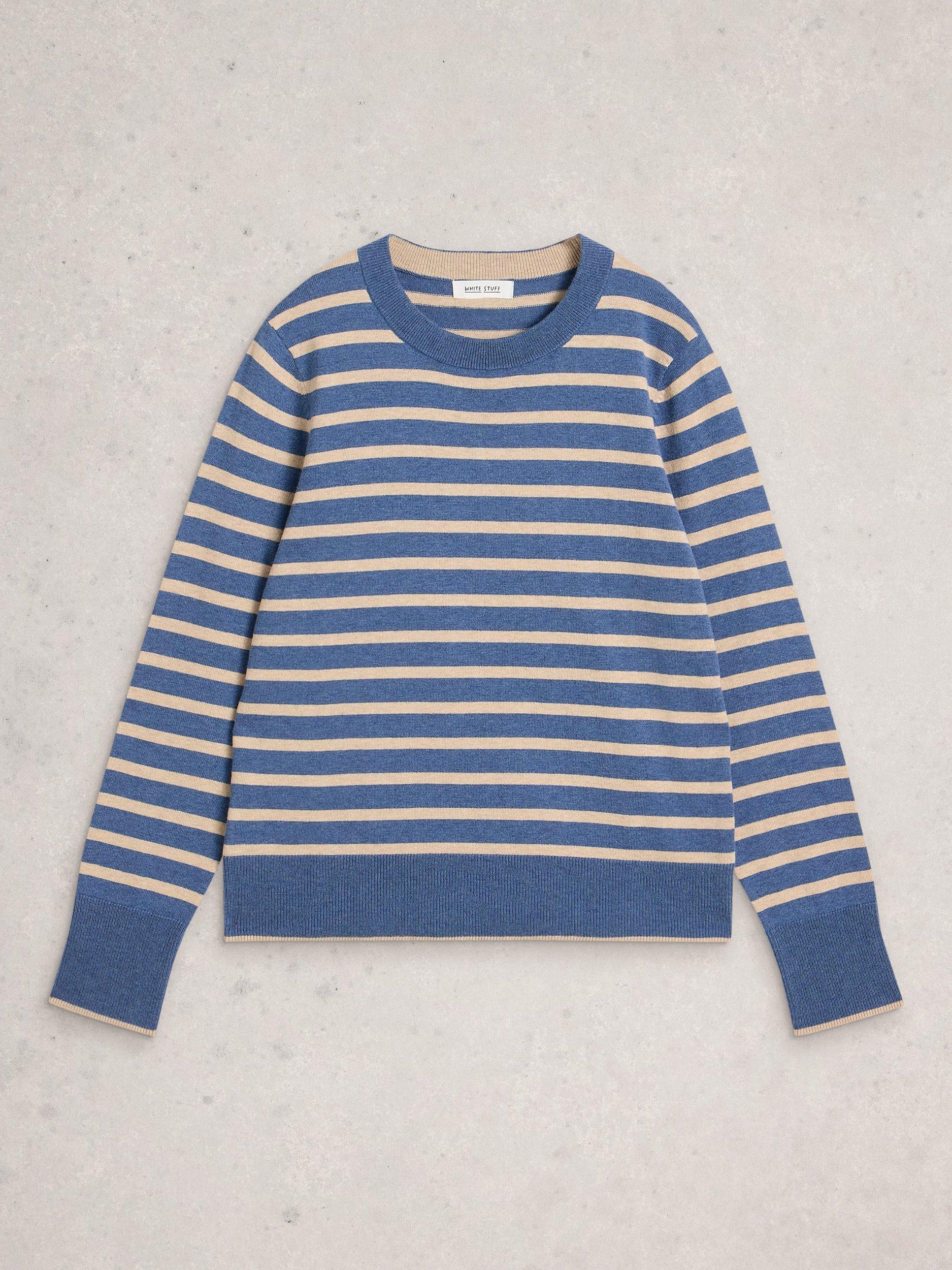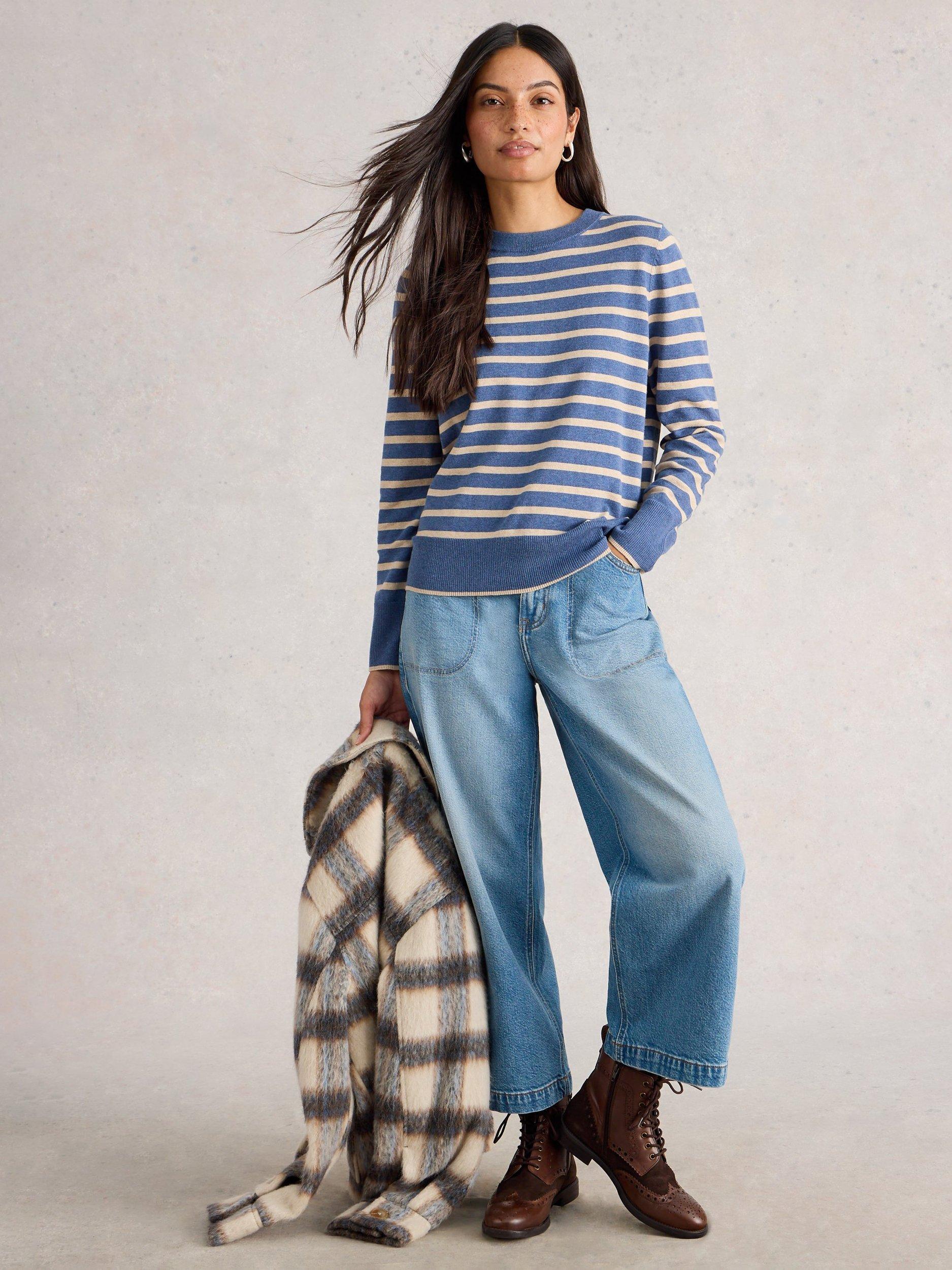 Stay comfortable all day with this medium weight, wool blend striped jumper. Its crew neck and long sleeves make it a practical choice for work or weekends, giving you a cosy layer for any outing.