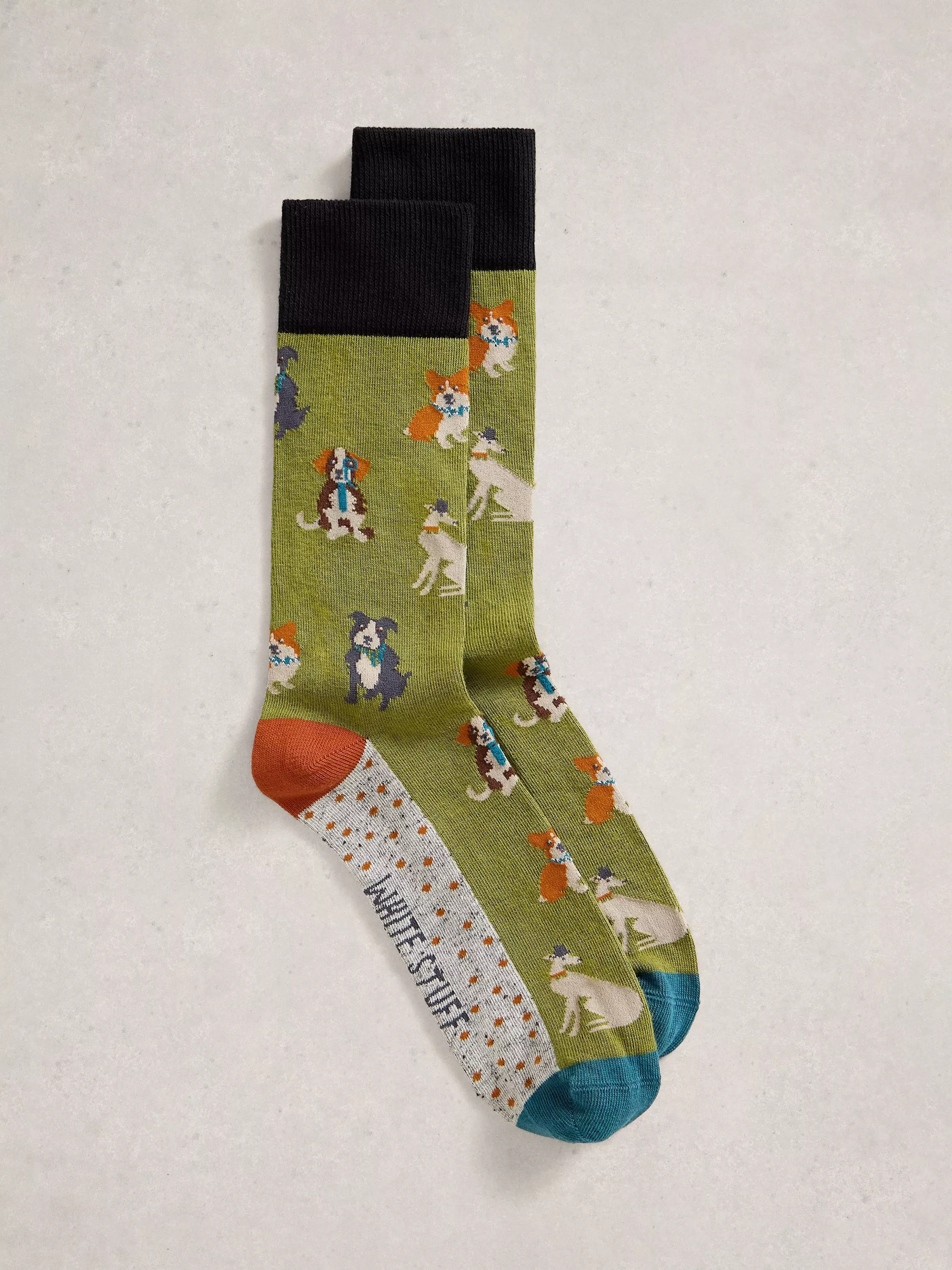 White StuffDapper Dogs Ankle Socks, Green/Multi