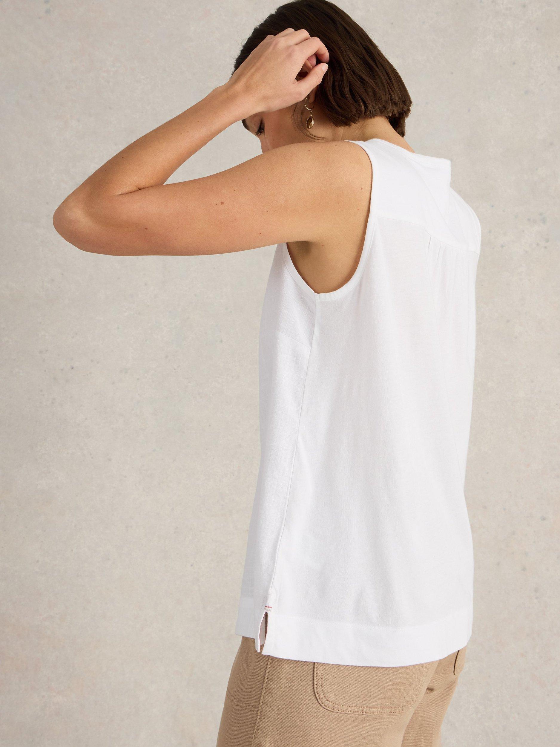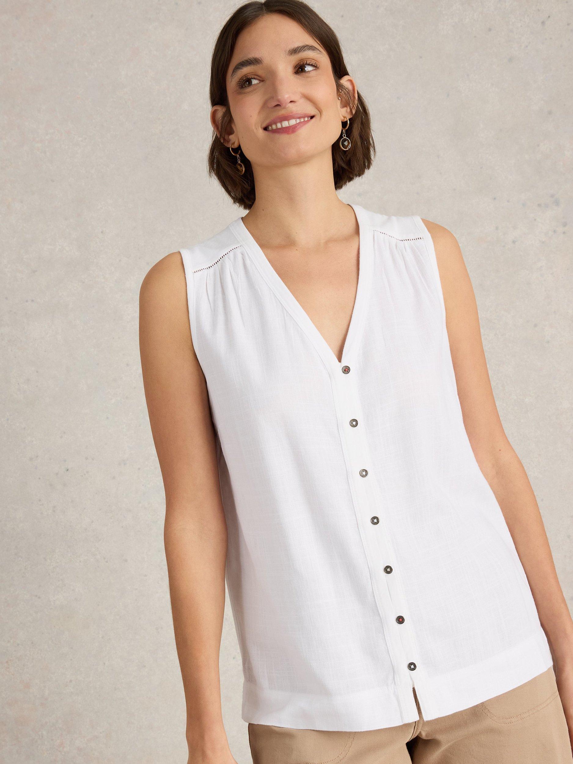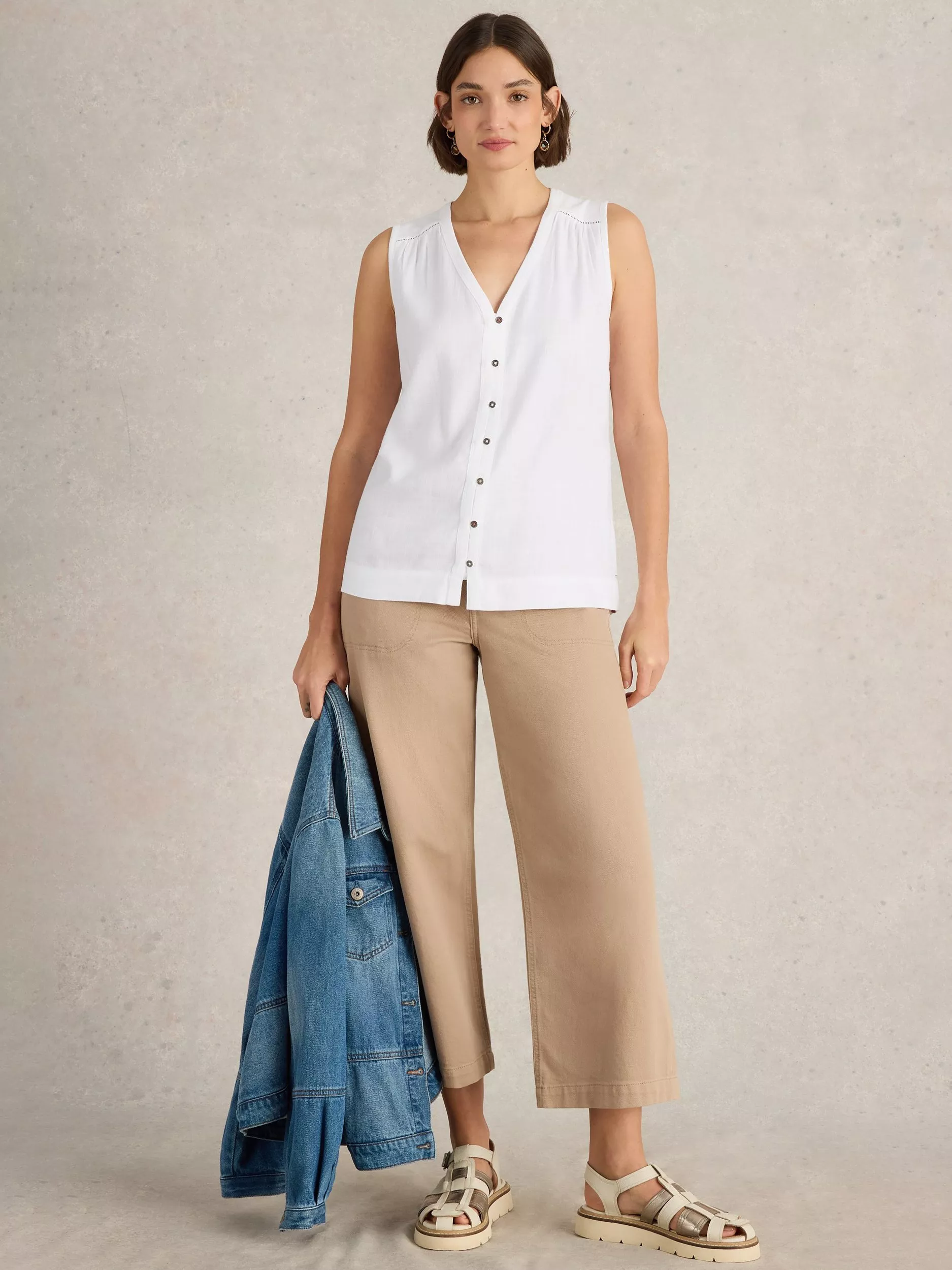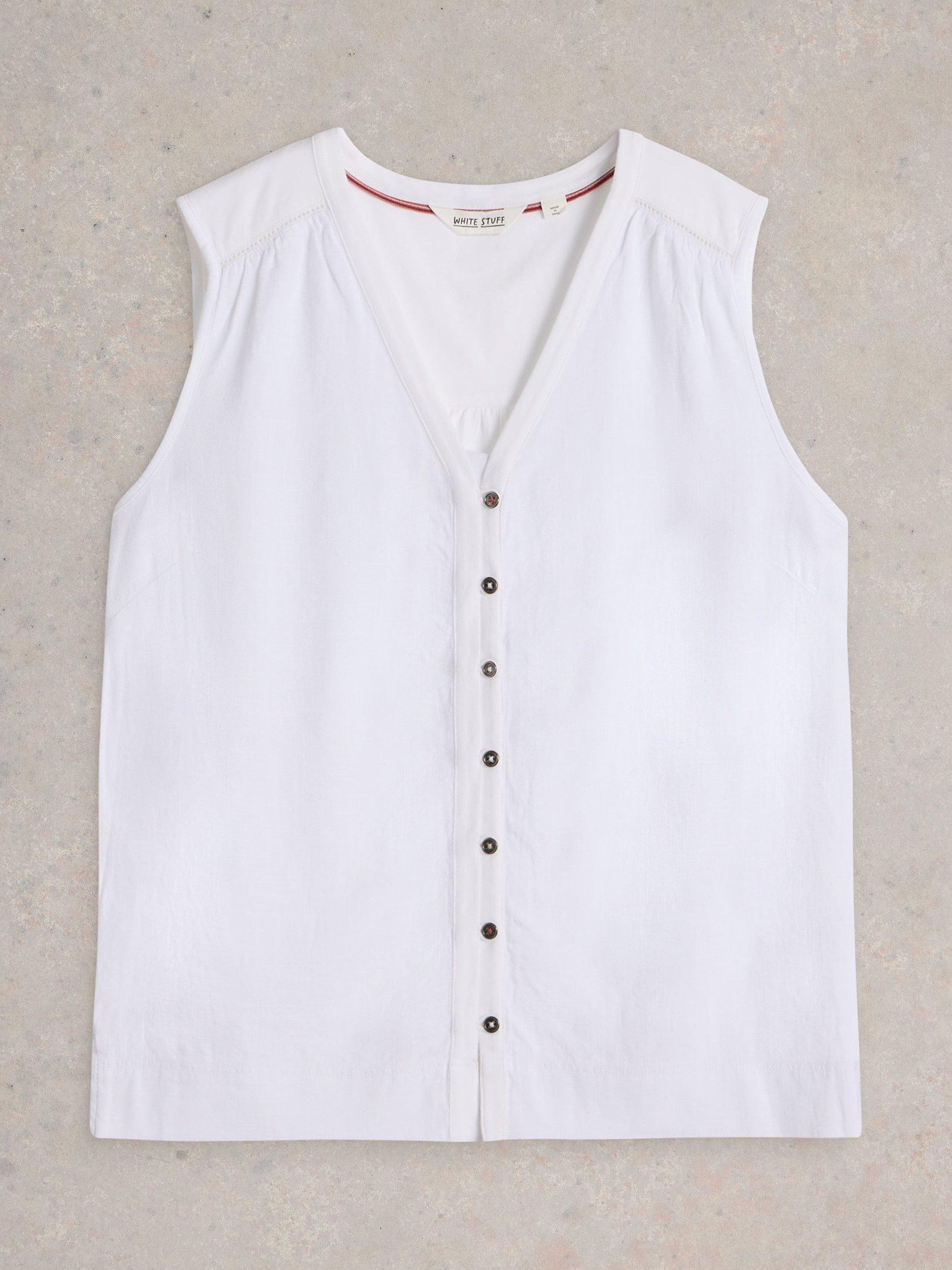 Made from a soft linen blend with a woven front and jersey back, this sleeveless vest from Brora is designed with button details.