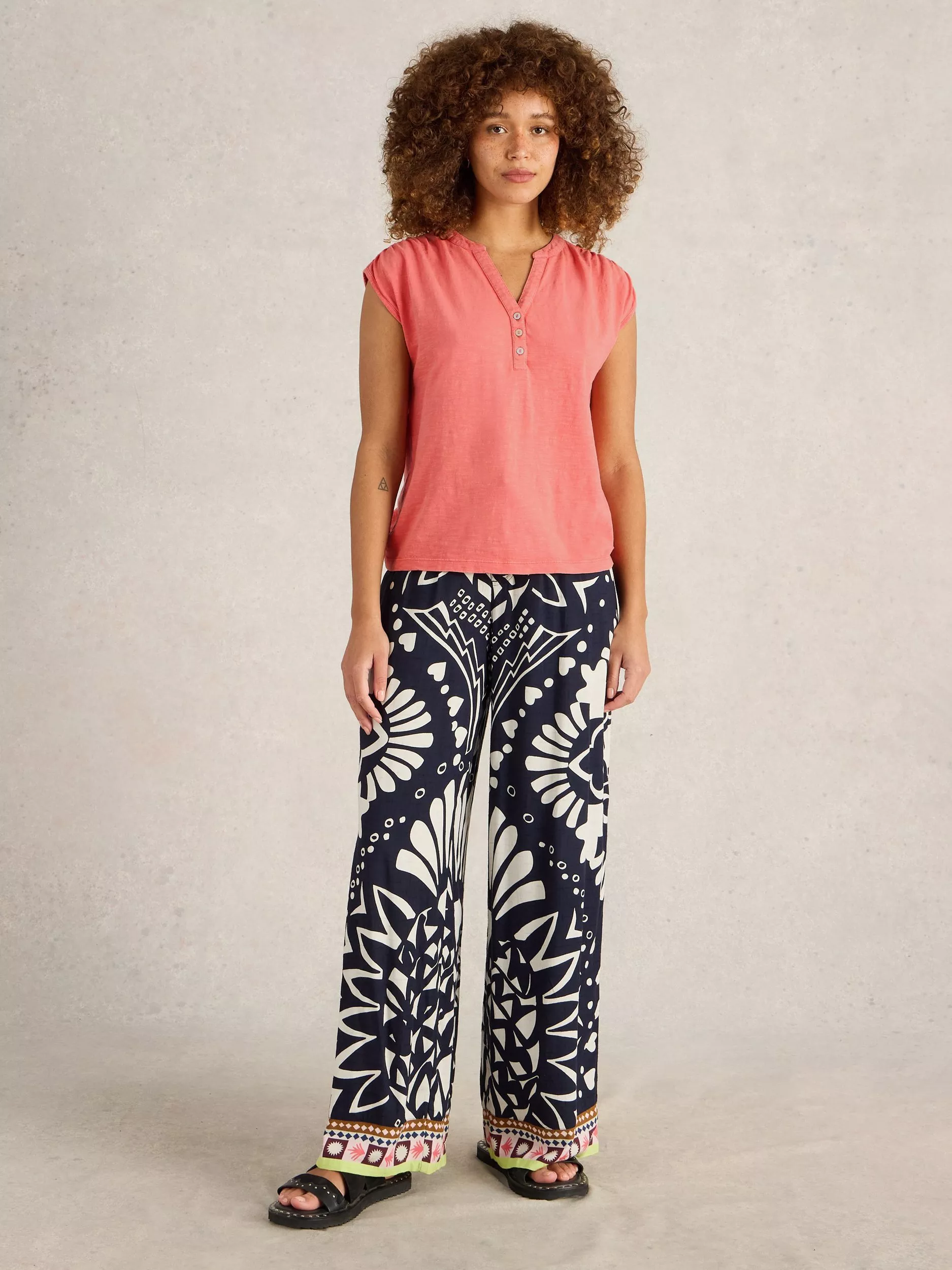 This sleeveless jersey tank top from White Stuff is made from organic cotton with a button front fastening. Each garment is unique with an enzyme wash creating a denim fabric effect.