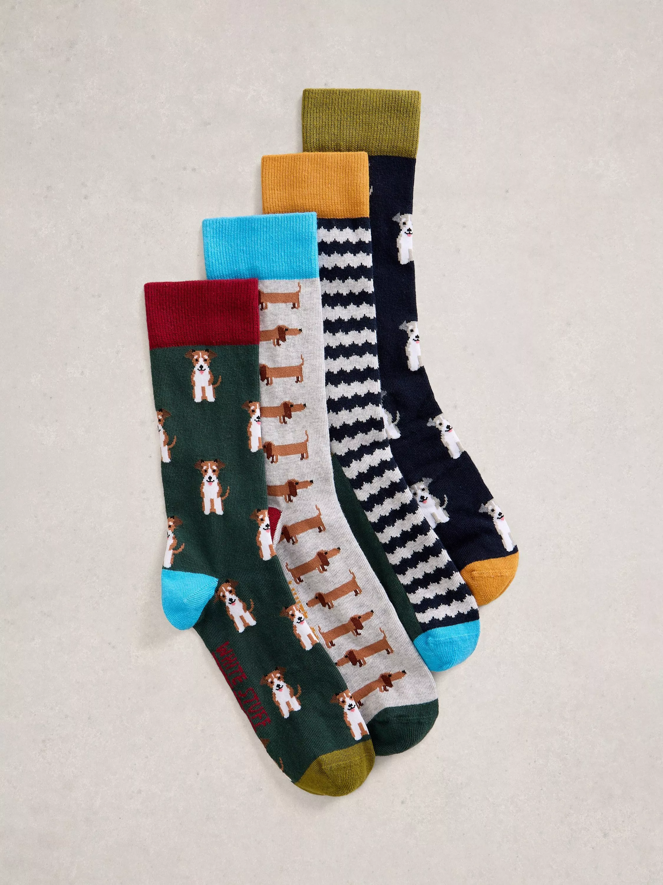 White StuffDogs Socks, Pack of 4, Multi