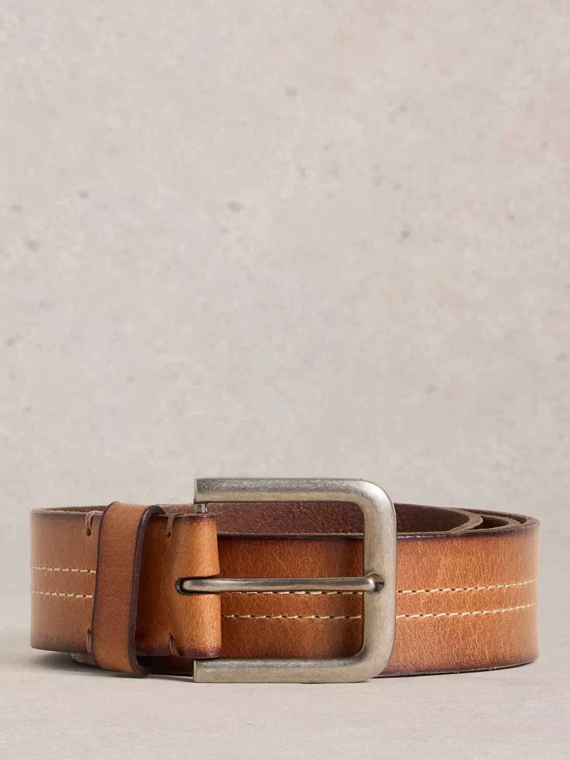A leather belt from White Stuff with double row stitch detailing. A handsome addition to jeans or chinos.