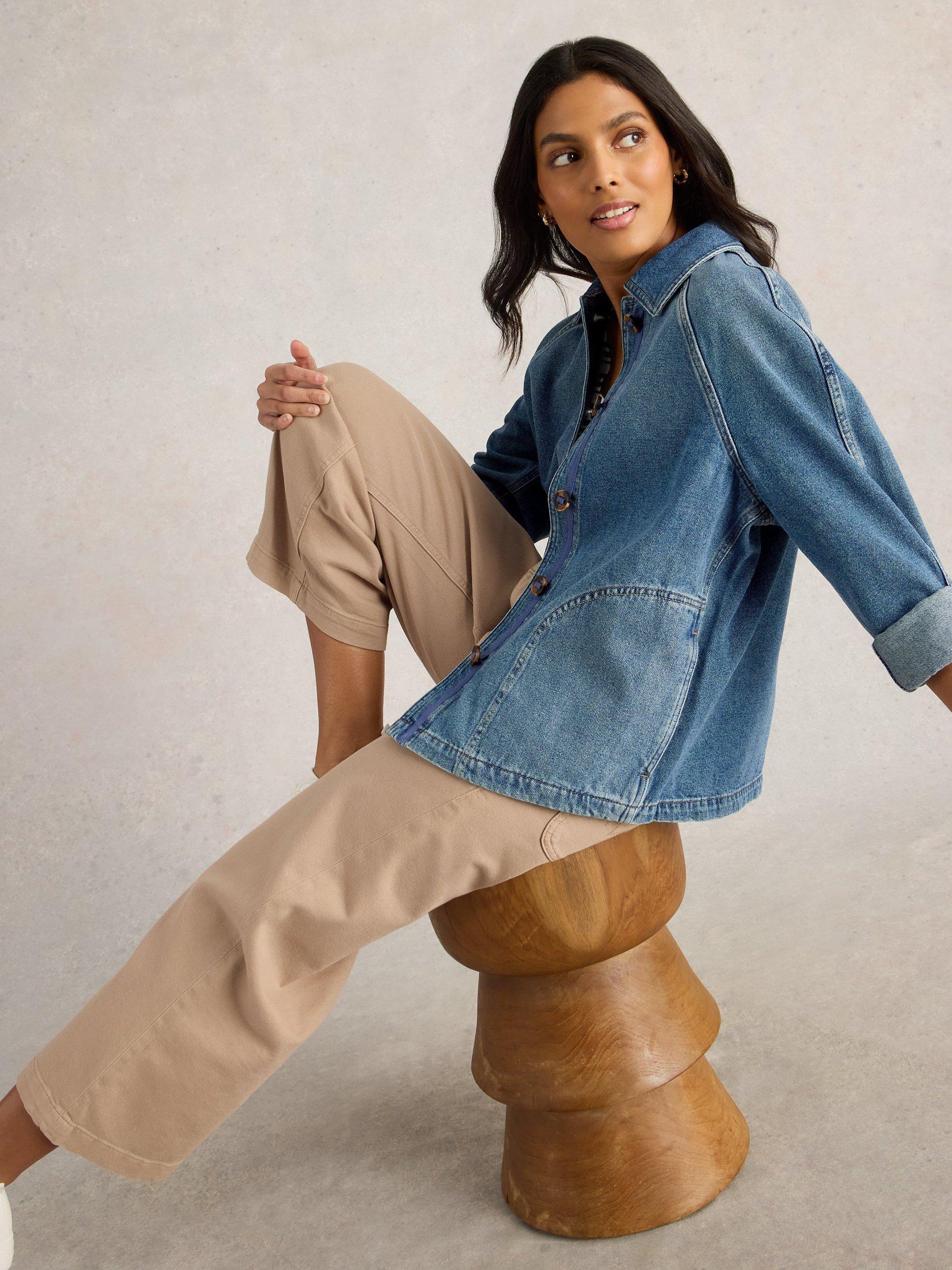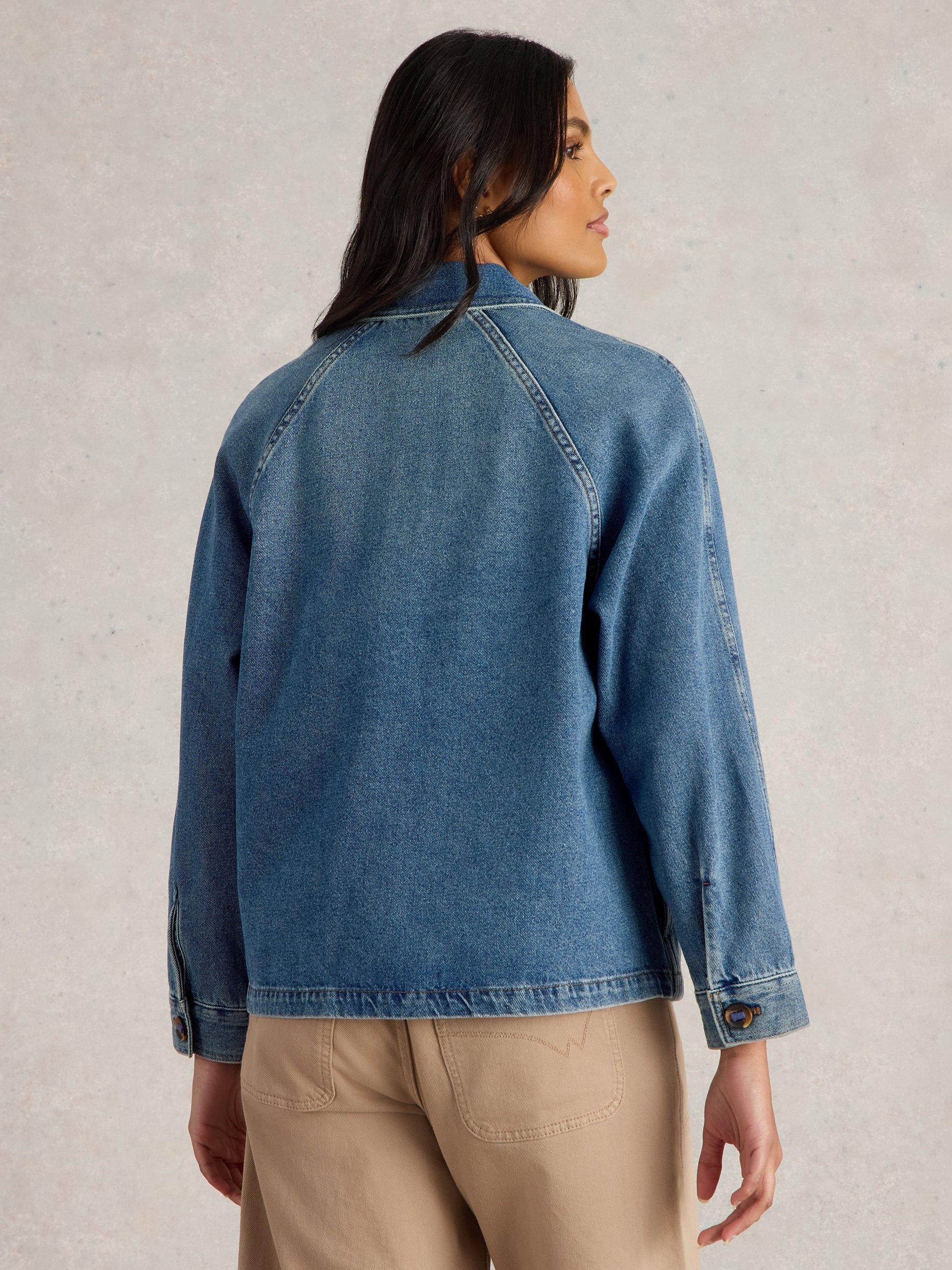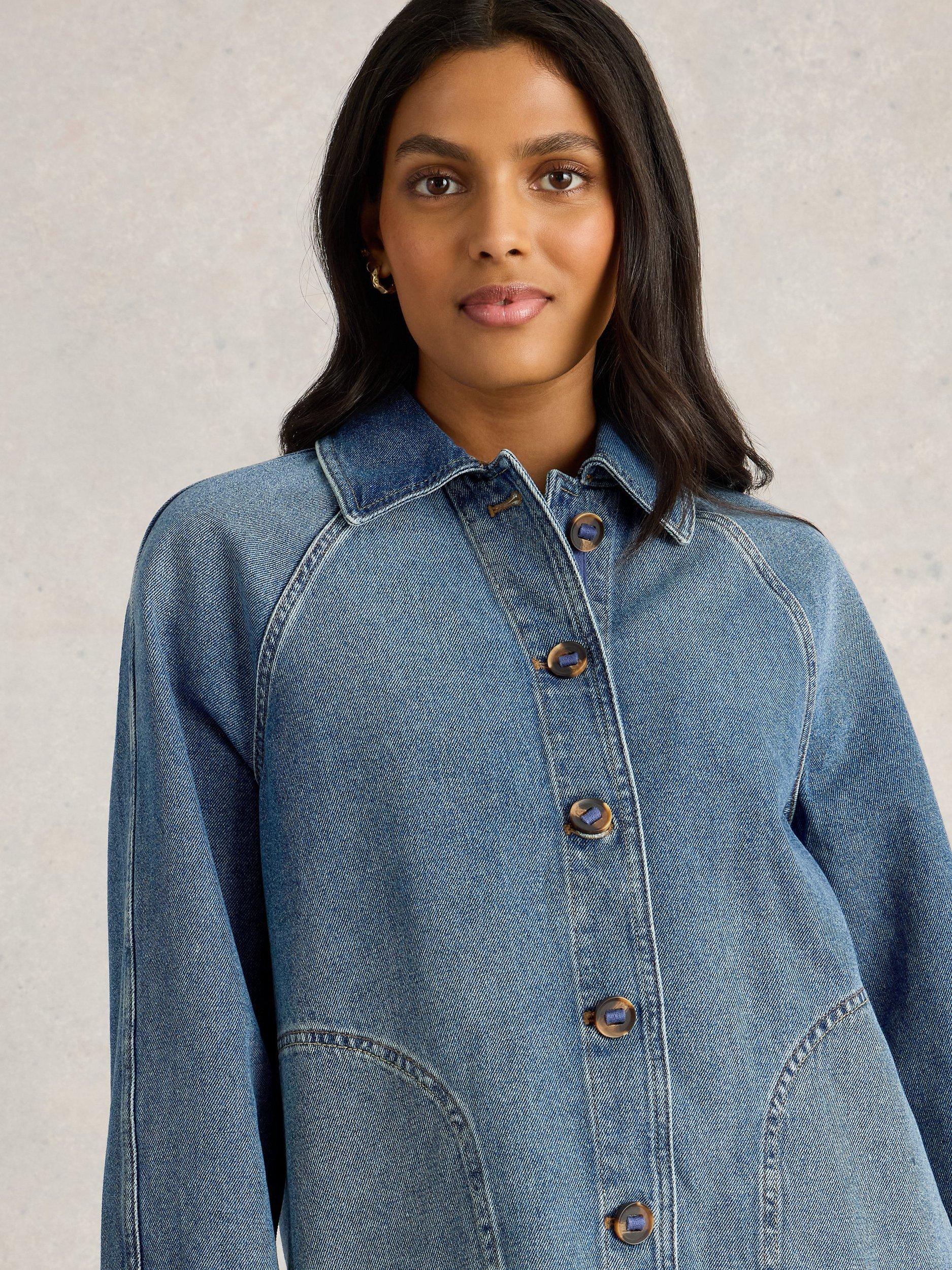 A long, raglan-sleeve denim jacket in an oversized, relaxed fit.