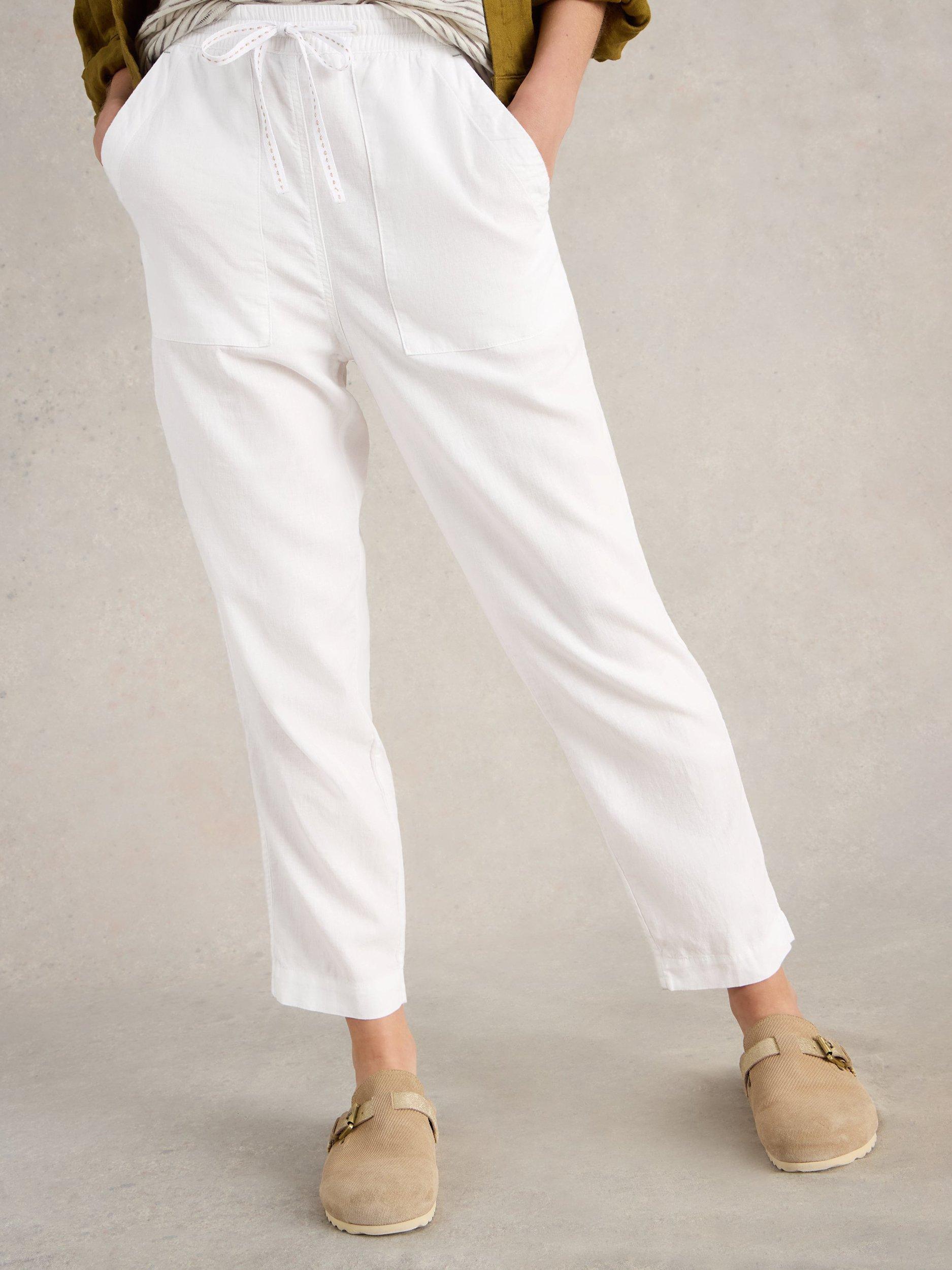 Whipped together with a lightweight linen blend, they are cropped at the ankle and can be worn with patterns and prints thanks to their plain design.