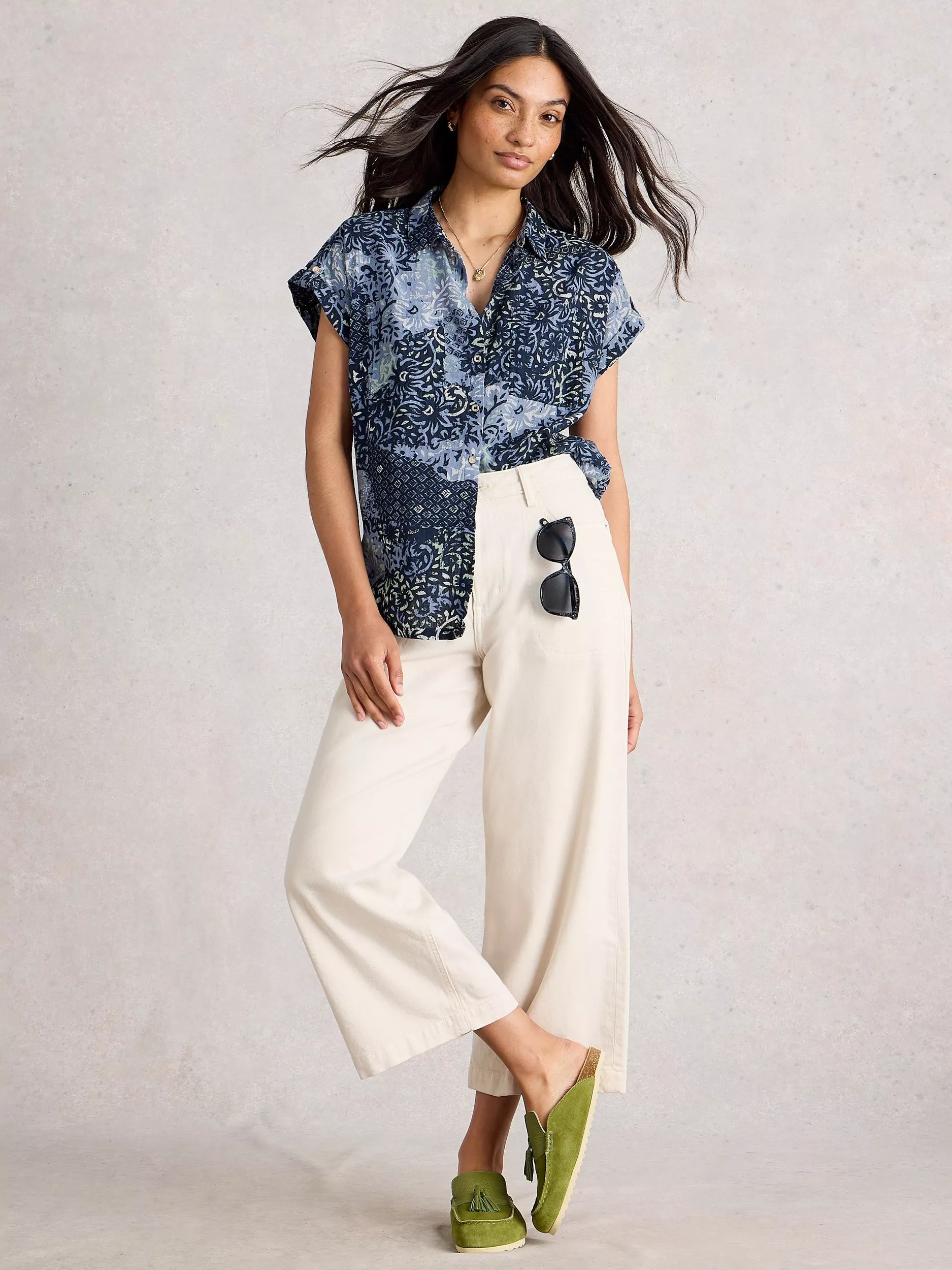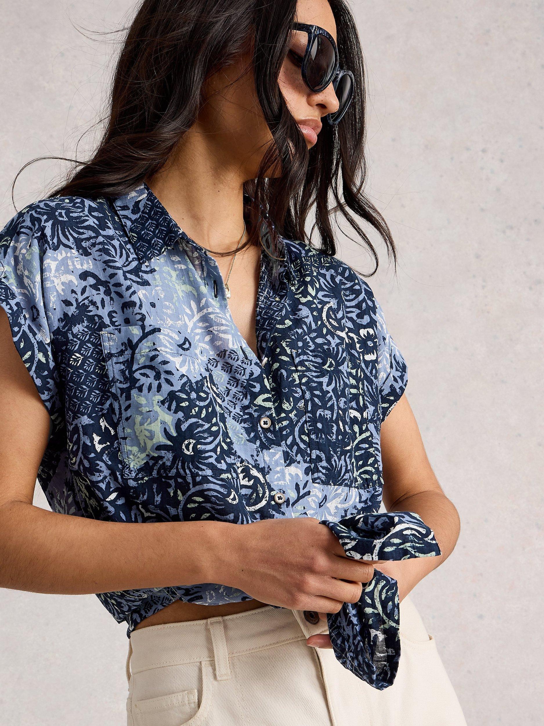 A White Stuff classic, this shirt is doused in delicate leafy florals. Framed with a collar and cap sleeves, it is made from organic cotton for comfortable wear.
