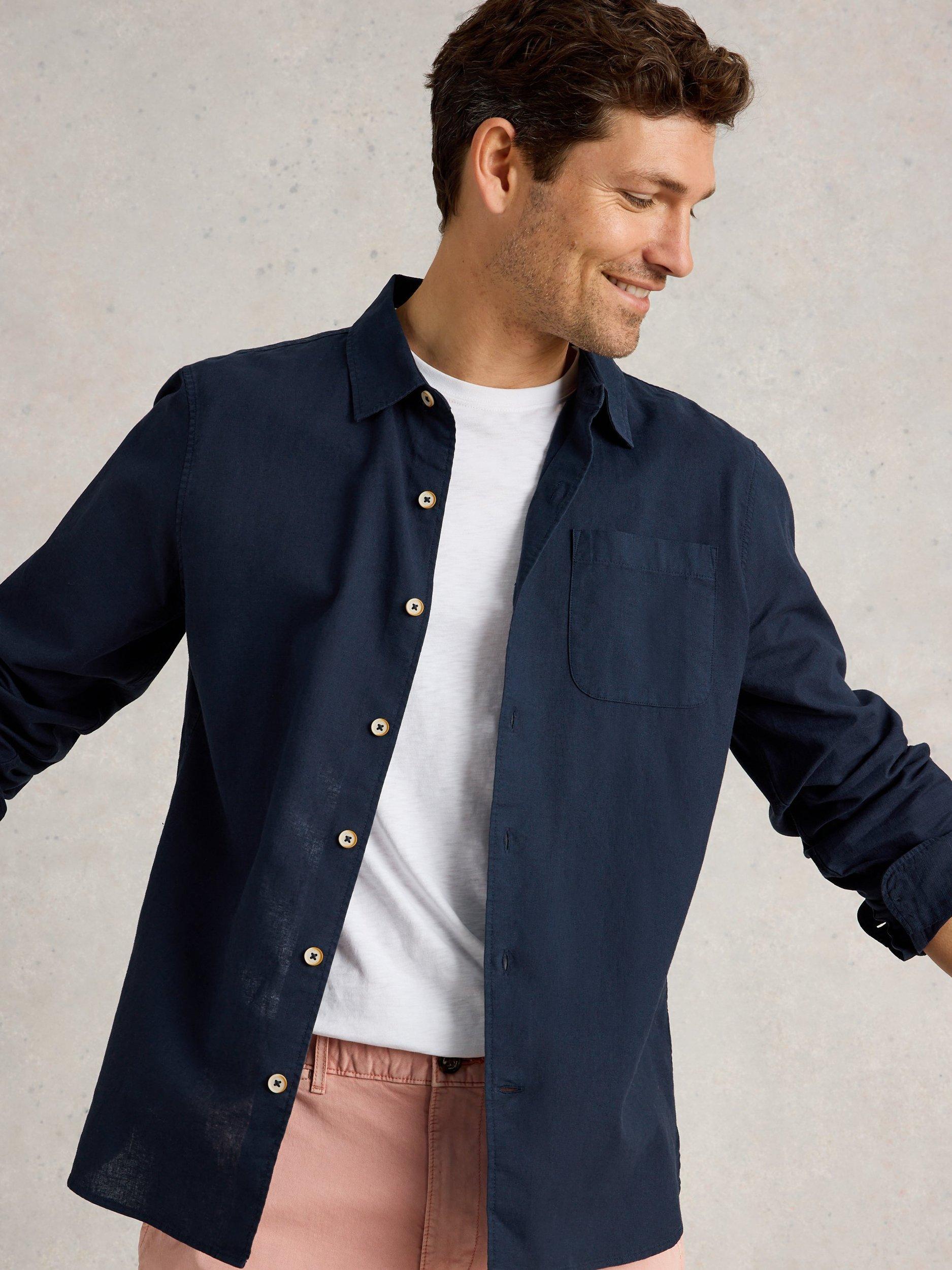 White StuffEly Linen Blend Regular Fit Shirt, Dark Navy