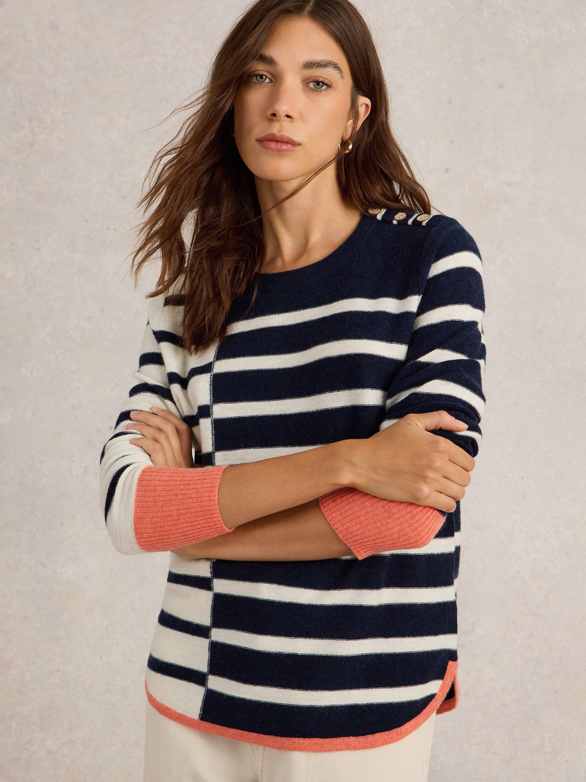 With a round neckline and button detailing at the shoulder, this jumper by White Stuff is blended with wool for cosy wear.