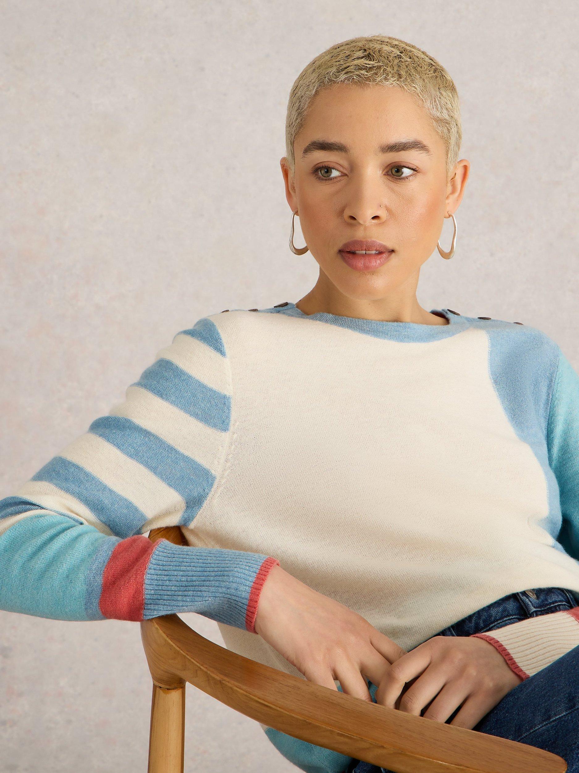 Round at the neck for fuss-free layering, this lightweight jumper by White Stuff brings a modern finish to your outfit with its colour block stripes and will help you stay cosy despite what the weather says.