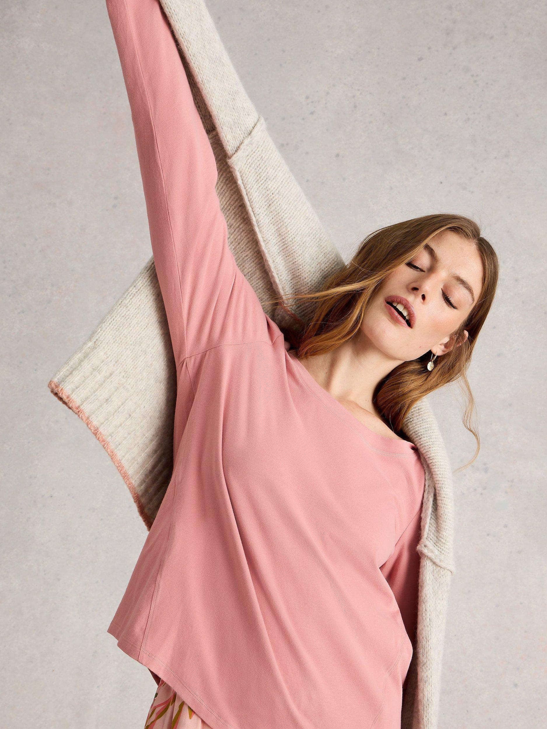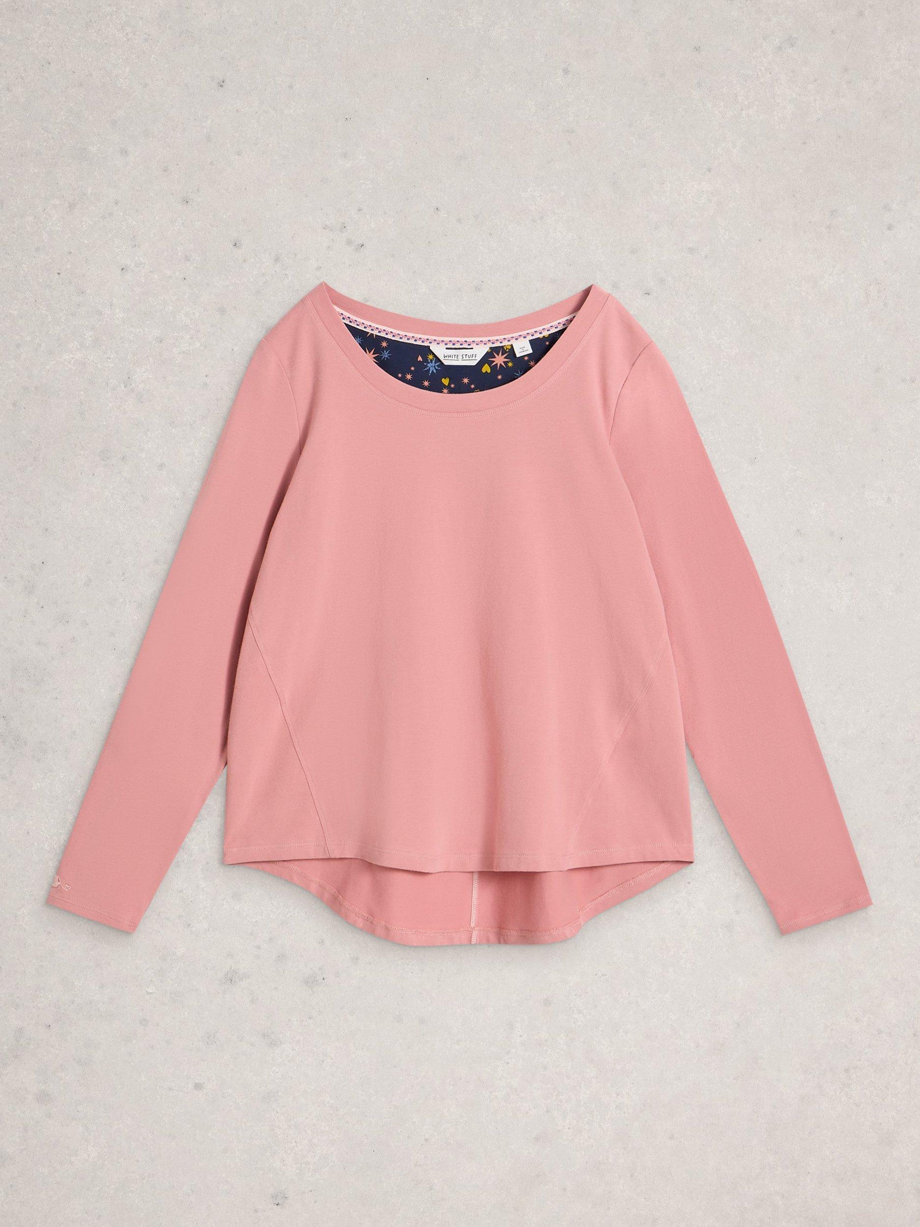 Slip into comfort with this soft cotton blend pyjama top. Its gentle stretch allows you to unwind with ease, while the long sleeves and round neck provide extra cosiness for your nightly routine or lazy mornings.