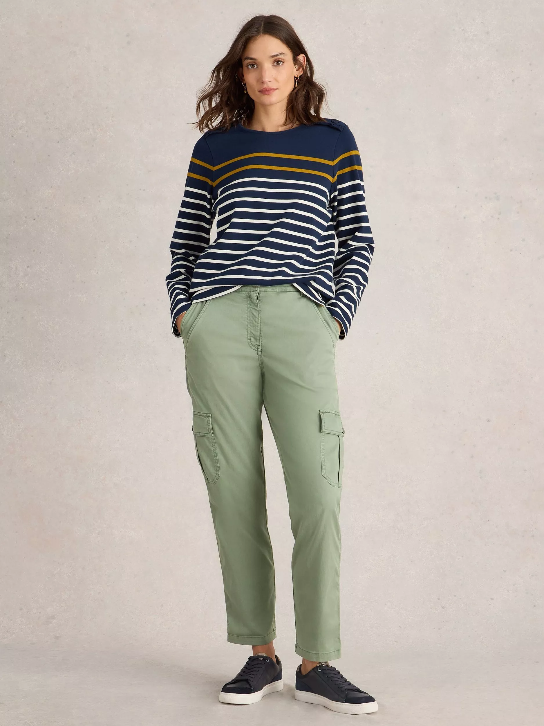 A stylish and comfortable pair of cargo trousers for casual days. With a relaxed fit and plenty of pockets, these ankle-grazing trousers offer practicality and ease. Providing softness and stretch, they're ideal for everyday effortless style.