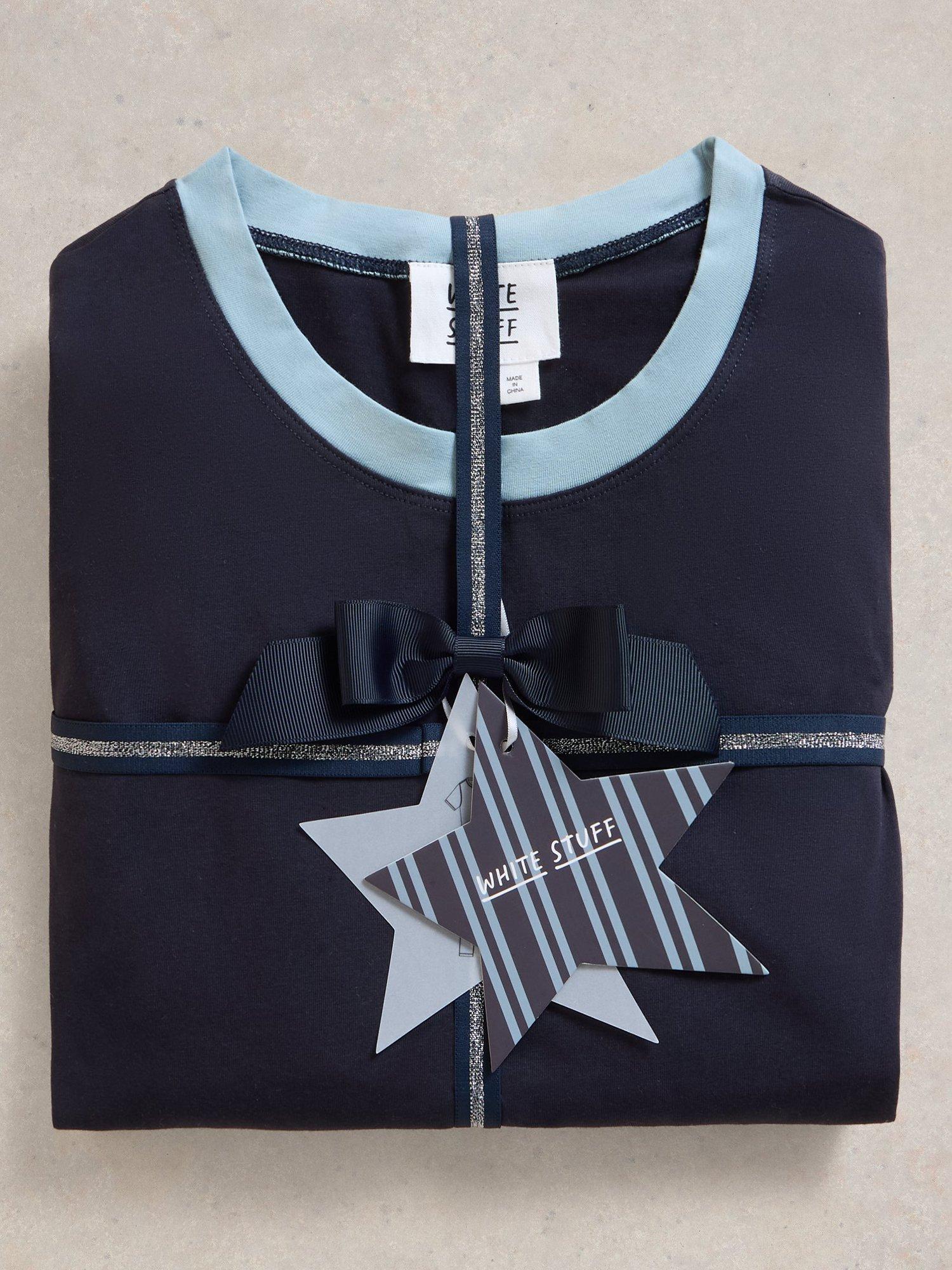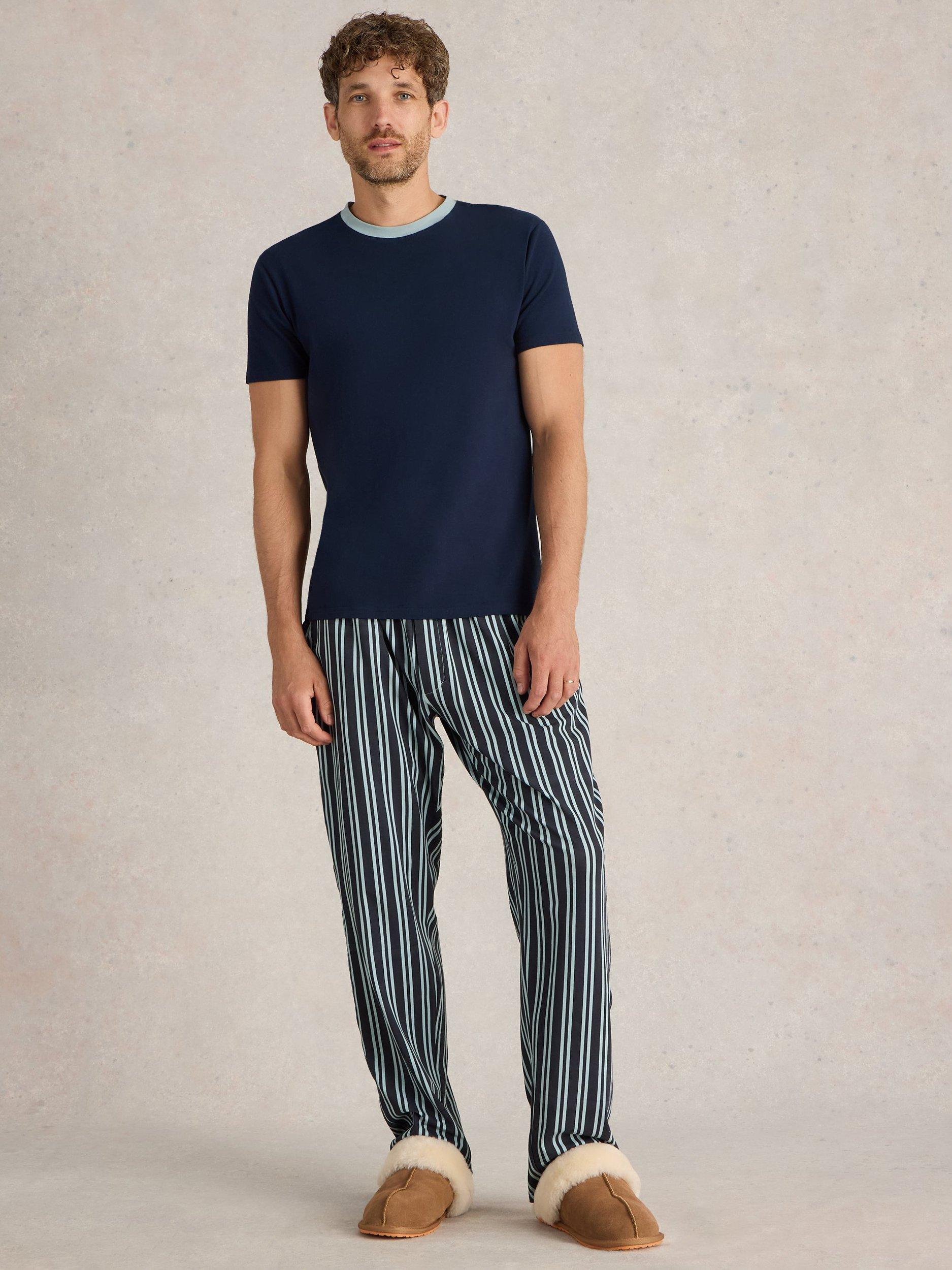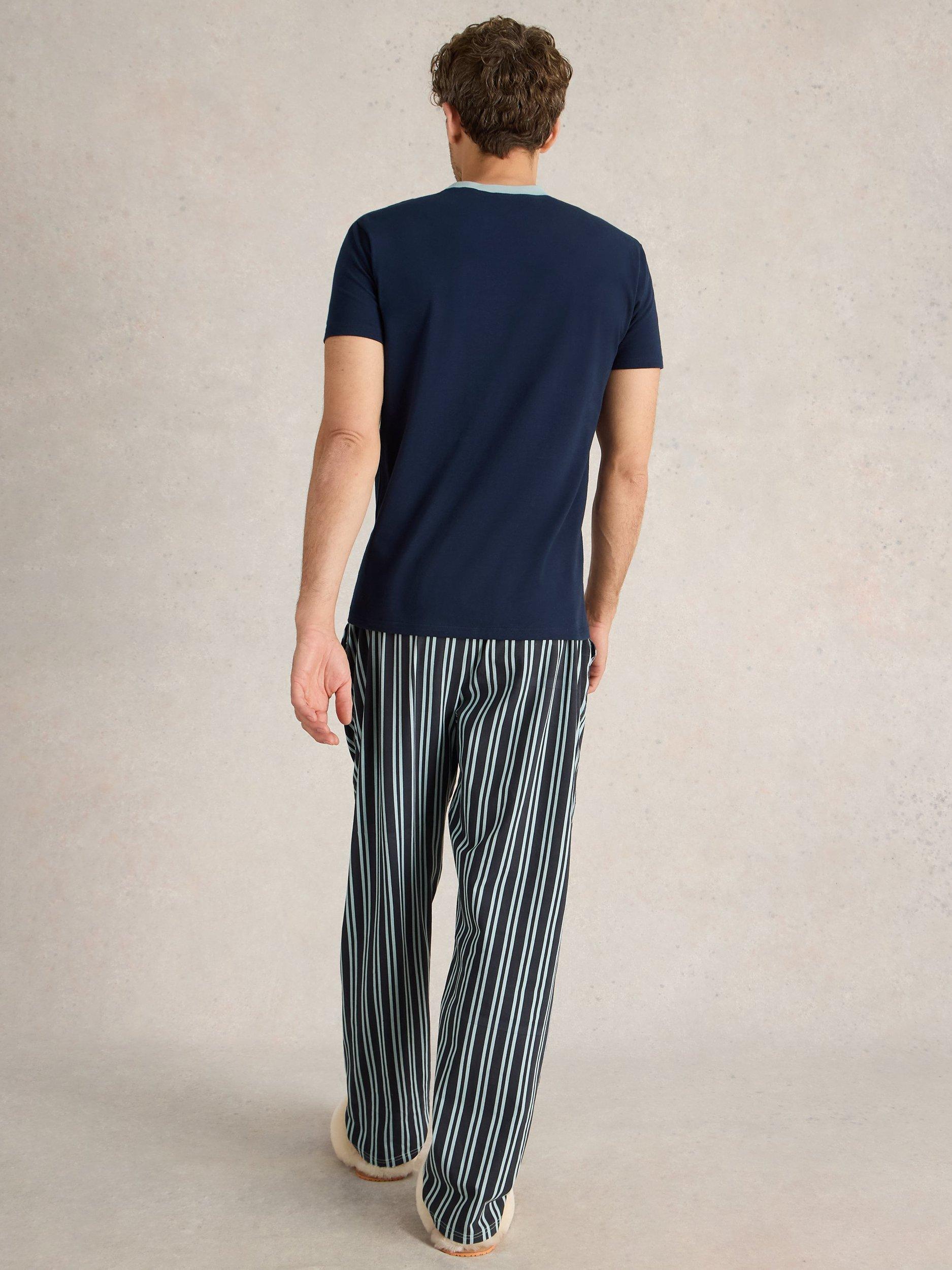 Stretch cotton jersey pyjama set from White Stuff. Made with a contrast crew neckline on the top and striped pyjama bottoms with a comfy elasticated waist.