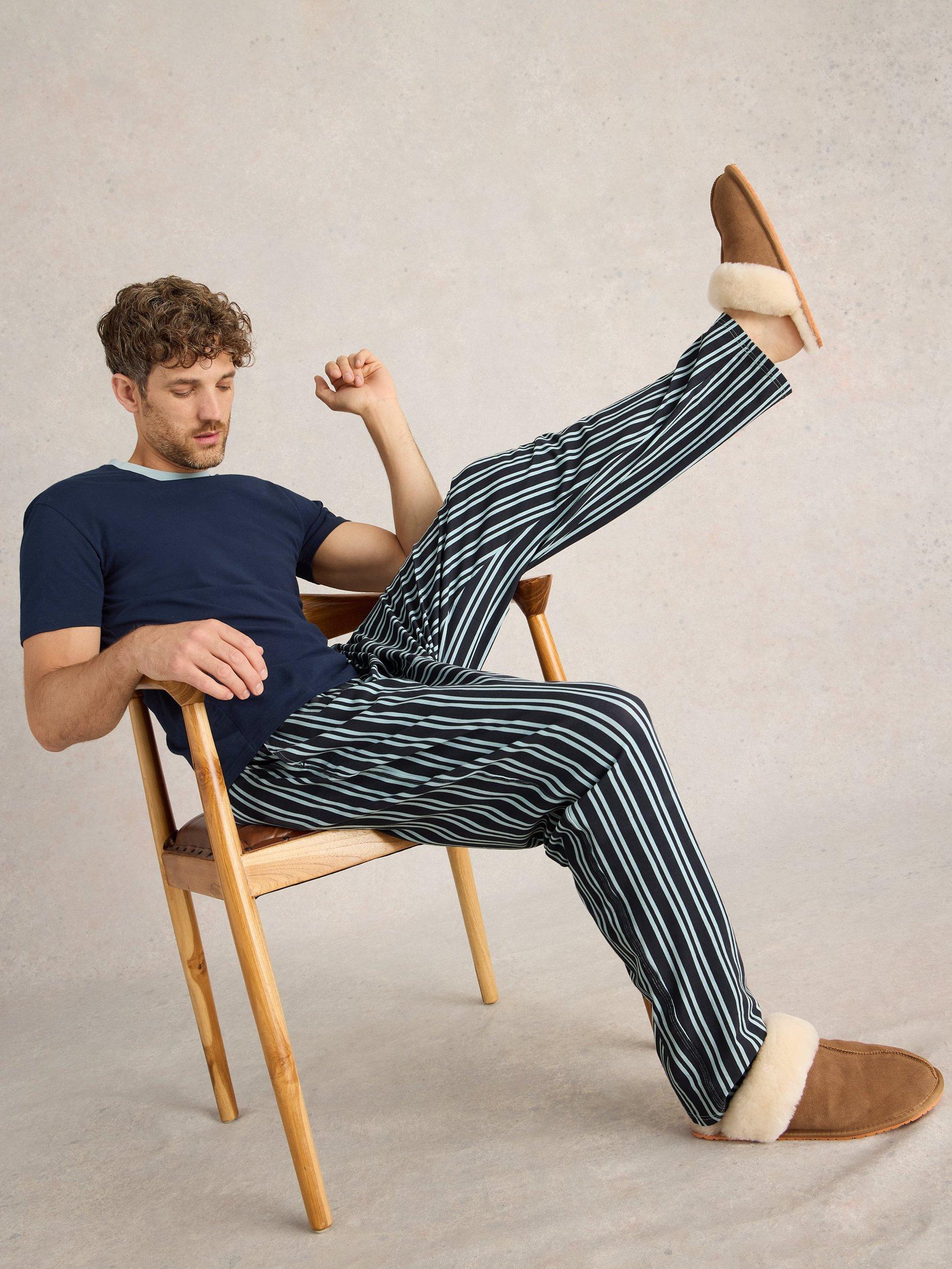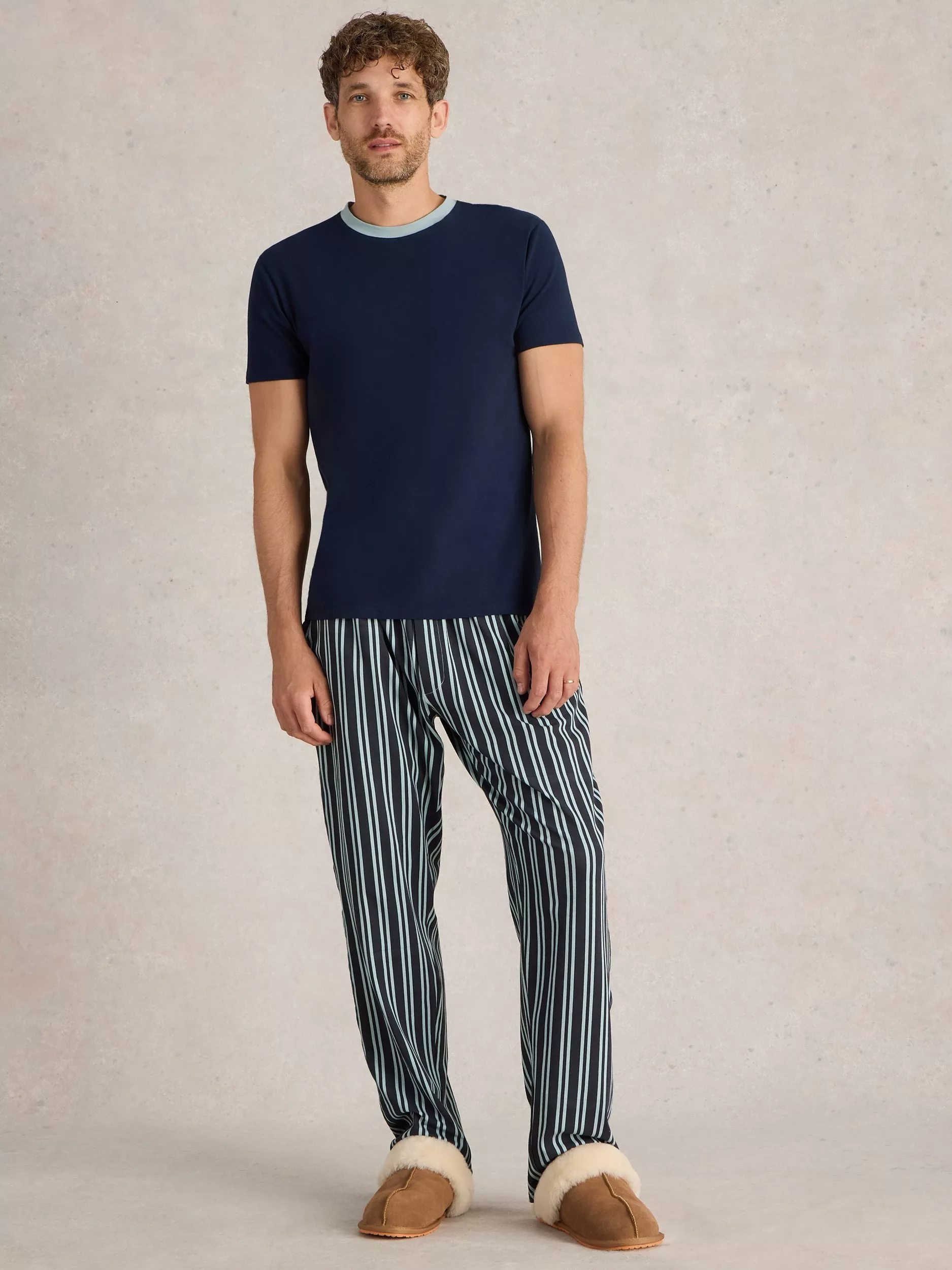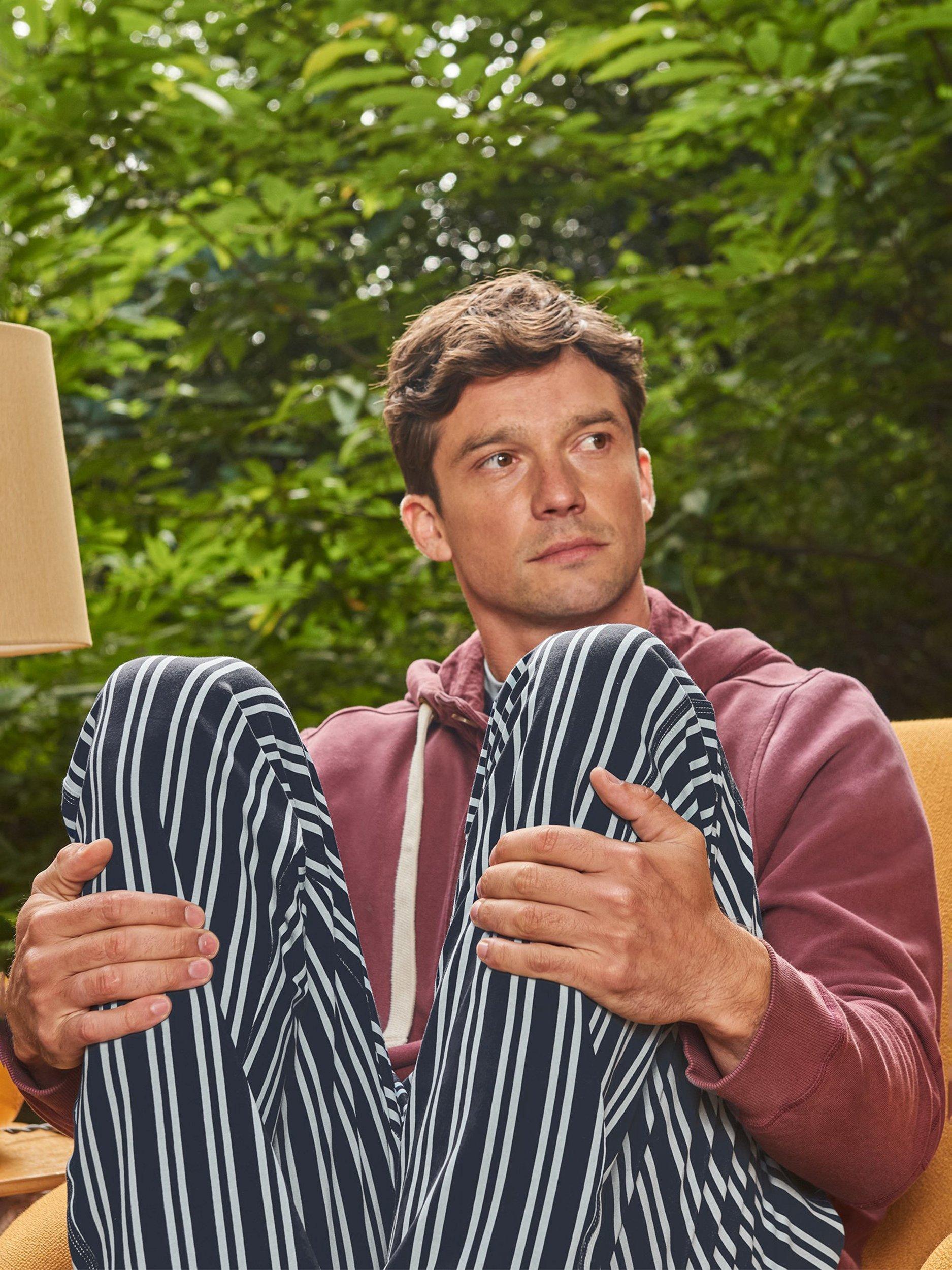 Stretch cotton jersey pyjama set from White Stuff. Made with a contrast crew neckline on the top and striped pyjama bottoms with a comfy elasticated waist.