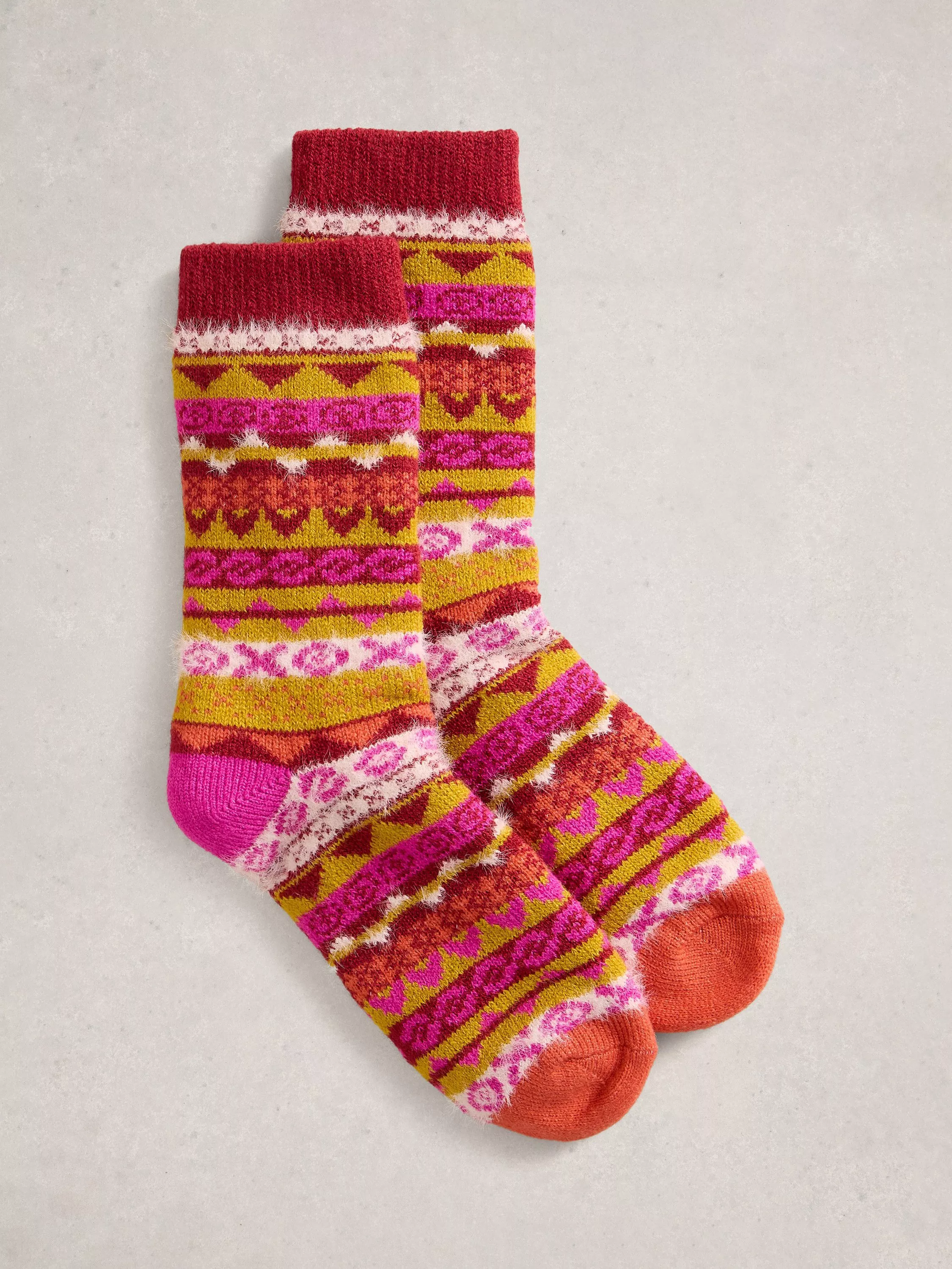 White StuffFair Isle Ankle Socks, Pink/Multi