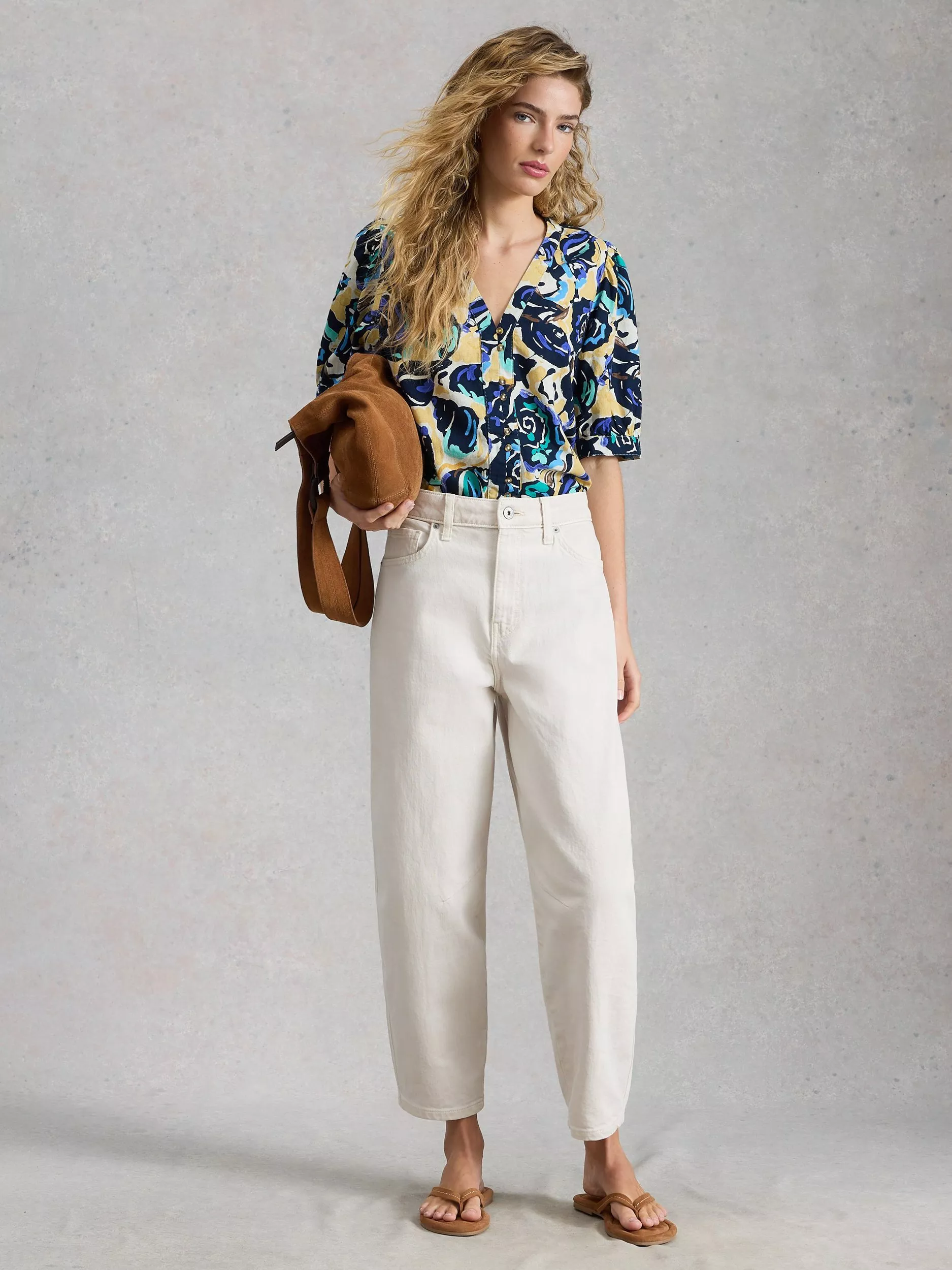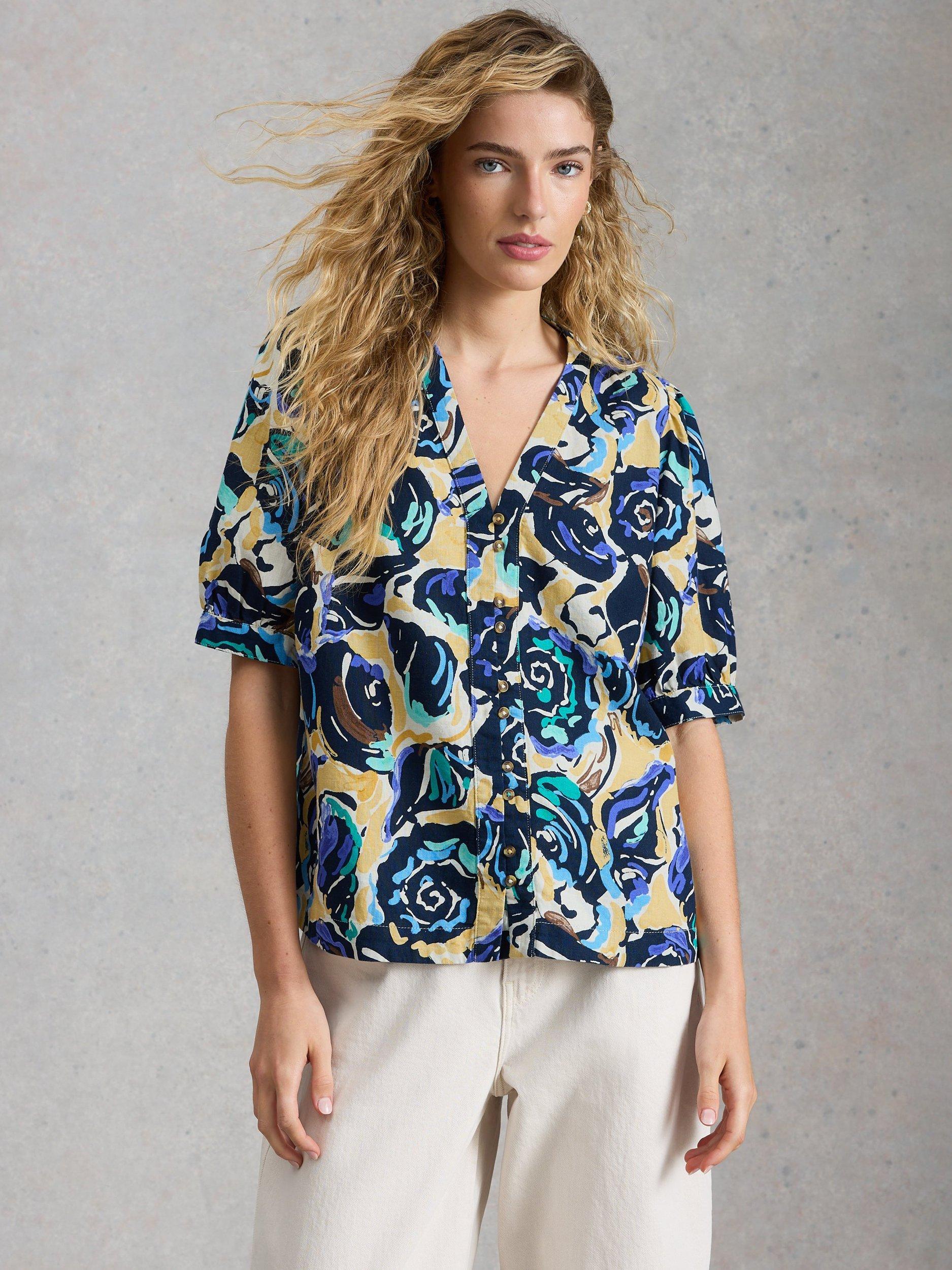 Feel confident in this linen blouse from White Stuff. Designed with an abstract pattern and playful puff sleeves, it's finished with a button through design..