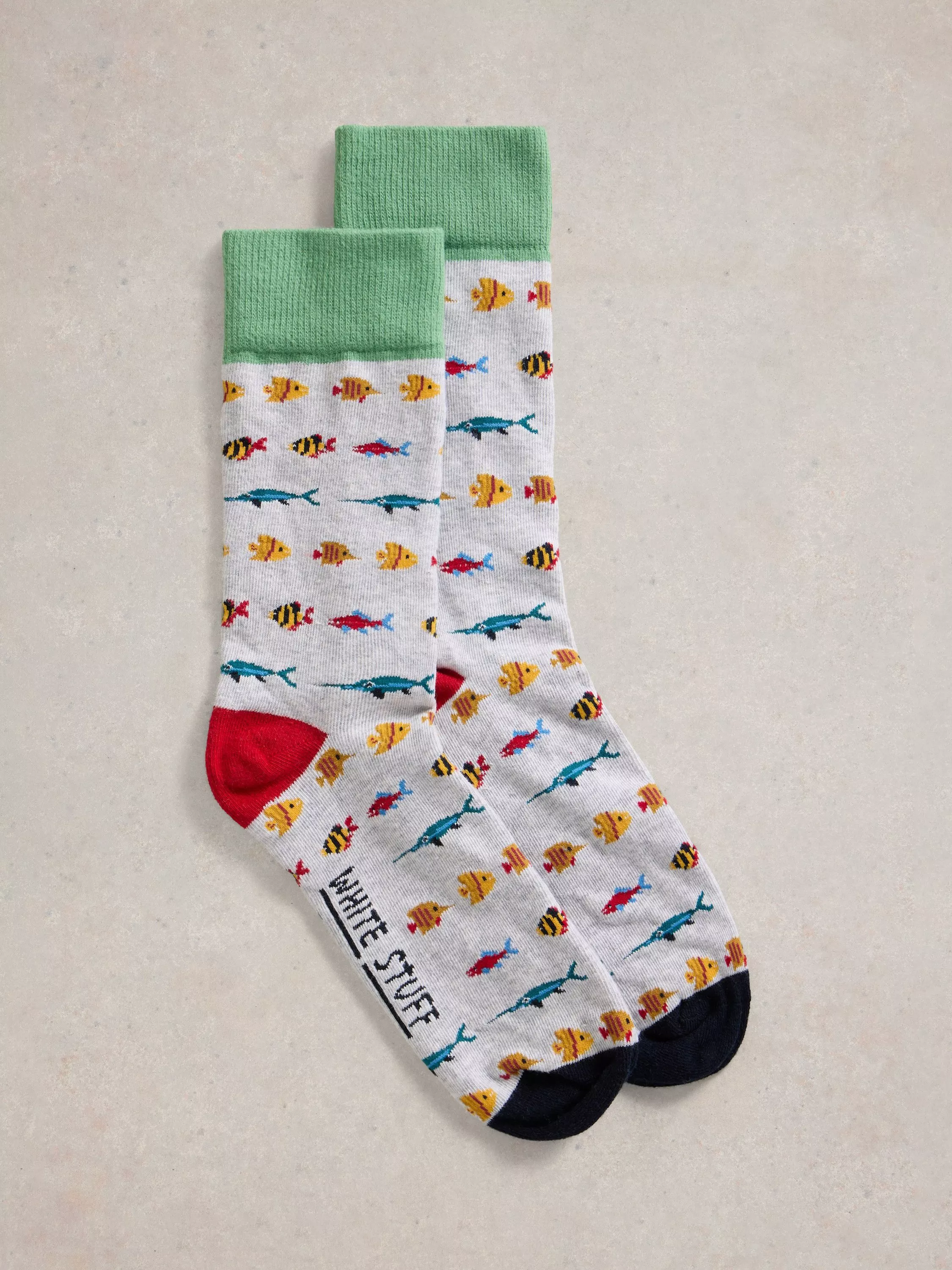 Patterned with a little fish print, these ankle socks from White Stuff come in a soft cotton blend material for everyday comfort.