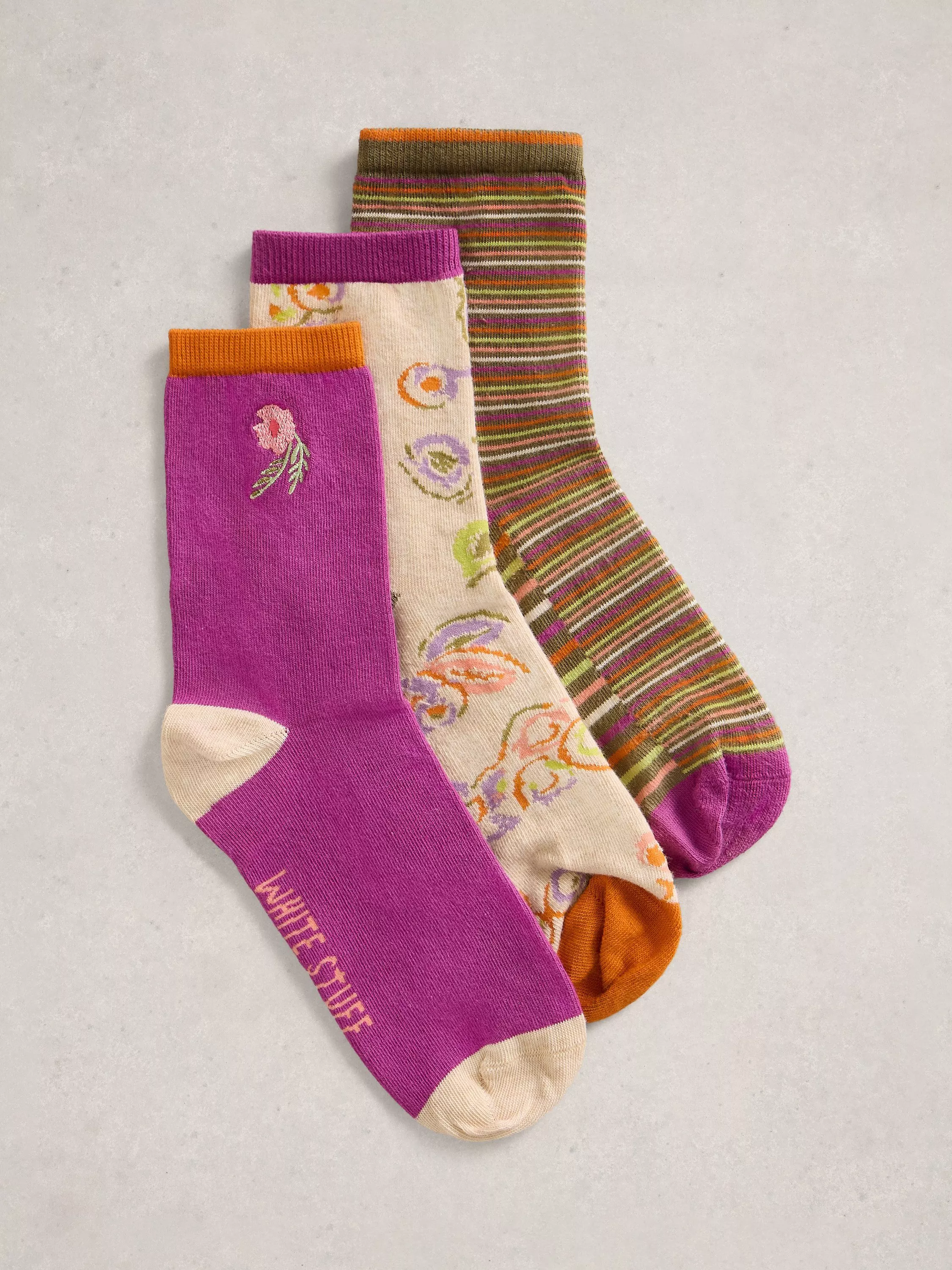 3-pack of floral print ankle socks.