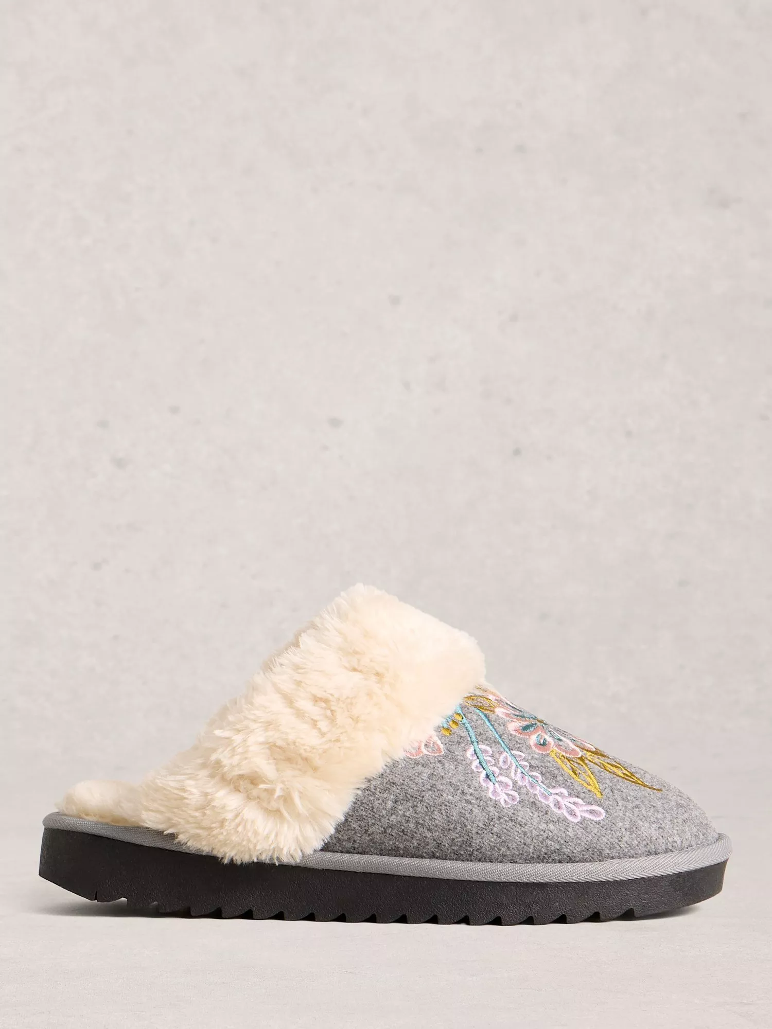 White StuffFloral Mule Slippers, Light Grey