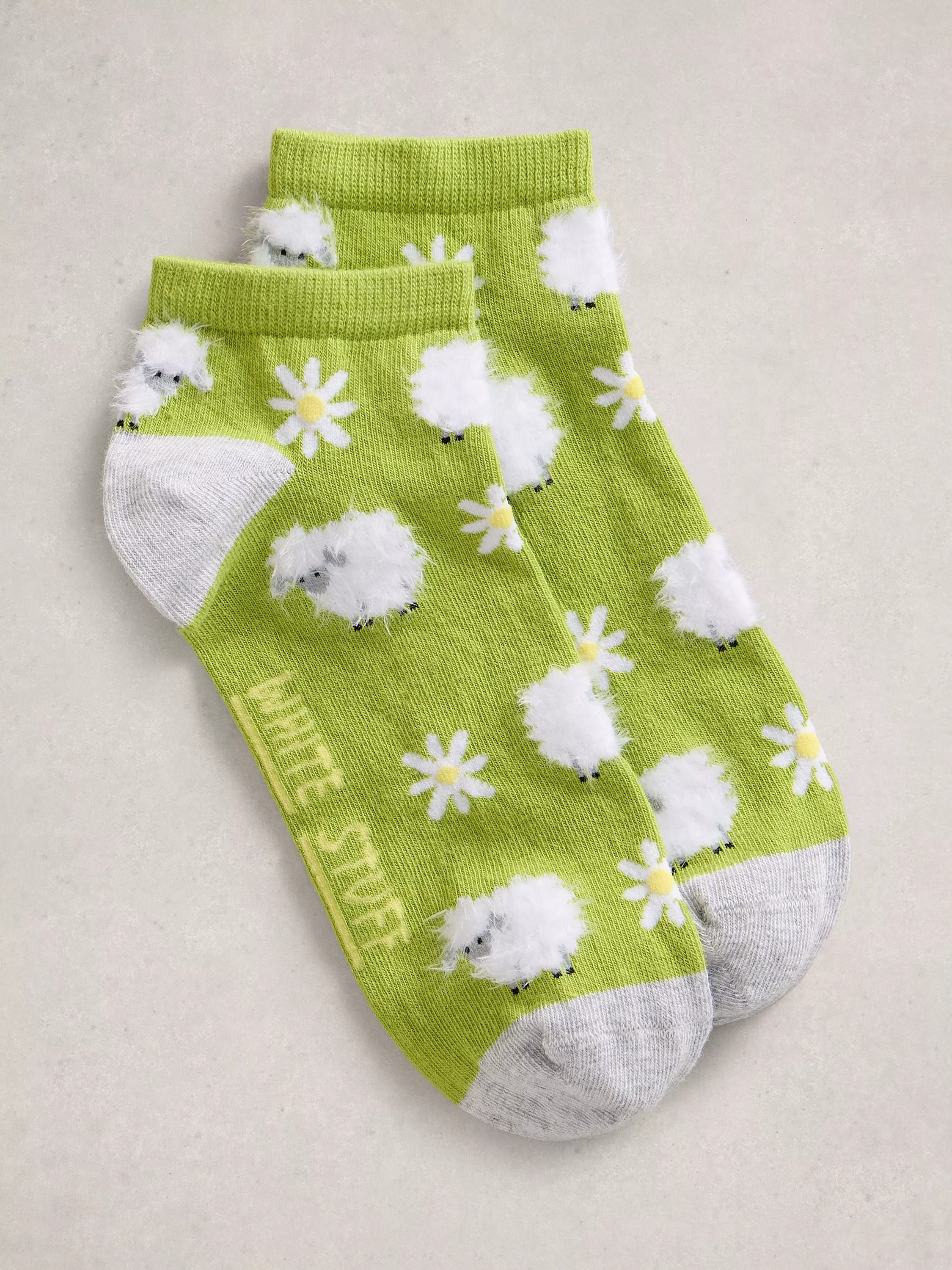 White StuffFluffy Sheep Trainer Socks, Green/Multi