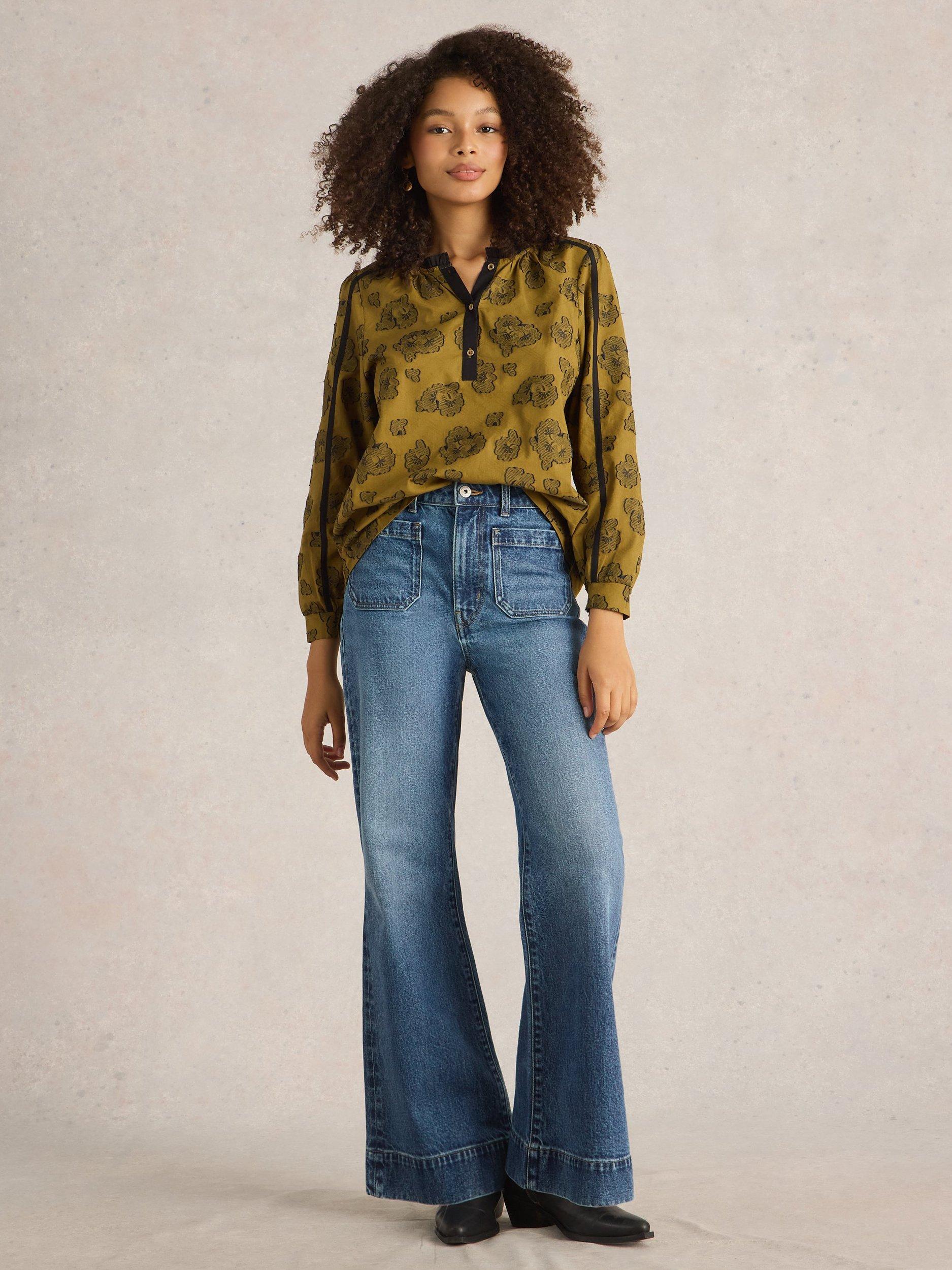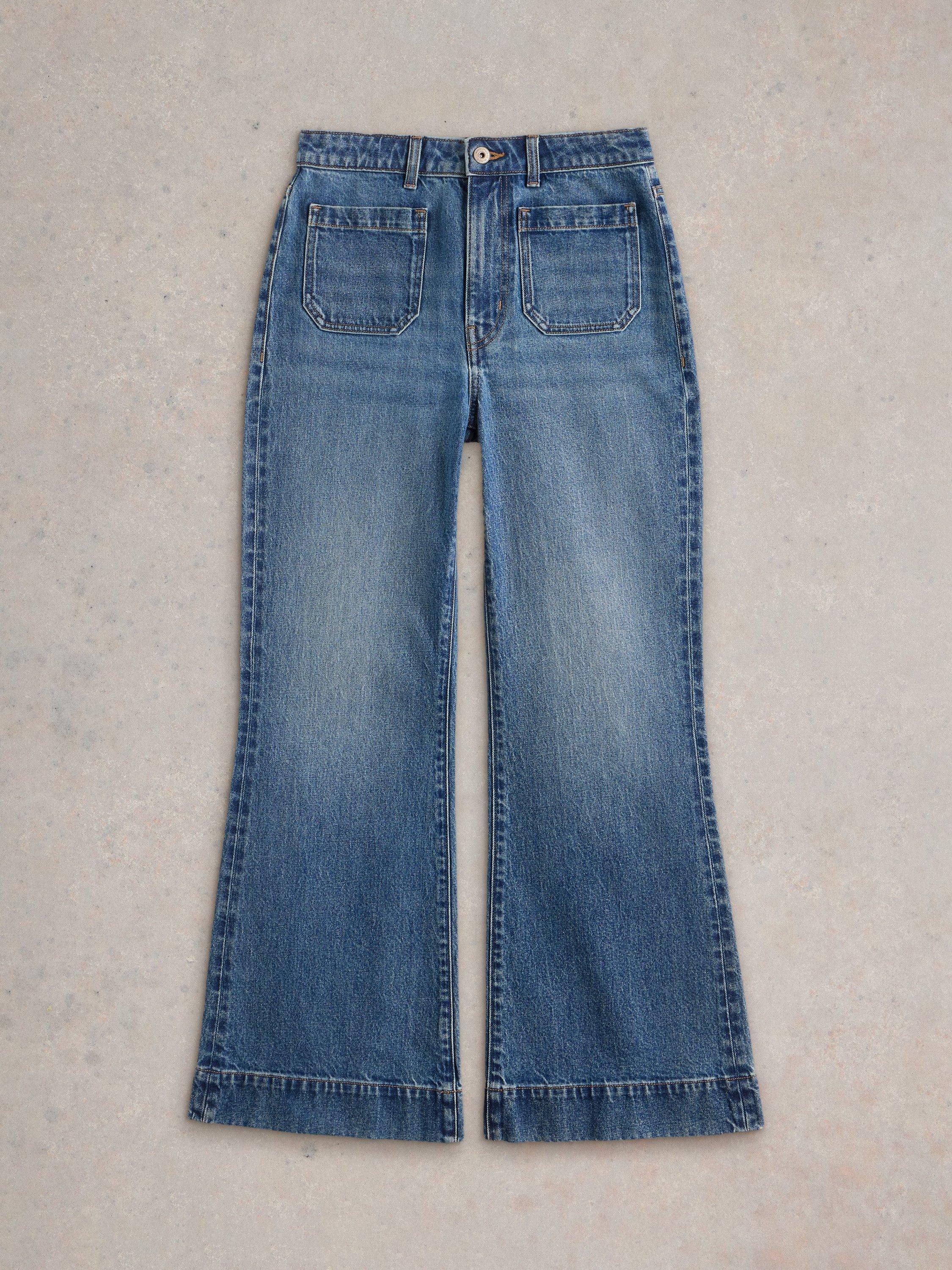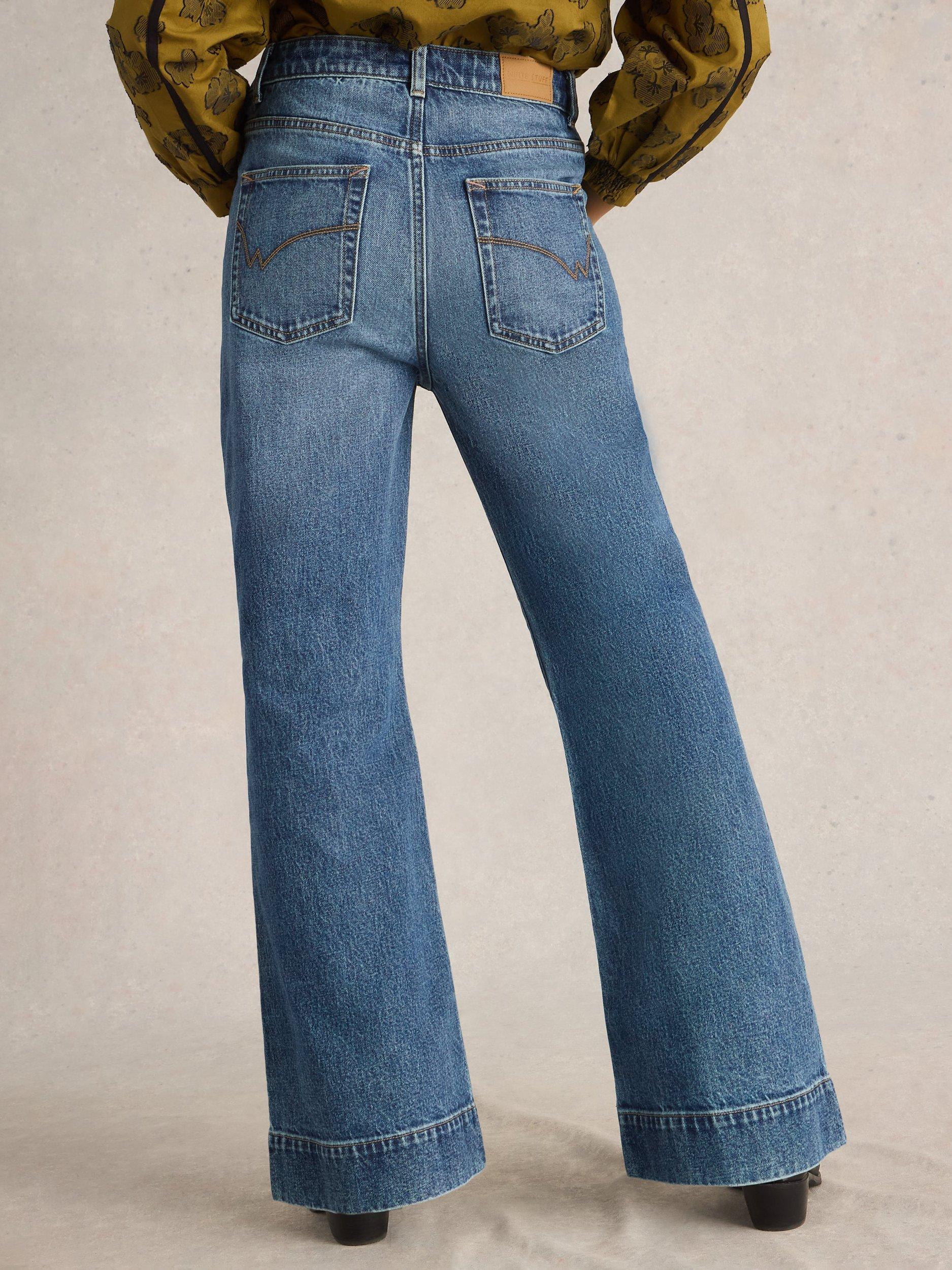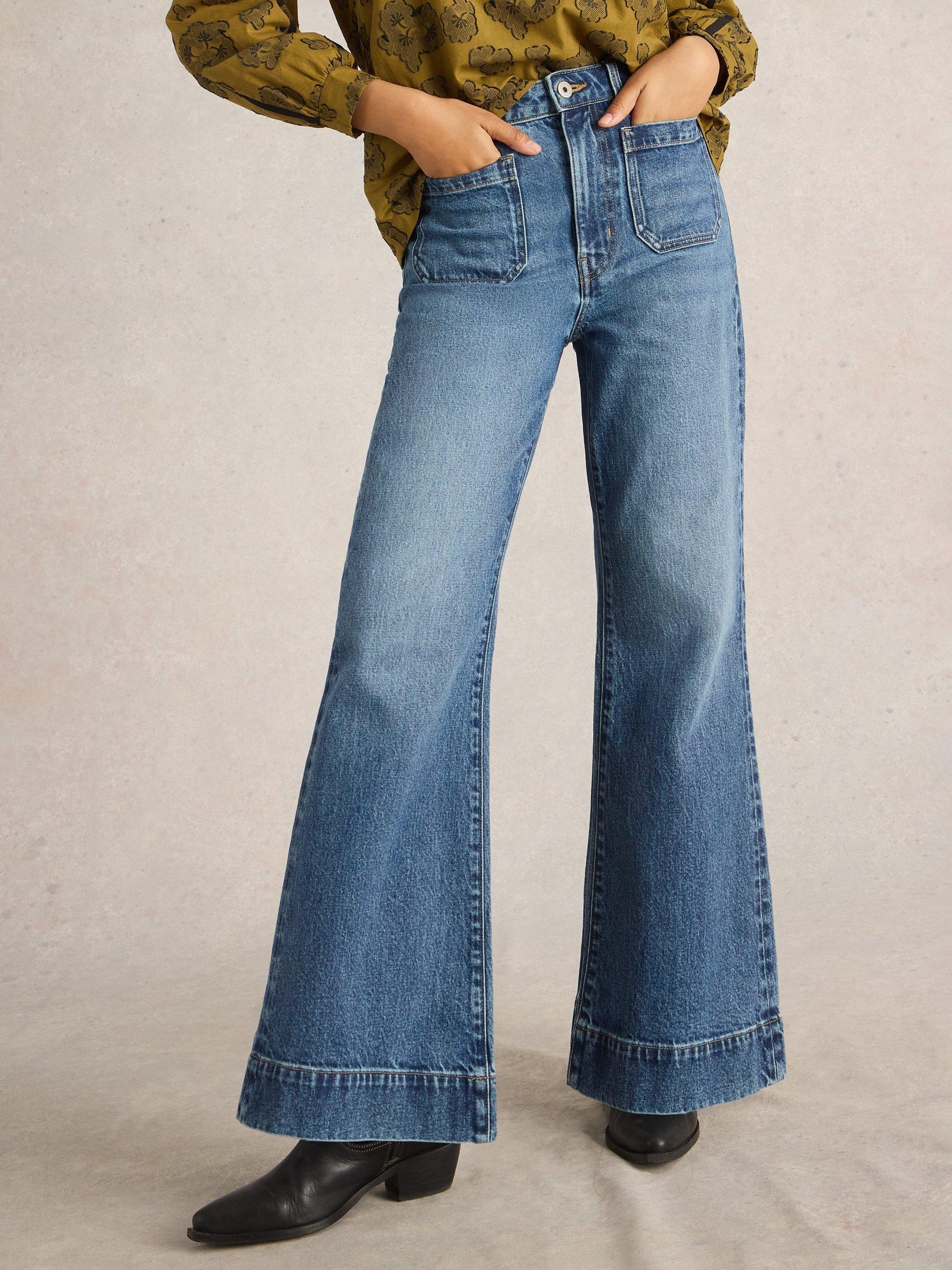 A flowy, fashion-forward denim cut that cinches at the waist and cascades into a flared leg from White Stuff. Made in denim featuring a high rise and a button fastening, they fall to a regular length.