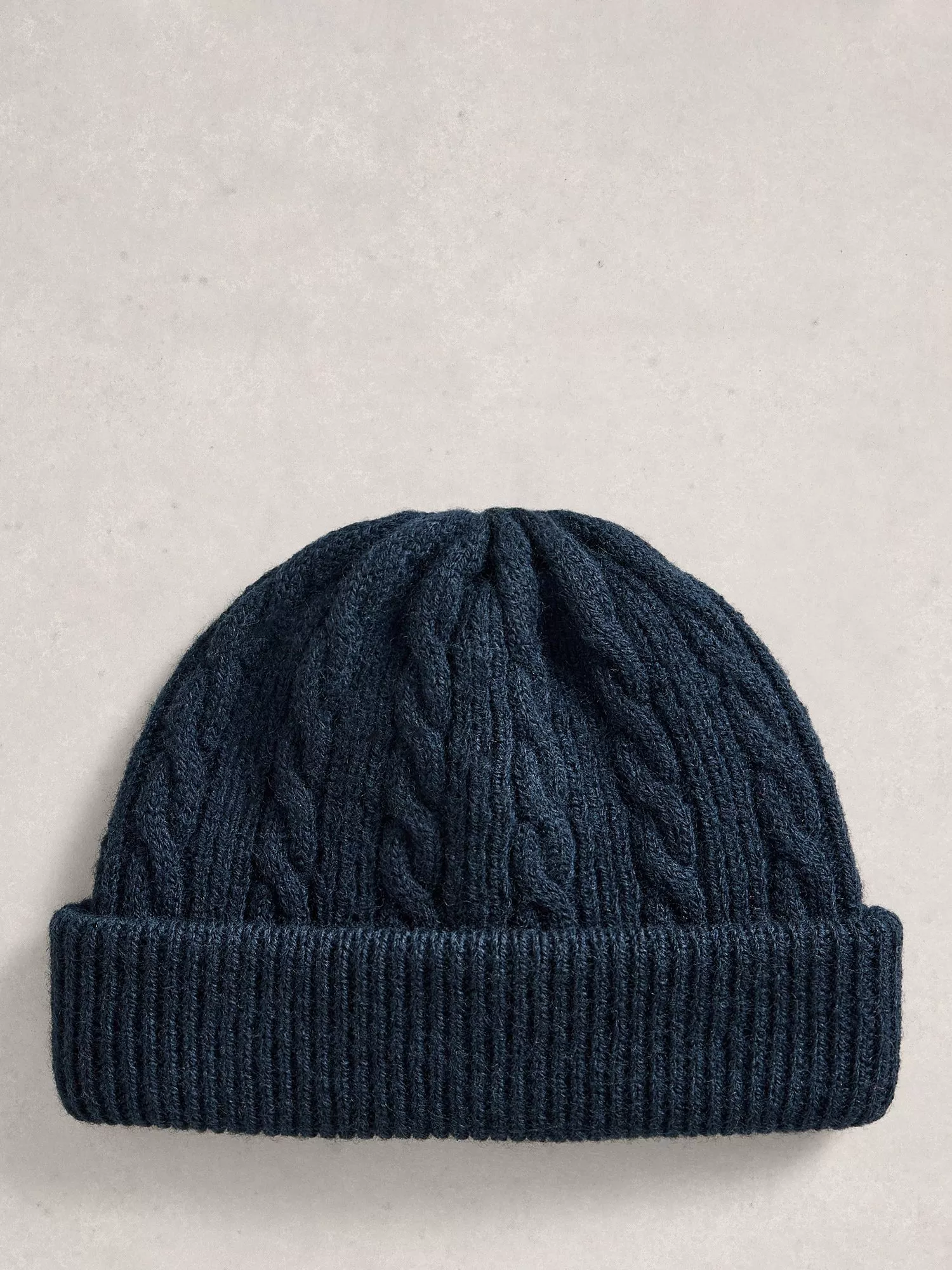 White StuffFreddie Lambswool Beanie, Dark Navy