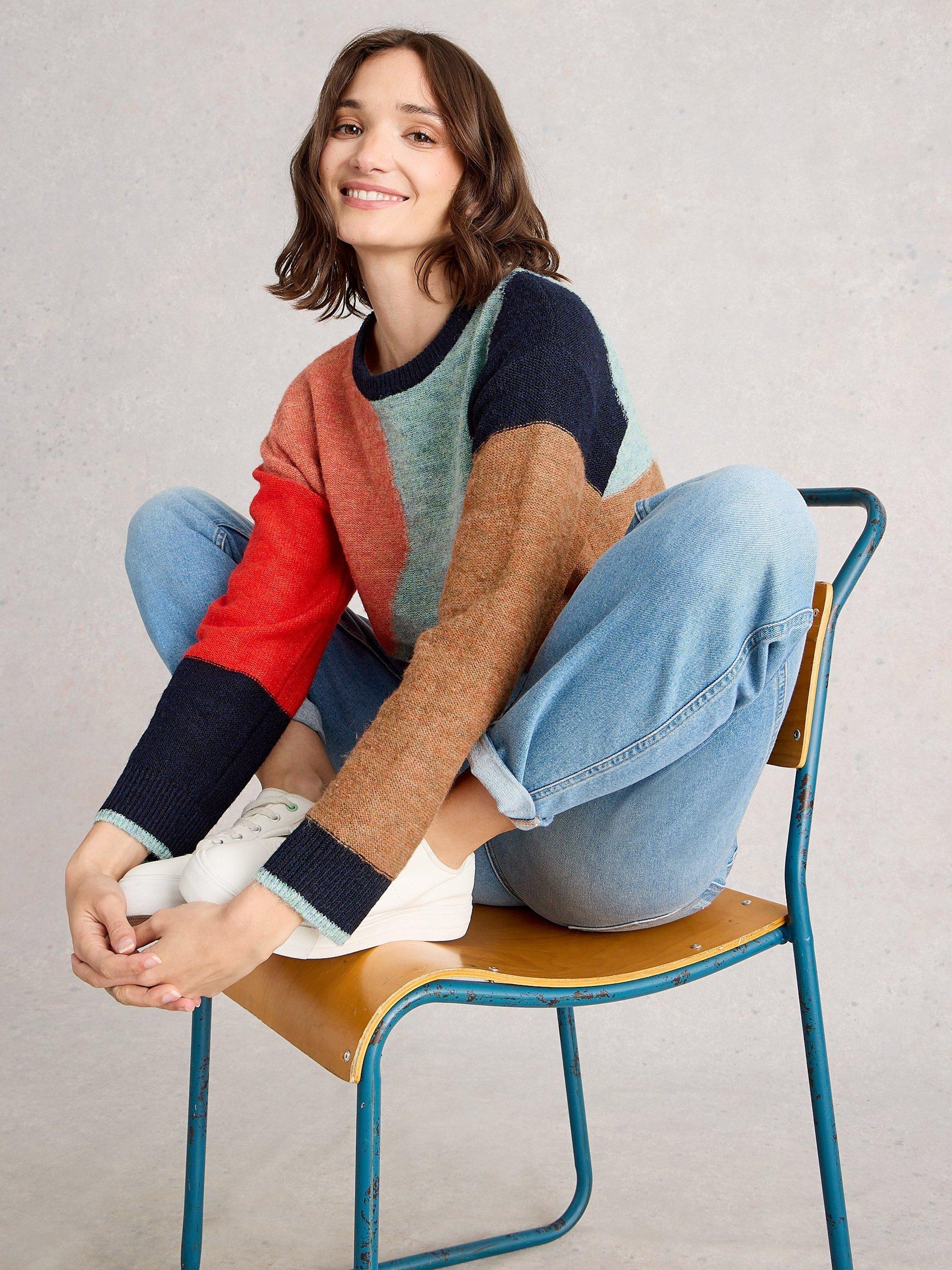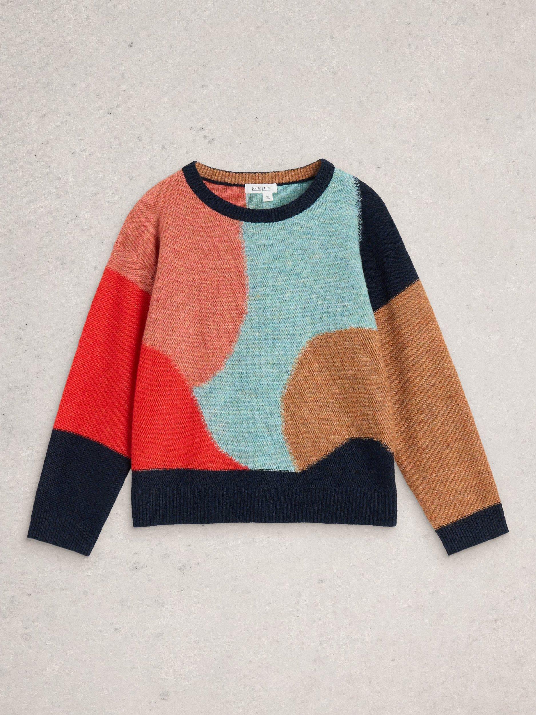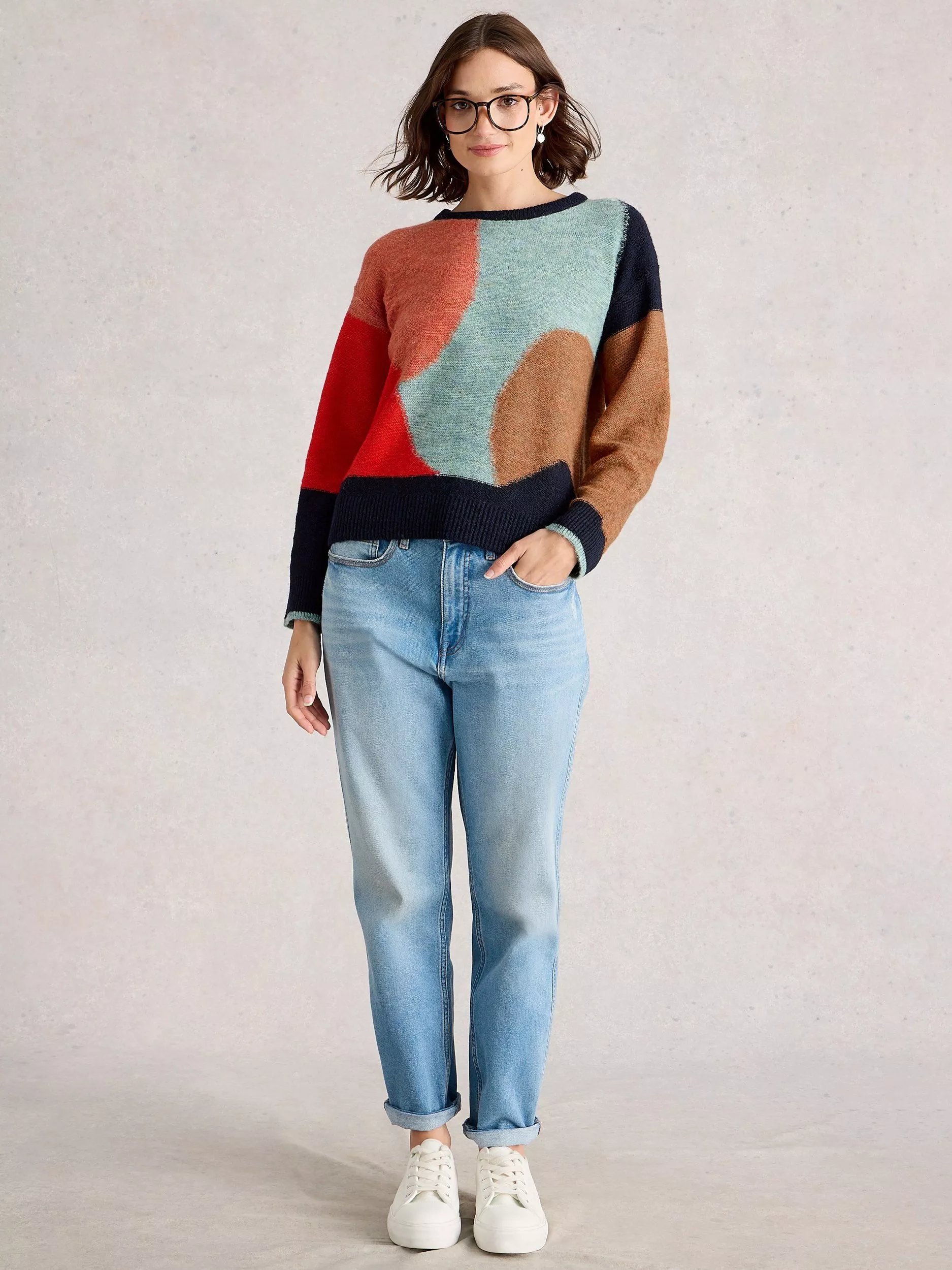 White Stuff's jumper combines a clever abstract design with a comfy wool blend. Its medium weight and long sleeves make it perfect for stylish layering or standout moments.