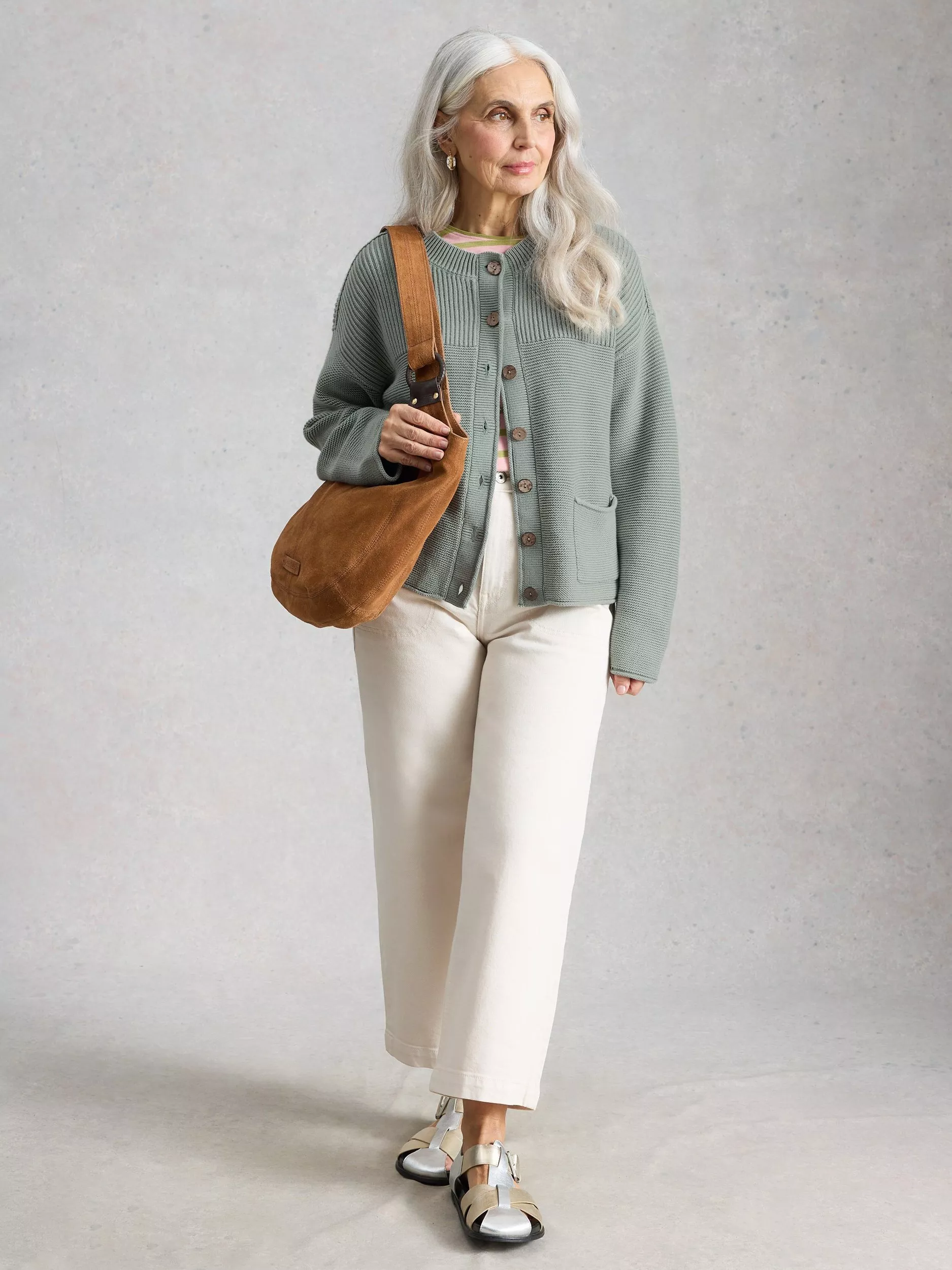 White StuffGigi Garment Dyed Cardigan, Green