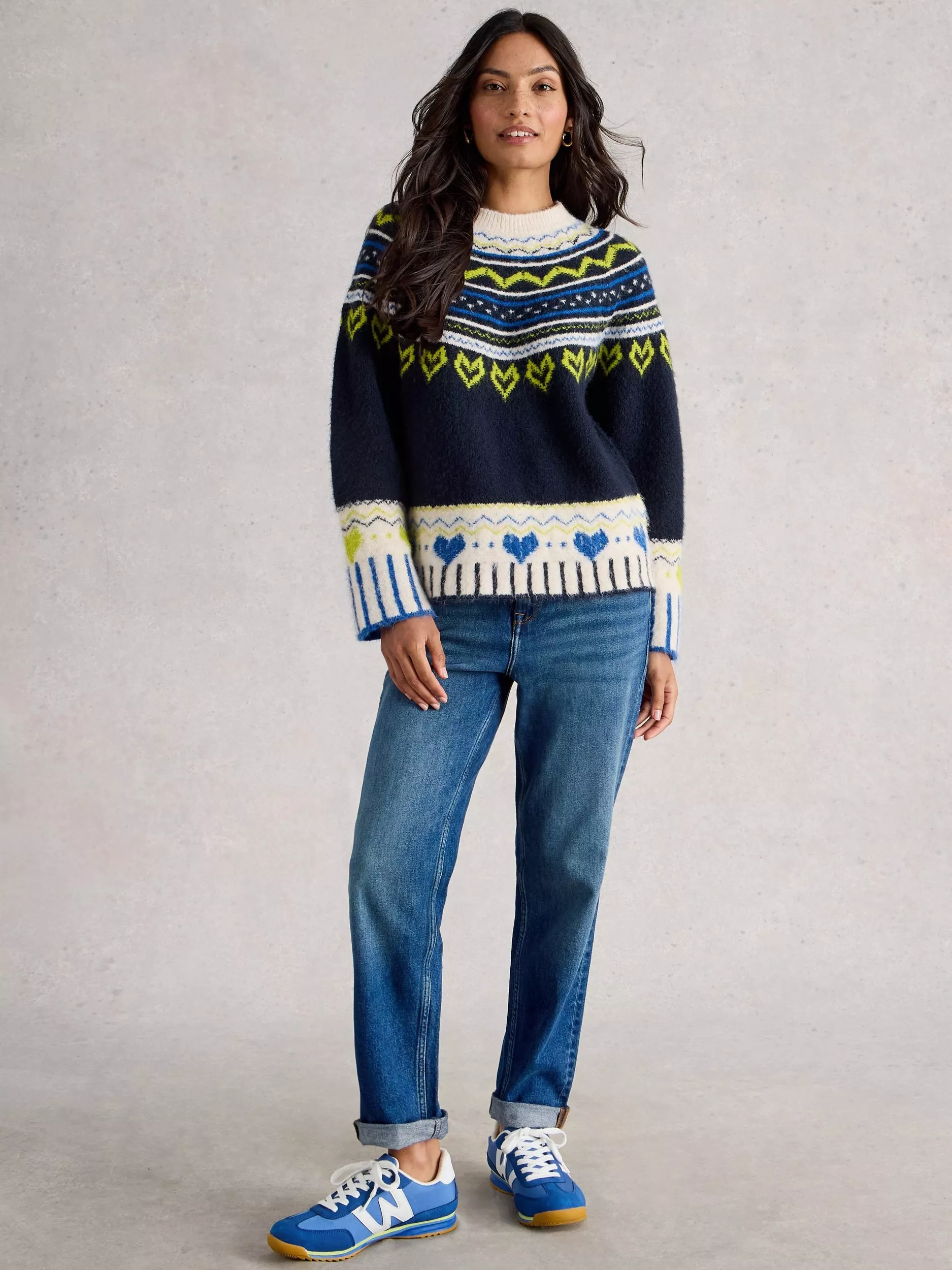 This crew neck Fair Isle jumper keeps you cosy and comfortable in cooler weather, with a playful pattern that brings a dash of charm to your day.