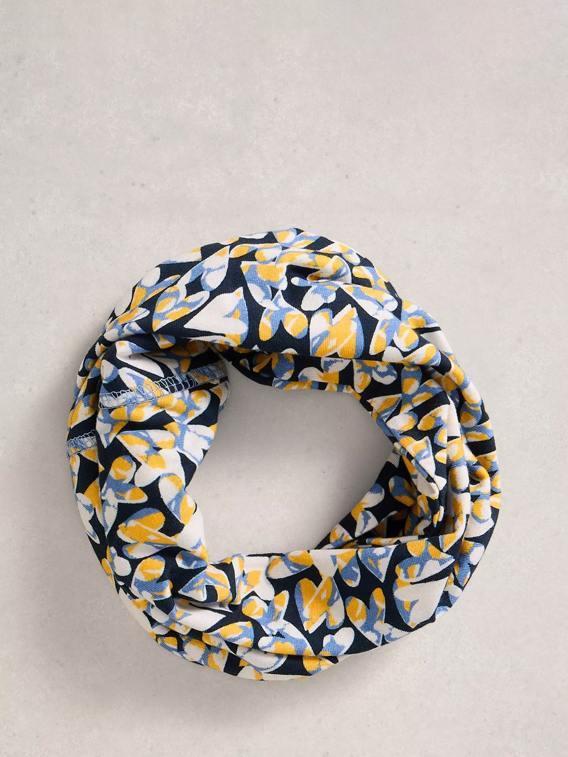 White StuffHeart Print Roll Scarf, Yellow/Multi