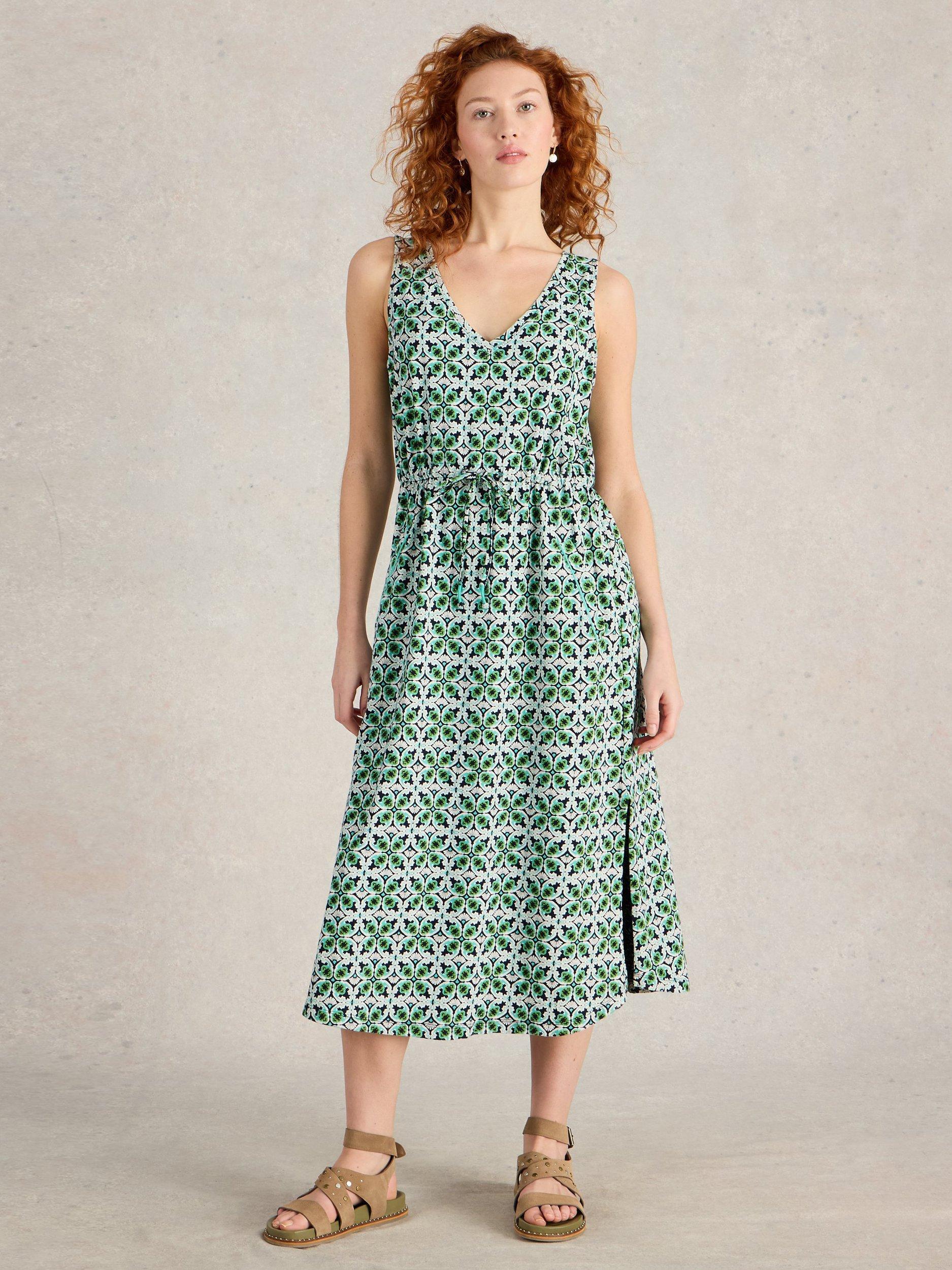 In a flattering fit that accentuates the waist, this mid-length dress from White Stuff is crafted from soft and durable cotton. Effortlessly flattering thanks to a fuss-free v-neckline, this sleeveless style is doused in a geometric pattern.