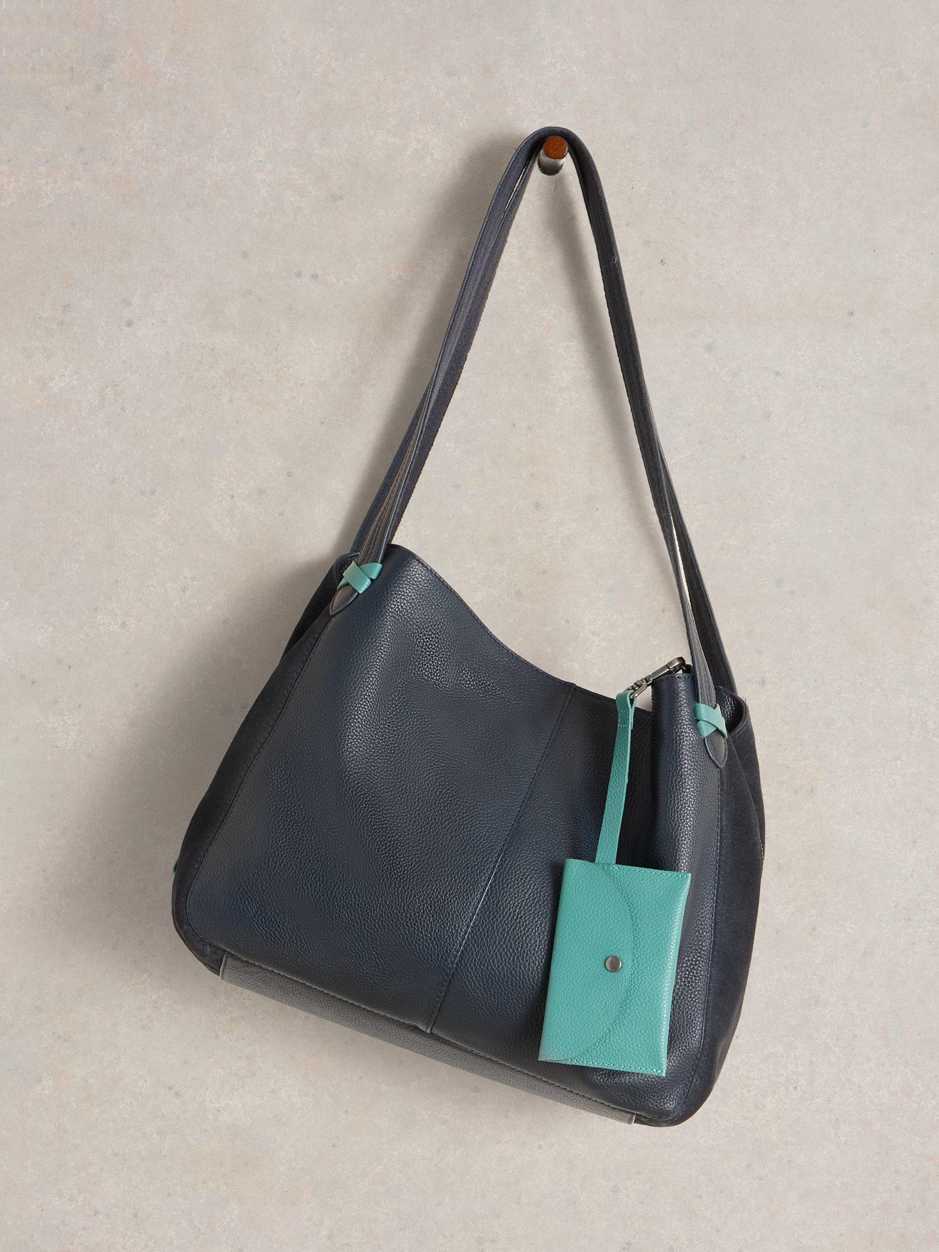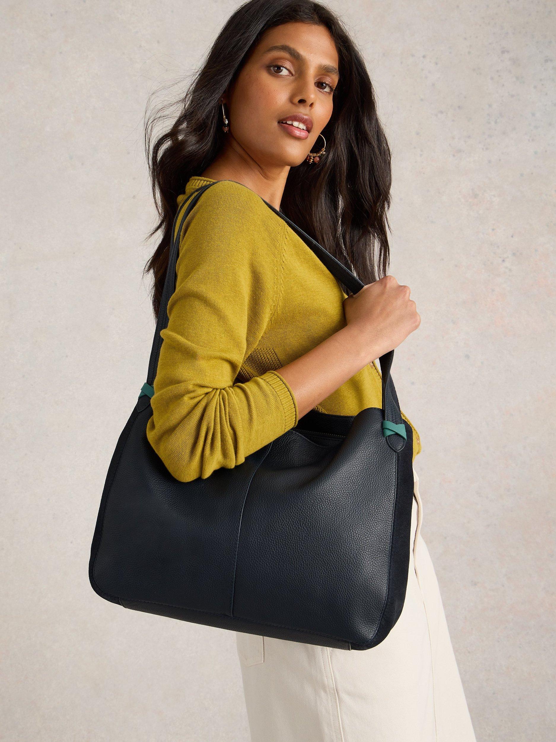 Triple compartment leather tote. An updated version of our loved hannah leather tote bag. A front zip pocket. Bag has a main zip pocket and magnetic closure.