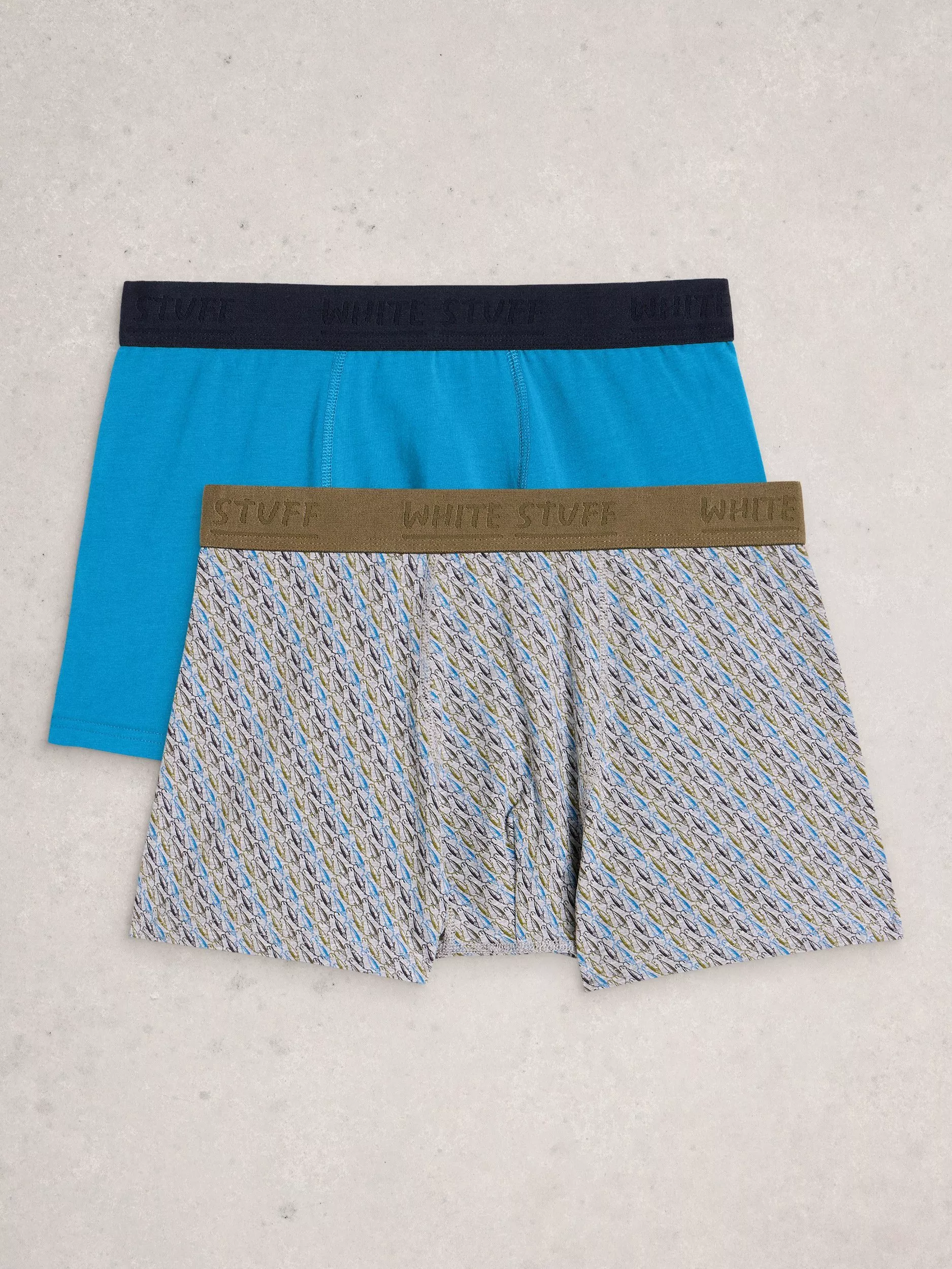 White StuffHove Stretch Cotton Pattern & Plain Boxers, Pack of 2, Bright Blue