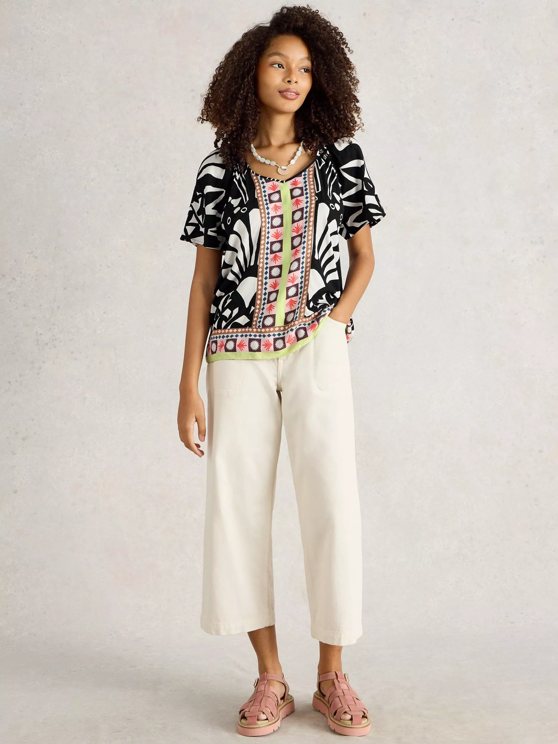 Bolstering your daytime collection, this t-shirt by White Stuff adds impact with its eye-catching abstract pattern. Cut with a fuss-free scoop neckline and short sleeves, it is ideal when partnered with floaty midi skirts for summer days spent strolling around the city.