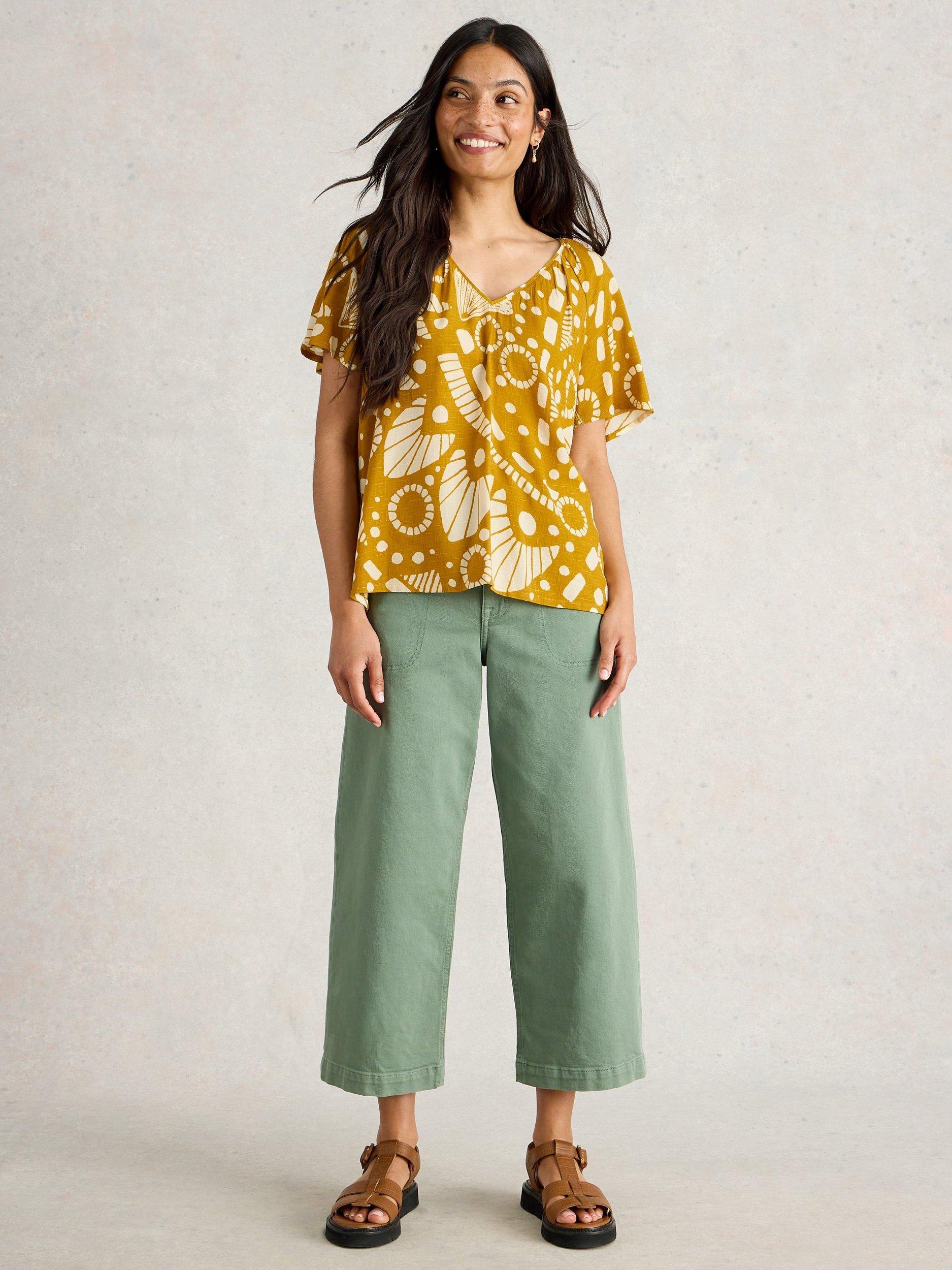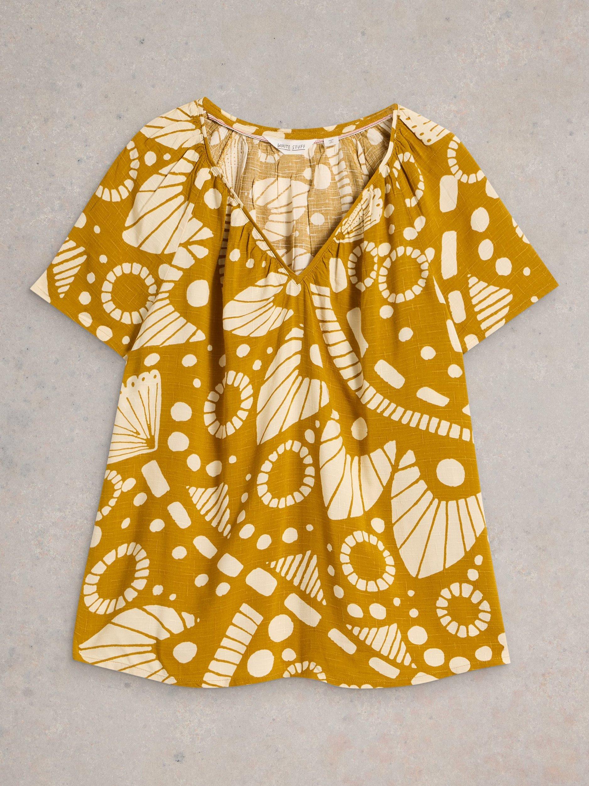 Boho style printed short sleeve top by White Stuff. Designed with a V-neck for an elegant touch if worn under a blazer, or make it a chic statement piece with a pair of jeans.