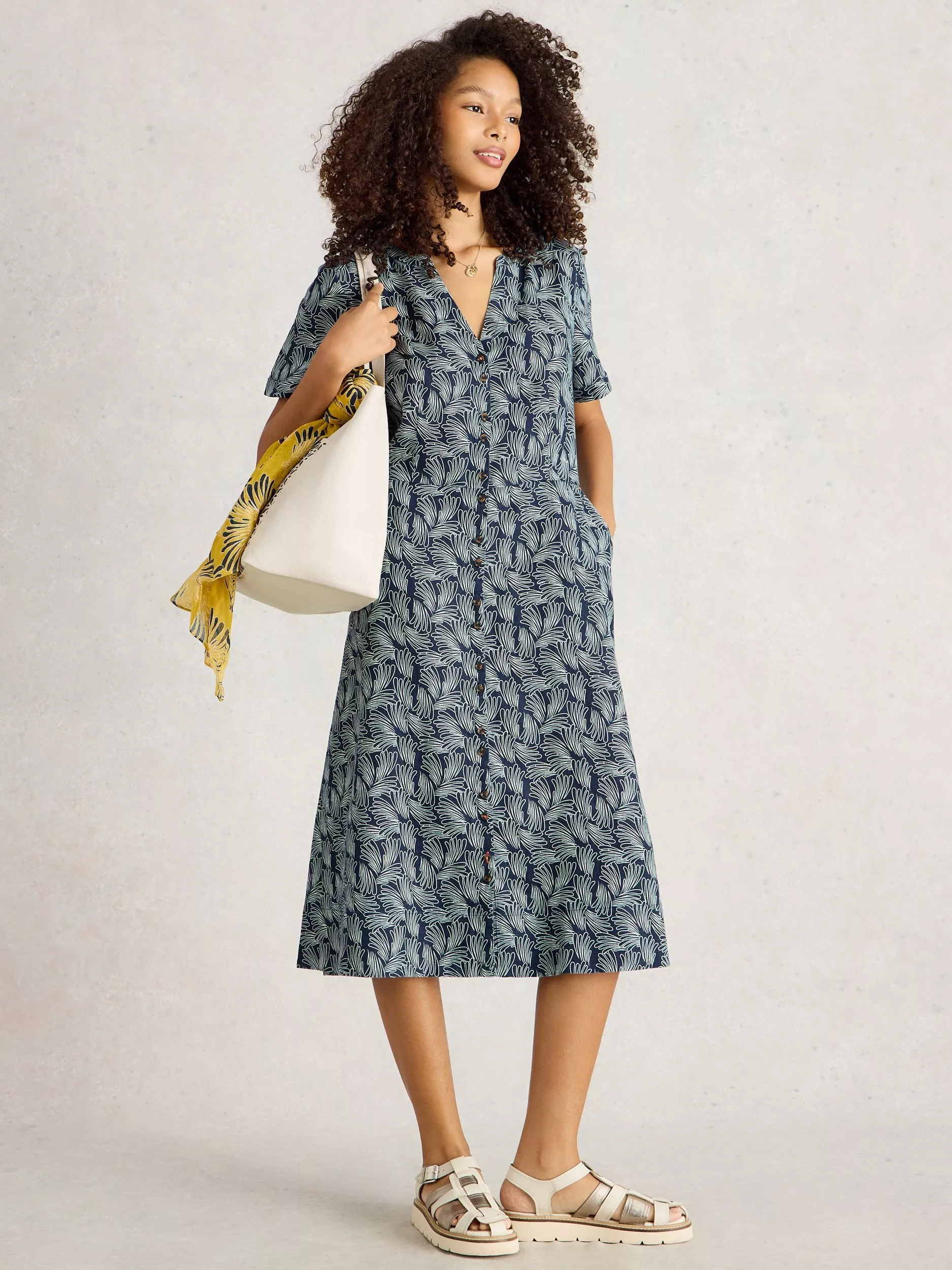 Flaring out at the hem for added movement, this mid-length dress from White Stuff is made from 100% linen to encapsulate a fresh and airy mood. Effortlessly flattering thanks to a fuss-free v-neckline and short sleeves, this style guarantees that if floral prints are your thing, you'll love this.
